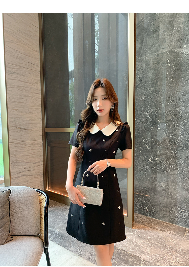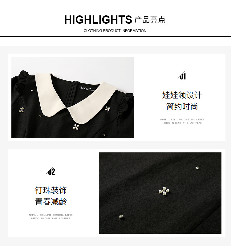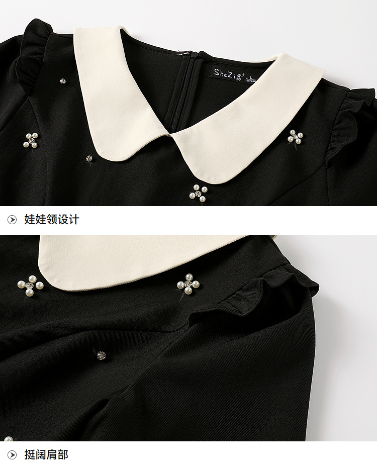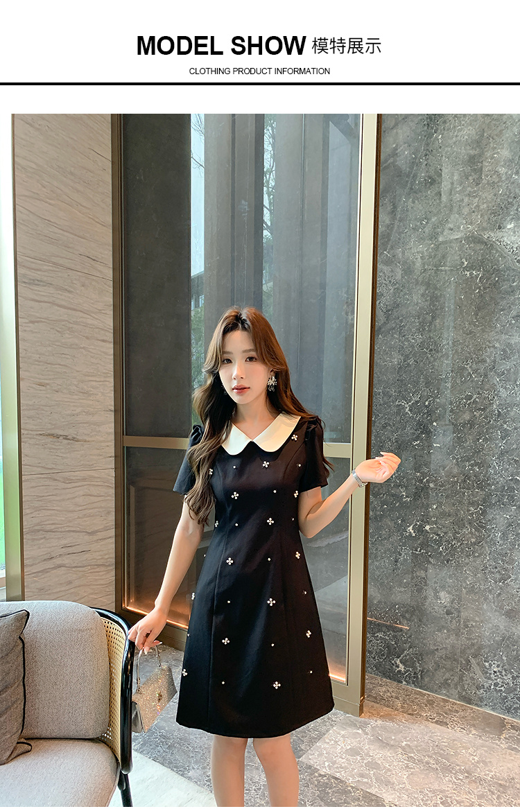 奢姿大码女装2025夏季减龄钉珠木耳边裙子胖妹妹时尚娃娃领连衣裙9952803321B
