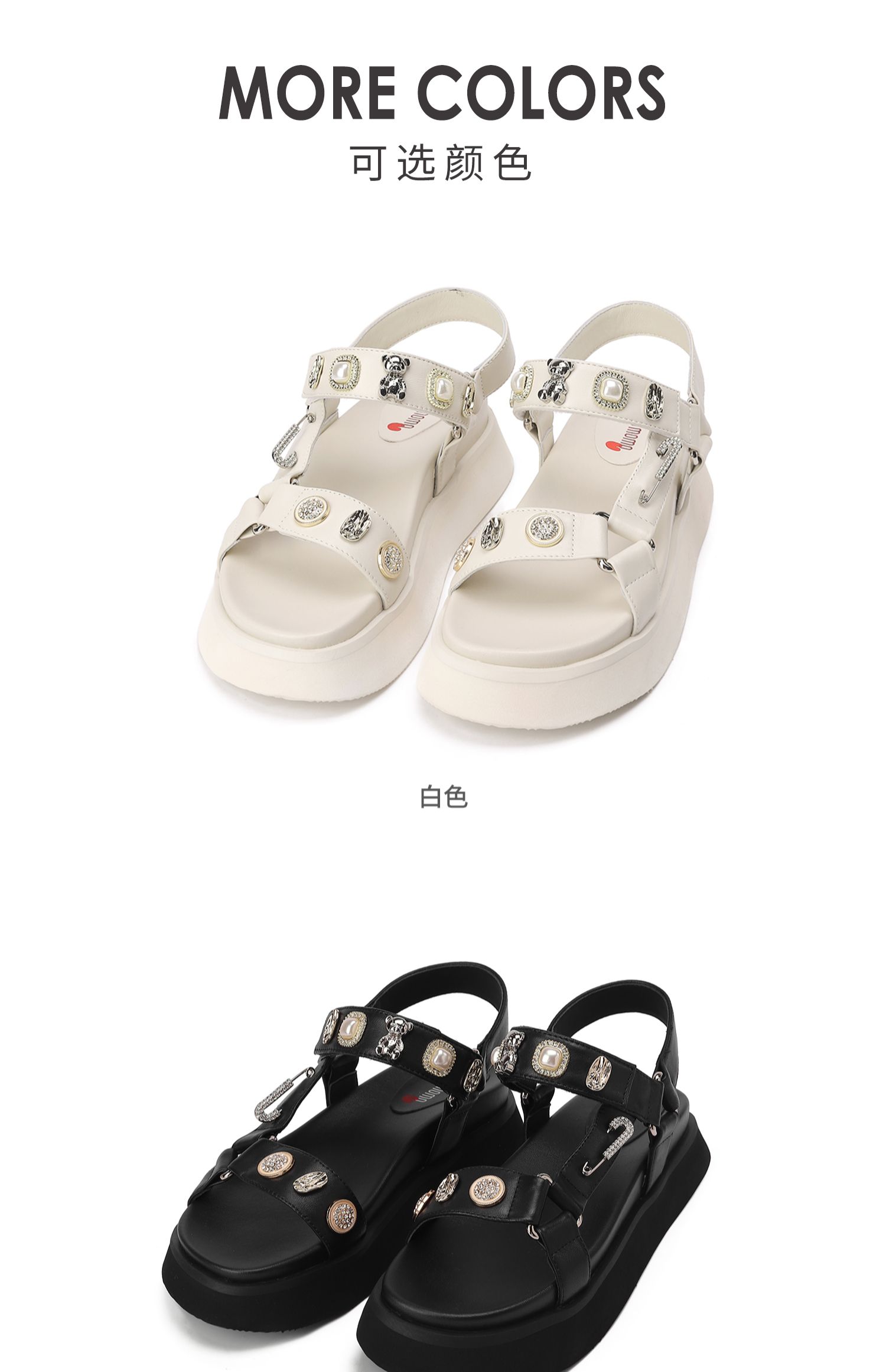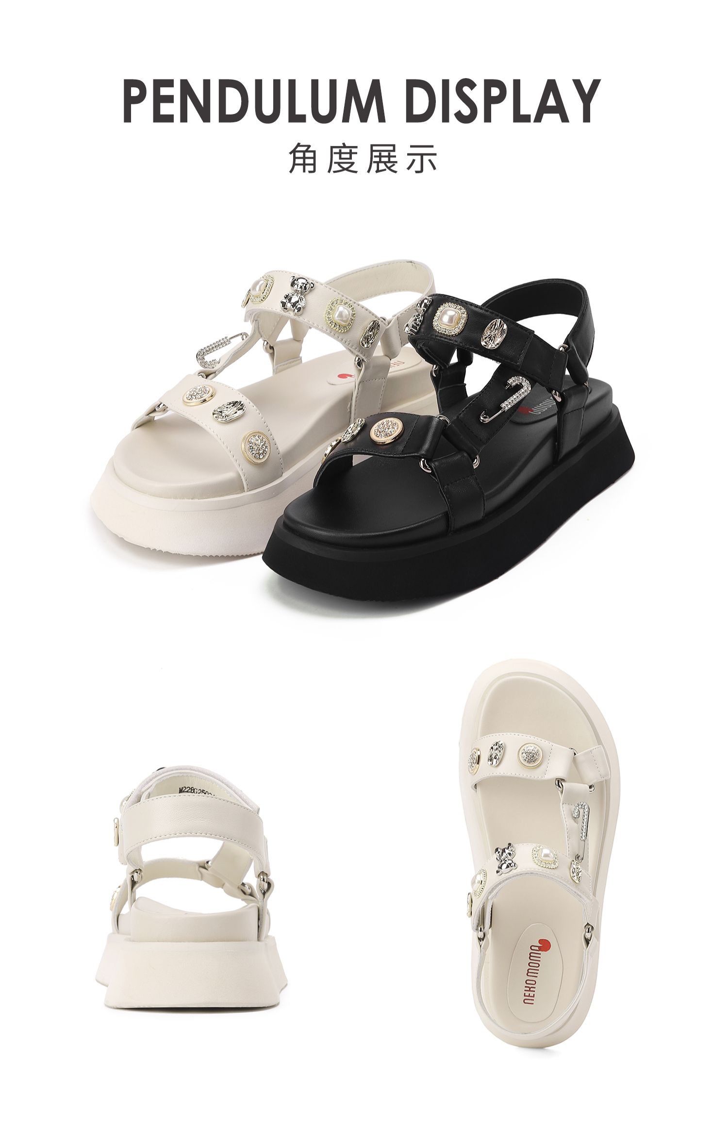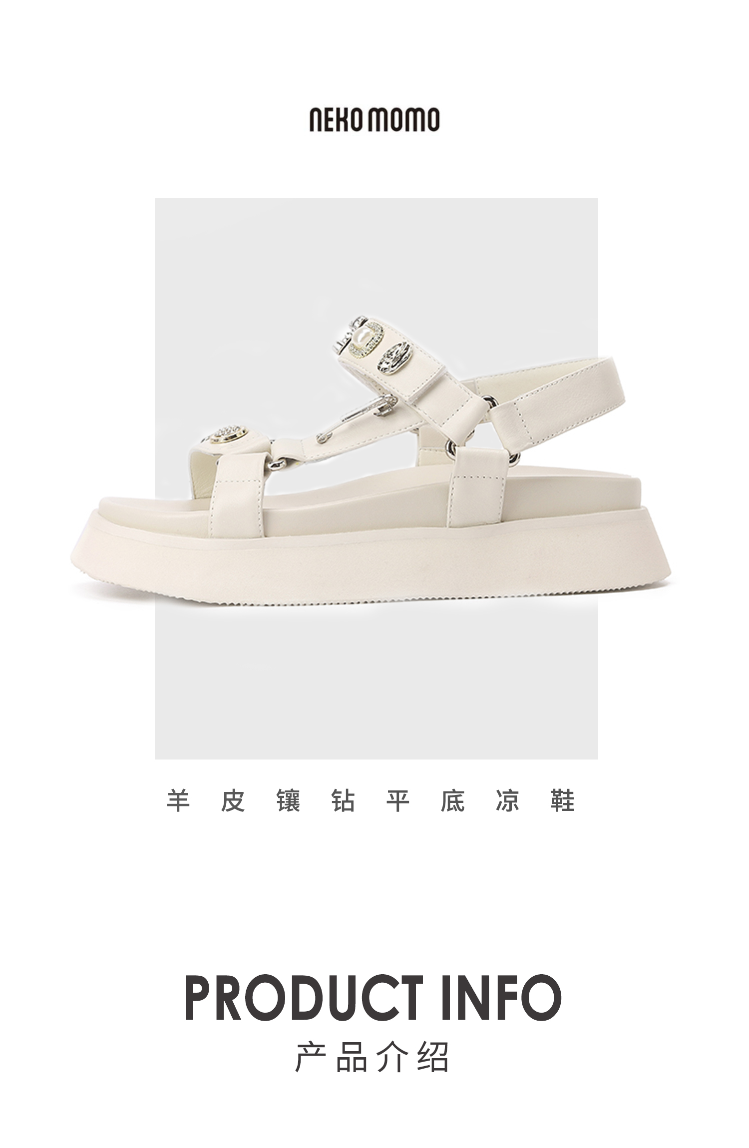 nekomomo2023年夏季新款商场同款软面羊皮超轻镶钻平底休闲凉鞋女M22BG25031
