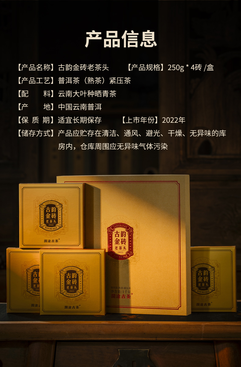 澜沧古茶2022年古韵金砖老茶头普洱茶熟茶250g/砖,4砖/盒
