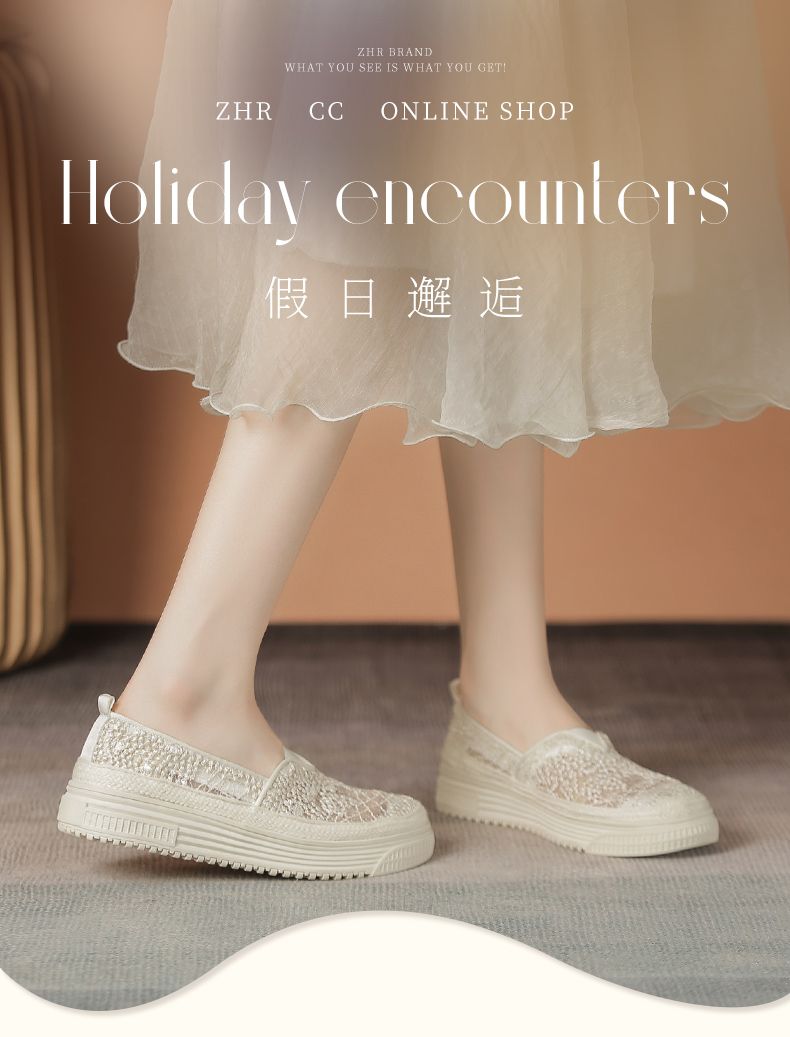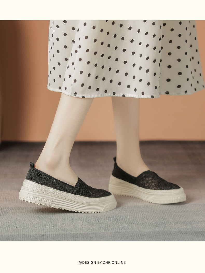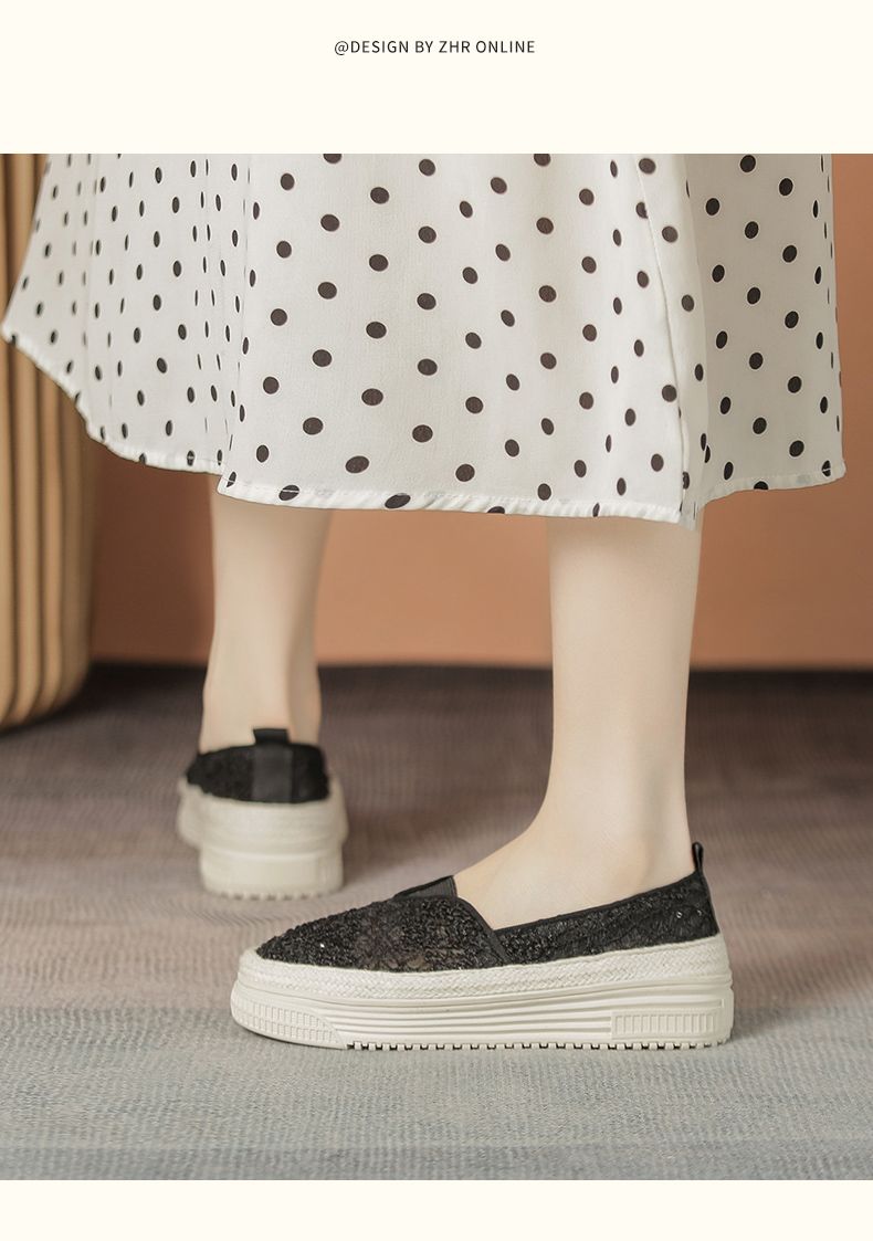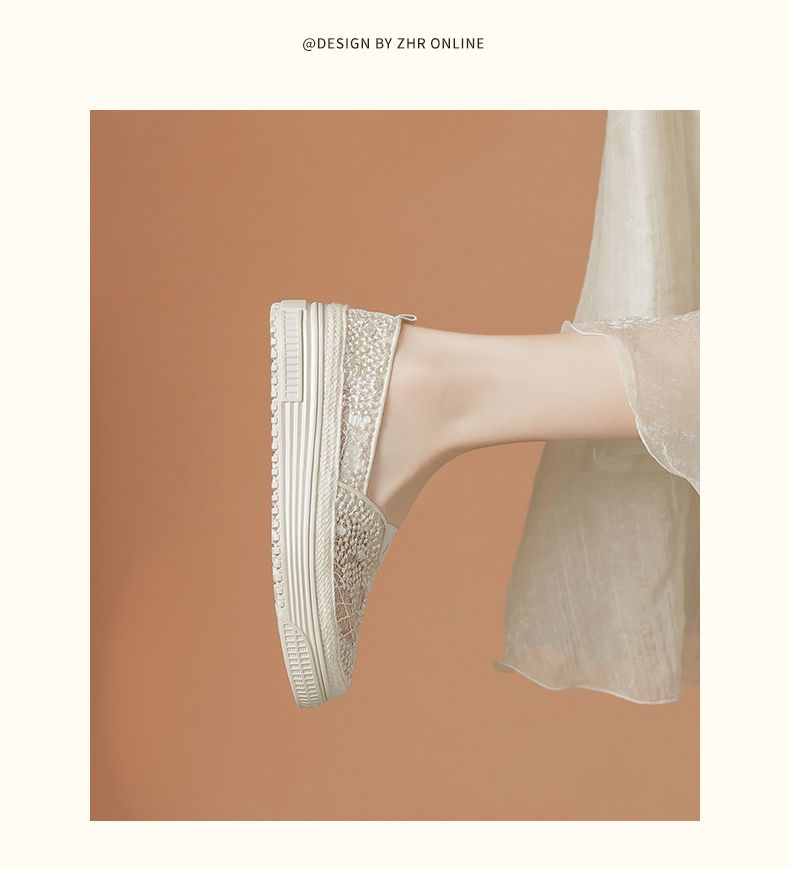 ZHR则则厚底渔夫鞋女2024夏季新款网纱透气女鞋一脚蹬软底单鞋女