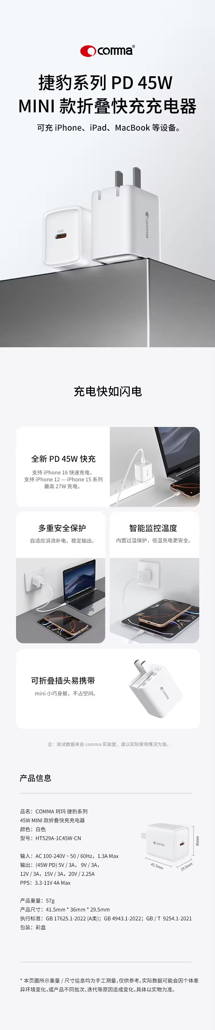COMMA珂玛 捷豹系列 45W MINI 款折叠快充充电器