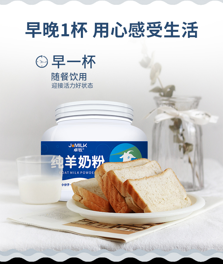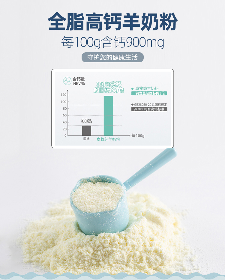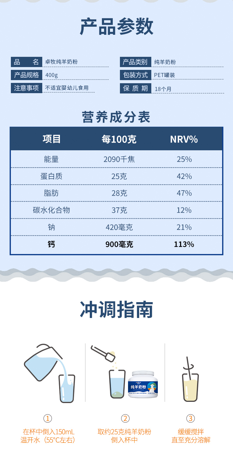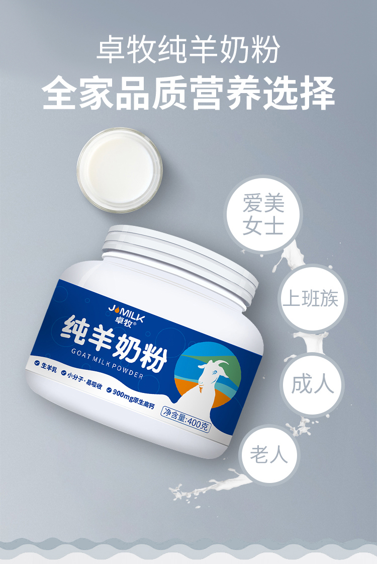 卓牧纯羊奶粉 不含蔗糖 900mg钙 配料表只有生羊乳400g/罐
