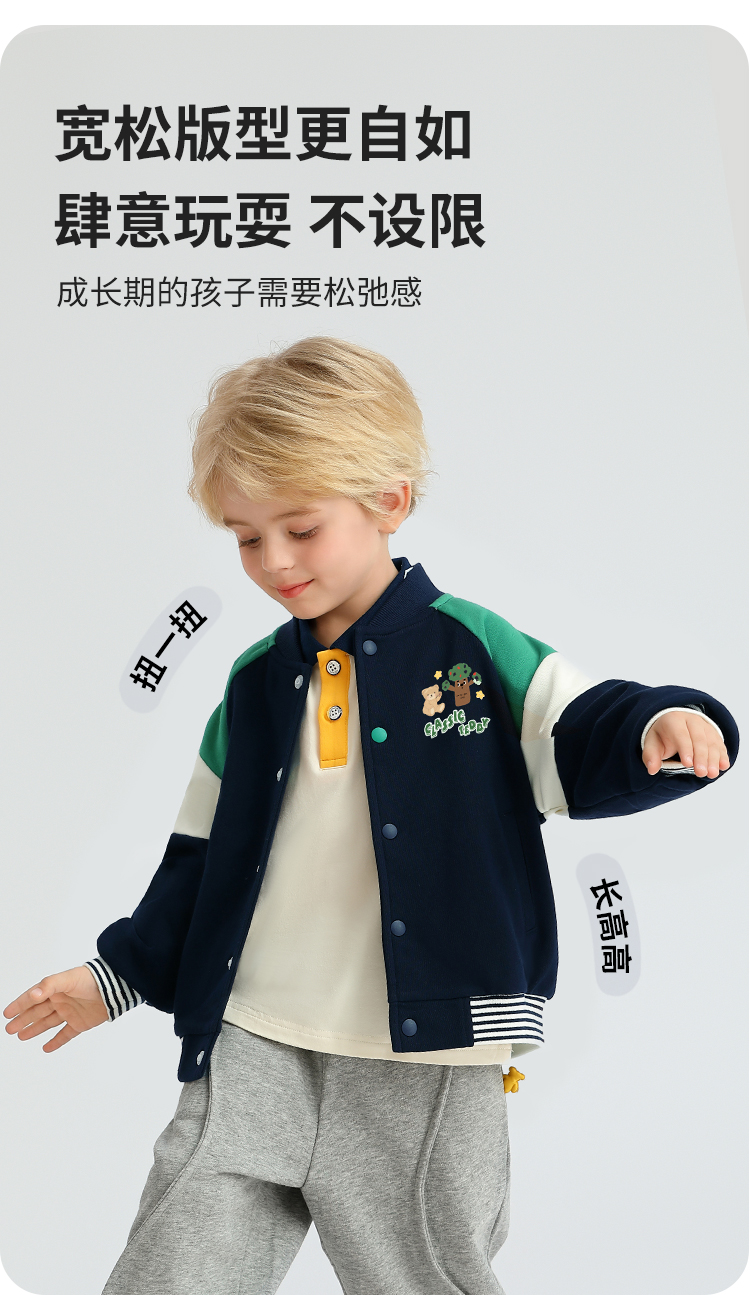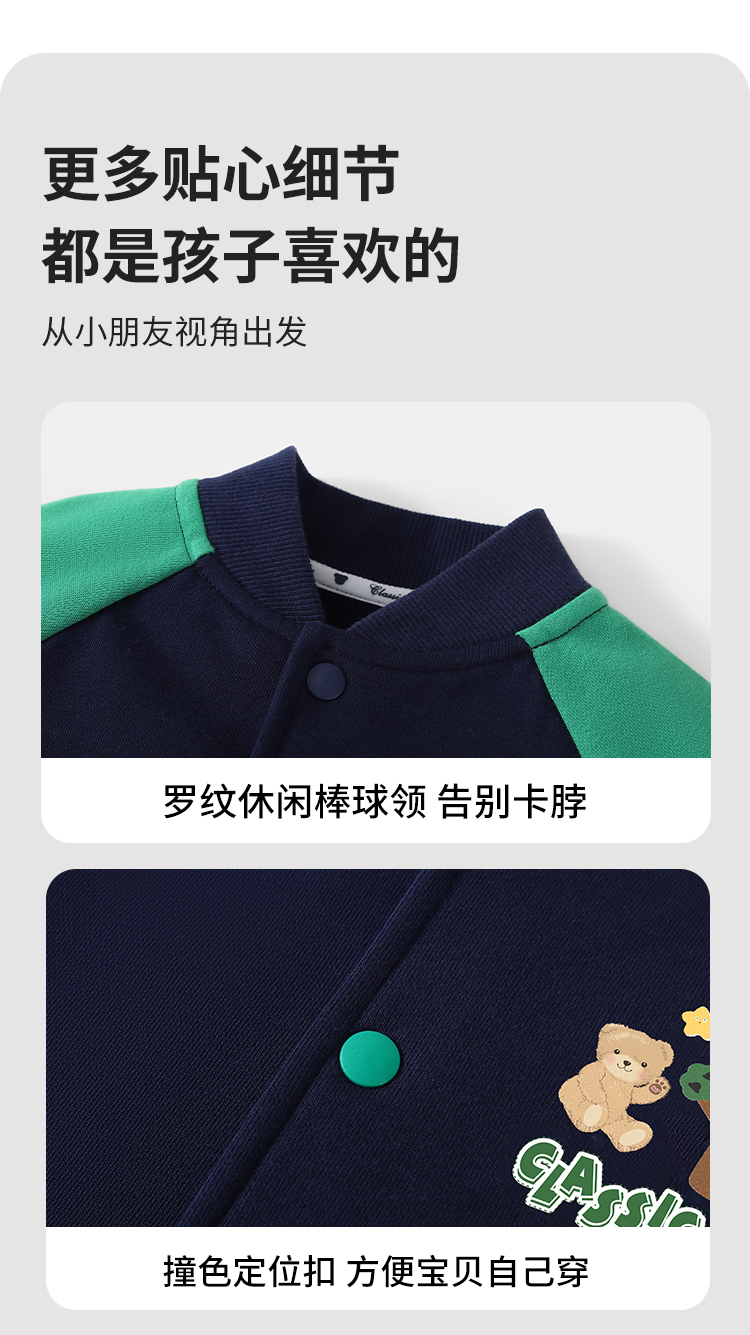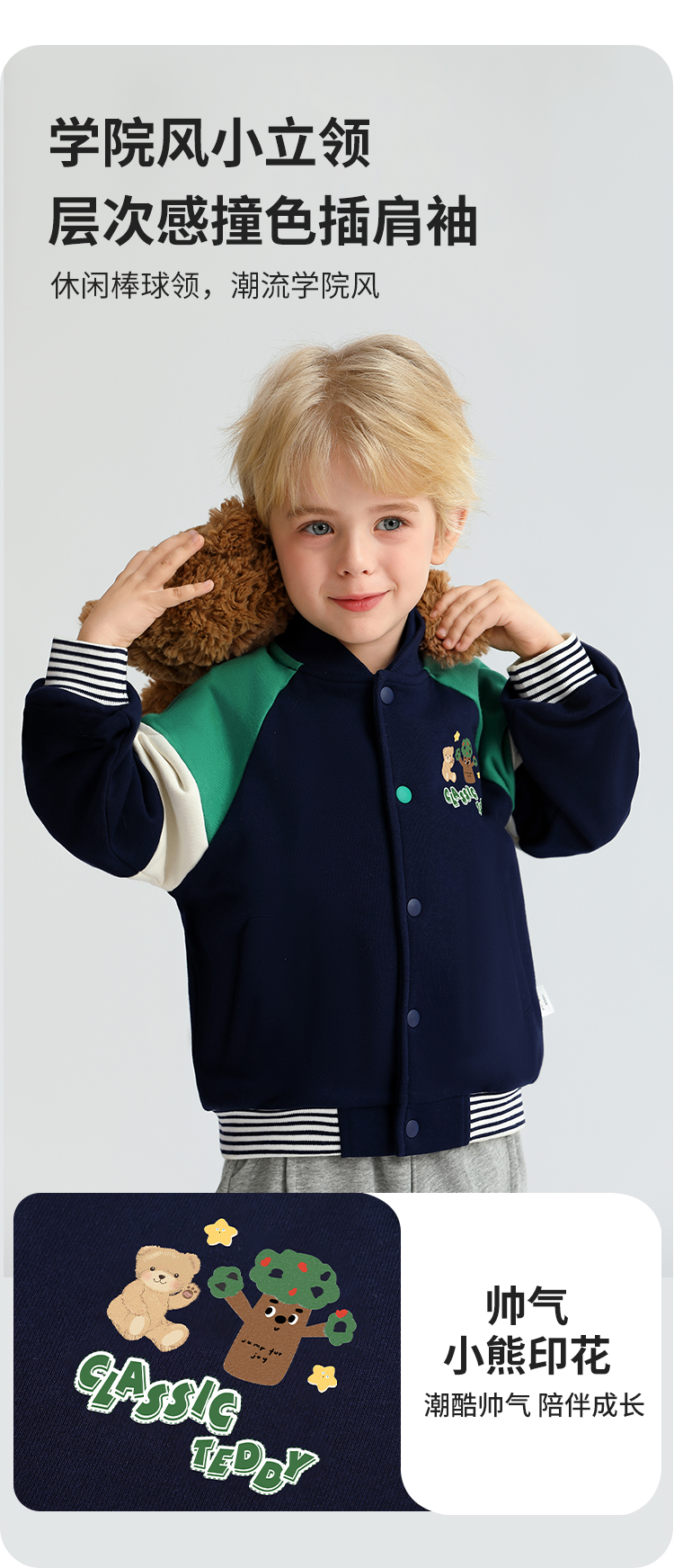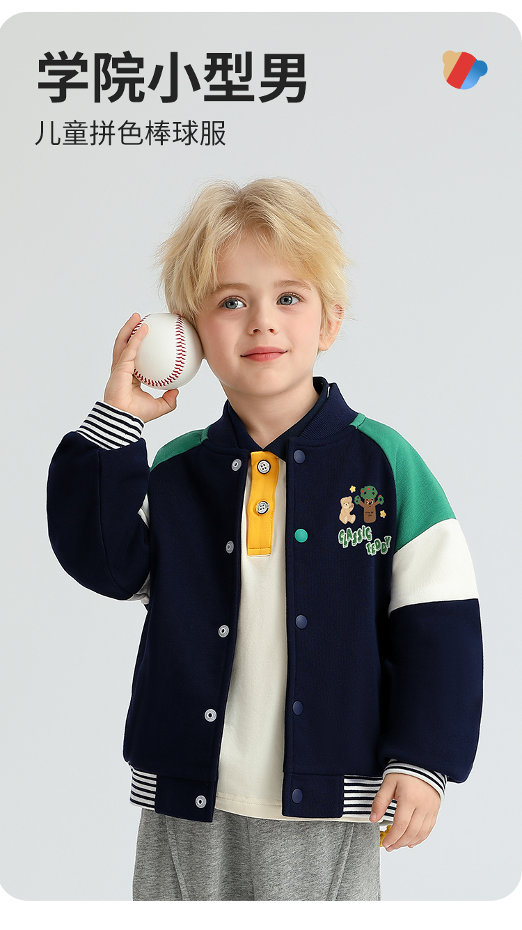 【男女同款】【90-140】【精典泰迪】男女童春秋棒球服外套