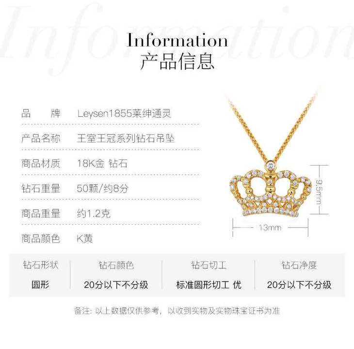 南1莱绅通灵珠宝钻石吊坠18K金钻石吊坠项链女唐嫣伴手礼 王室王冠
