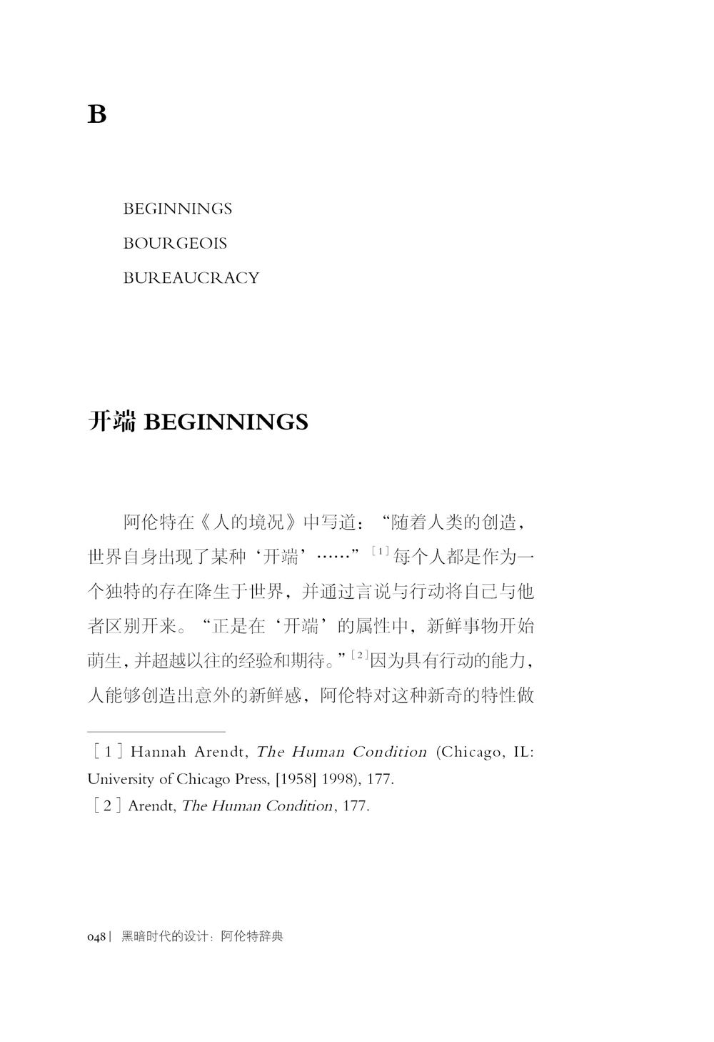 从“行动”“开端”和“创造力”,到“有死性”“诞生性”和“游戏”,再到“多余”“技术”和“暴力”,《黑暗时代的设计:阿伦特辞典》收纳的56项词条以阿伦特的文章和思想为起点,邀请全世界的设计师和设计学者通过一系列独特的写作,来思考如何将这些概念与当下的设计及政治实践构想在一起。