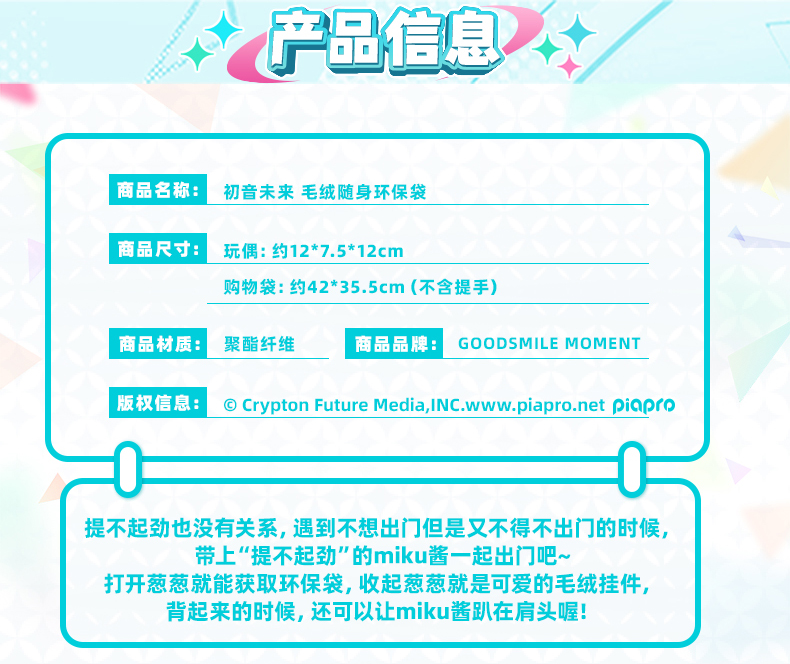 【GSC现货】初音未来 毛绒随身环保袋 GSM