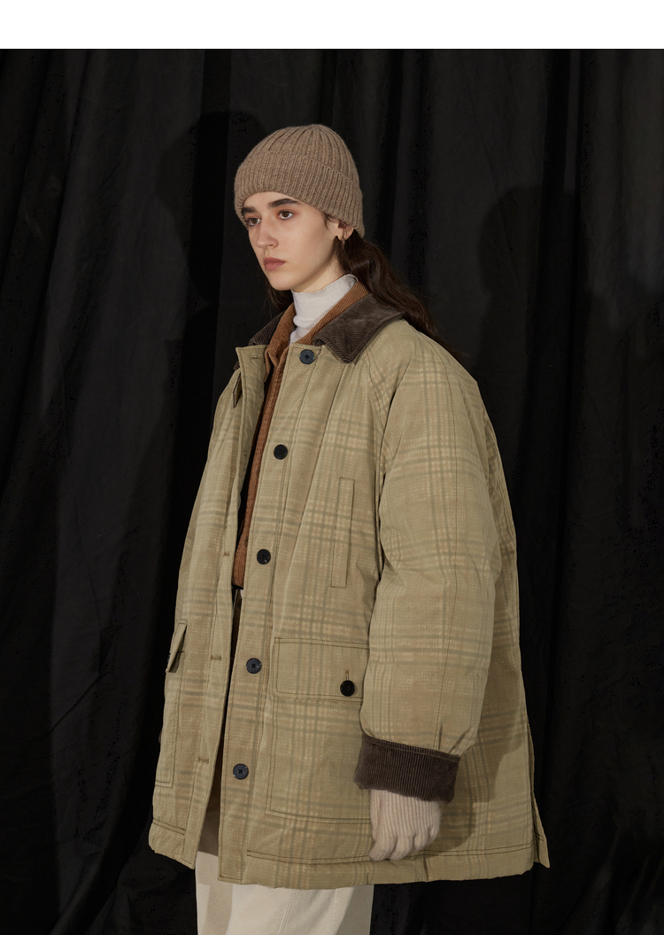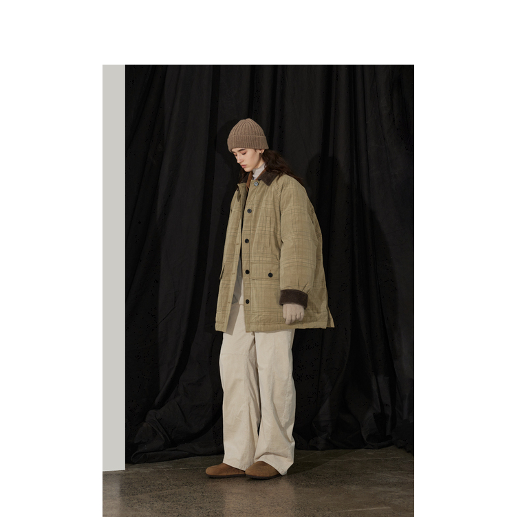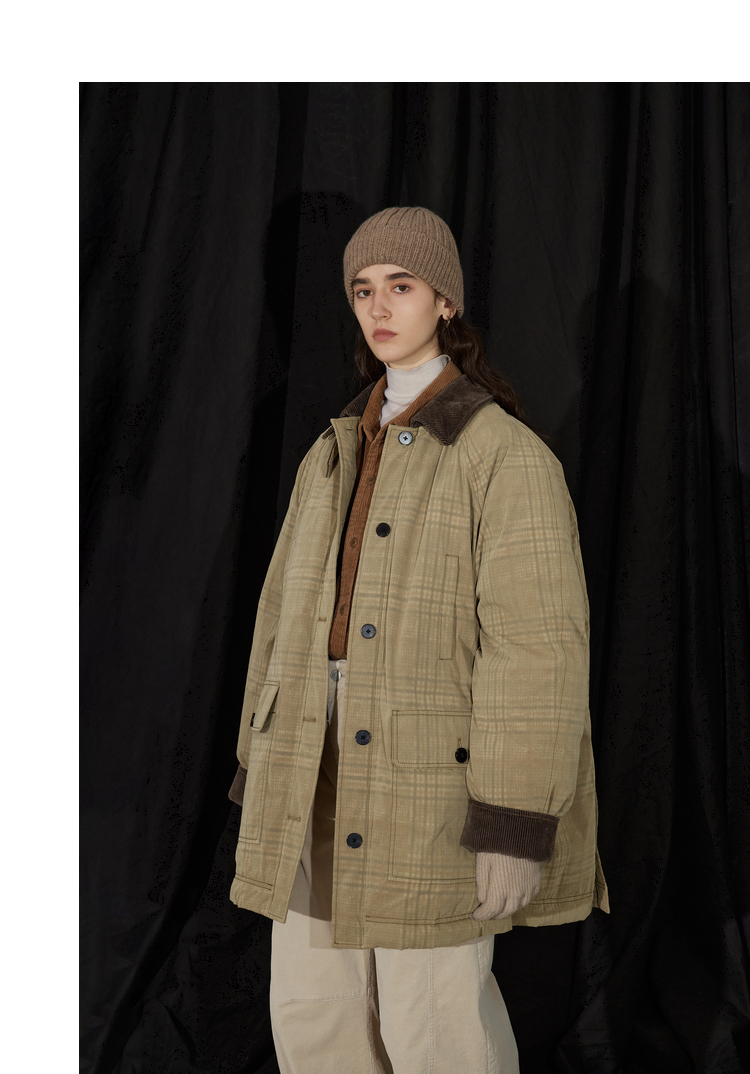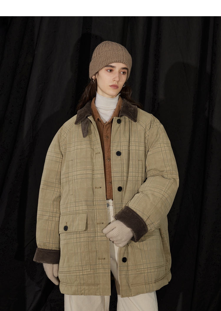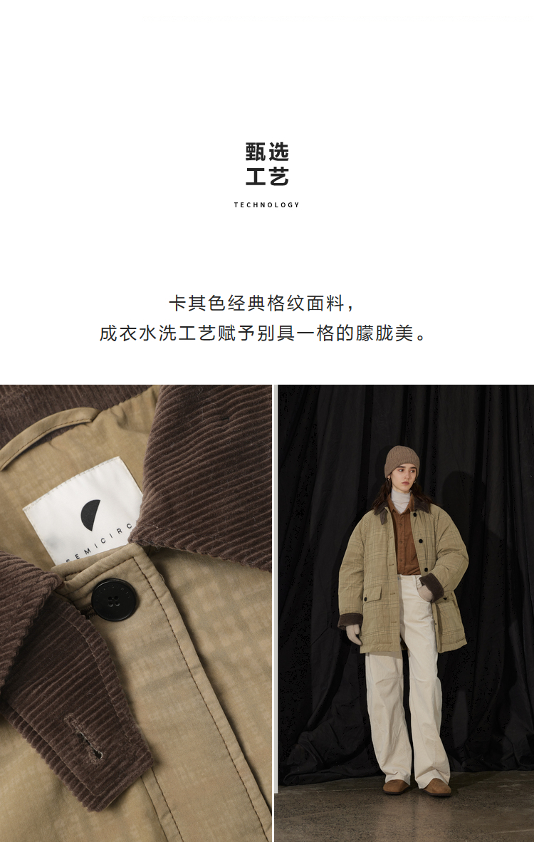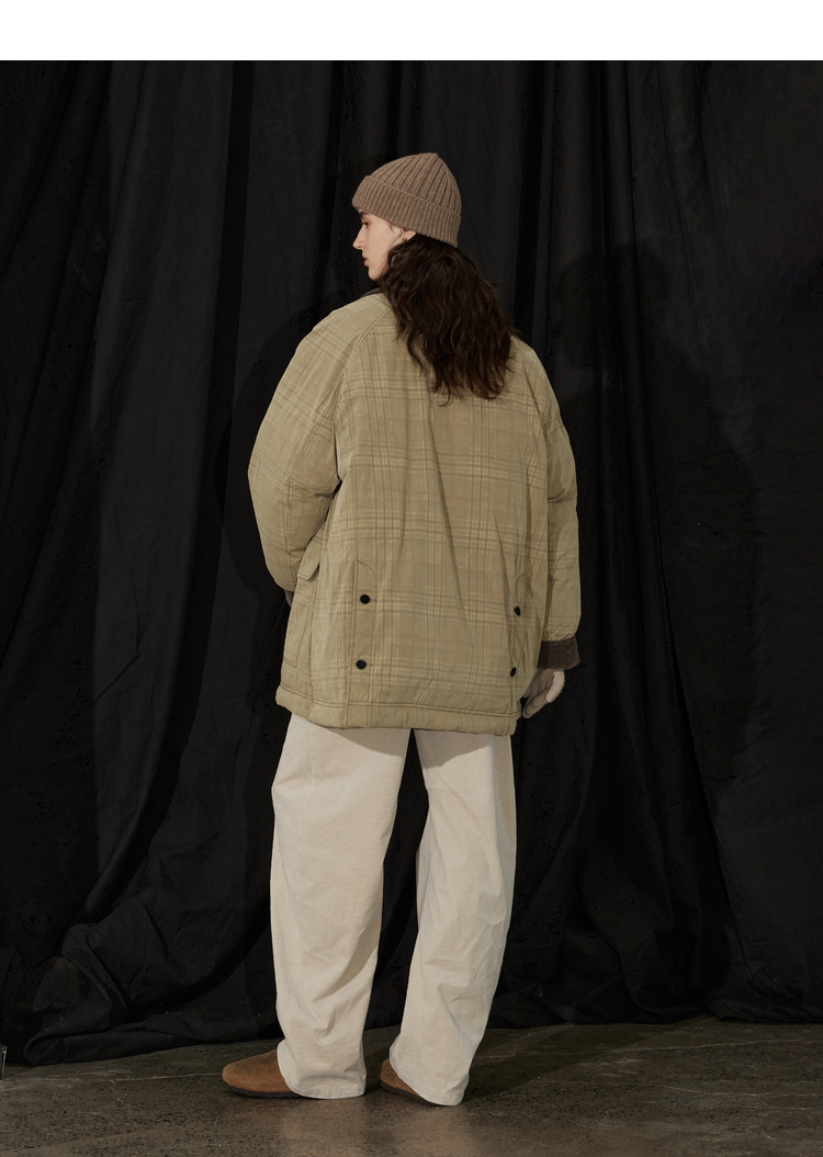 半圆/D24401510/格纹印花水洗工装羽绒服