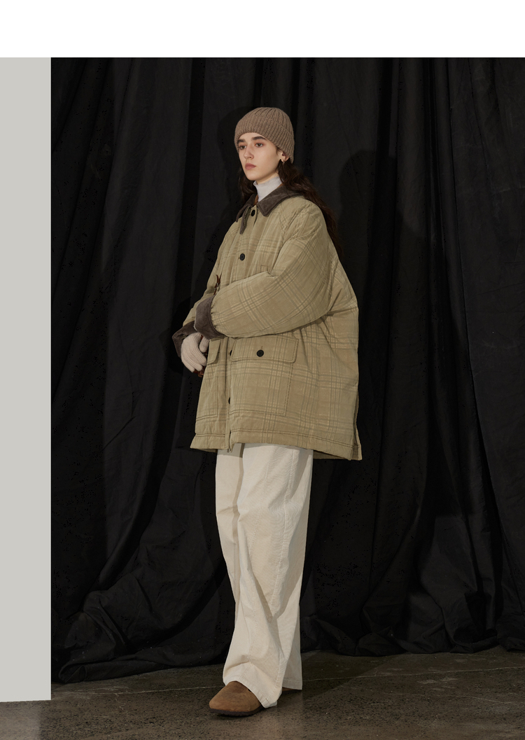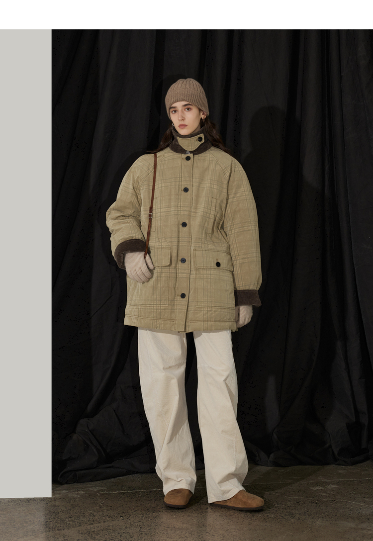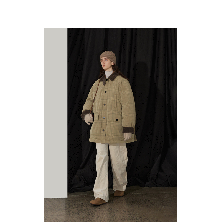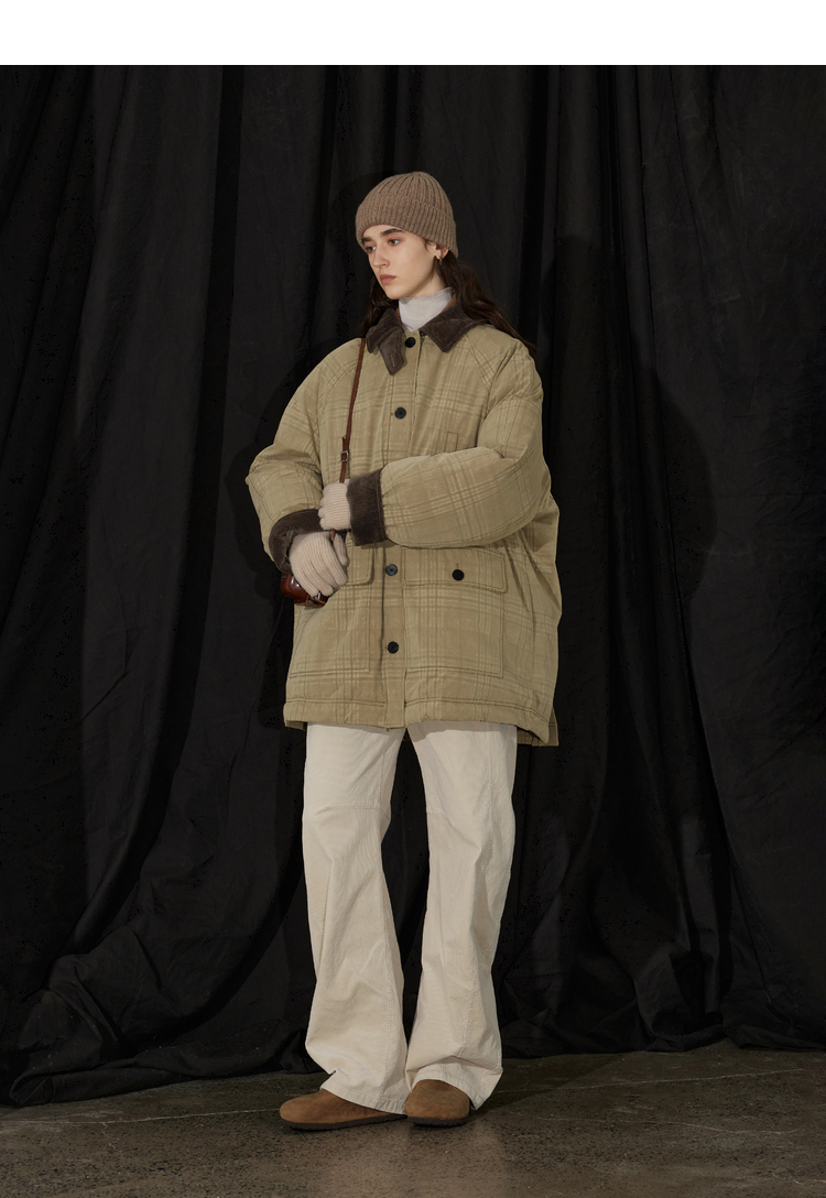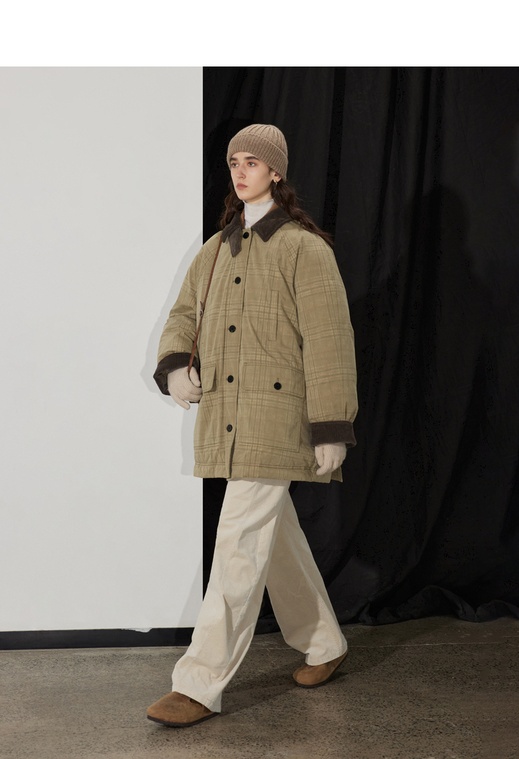 半圆/D24401510/格纹印花水洗工装羽绒服