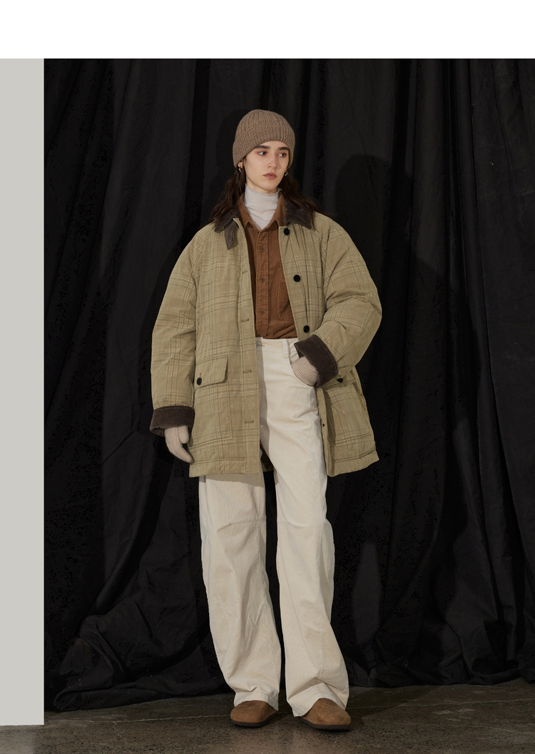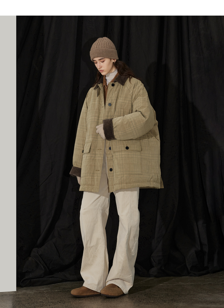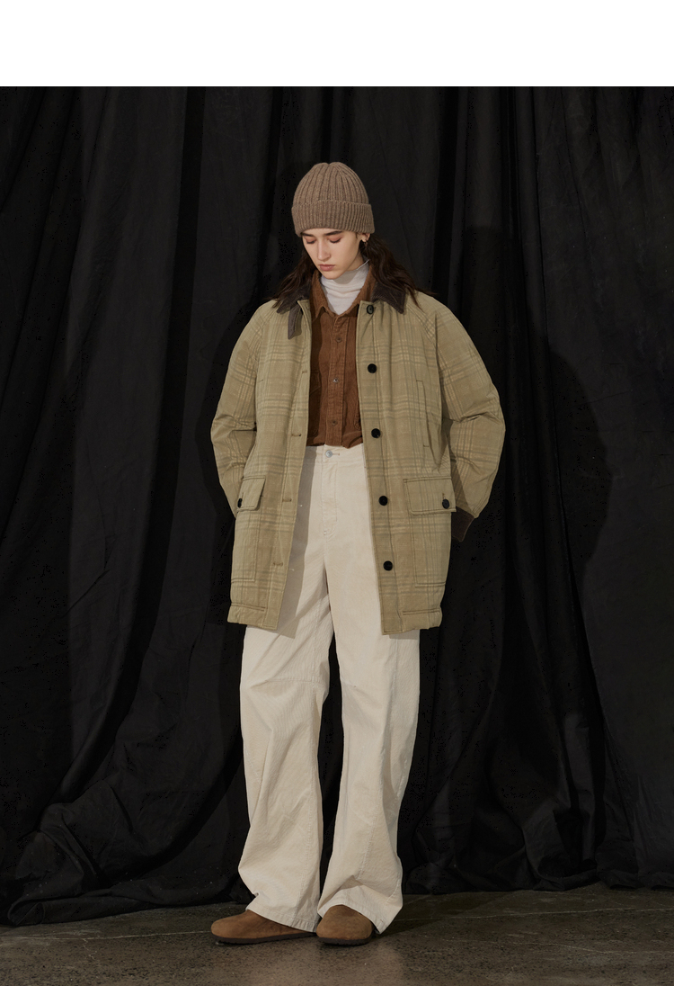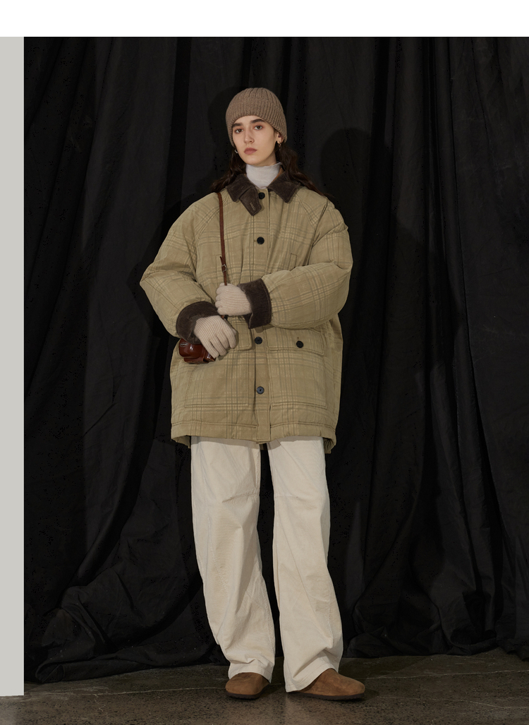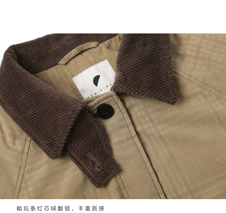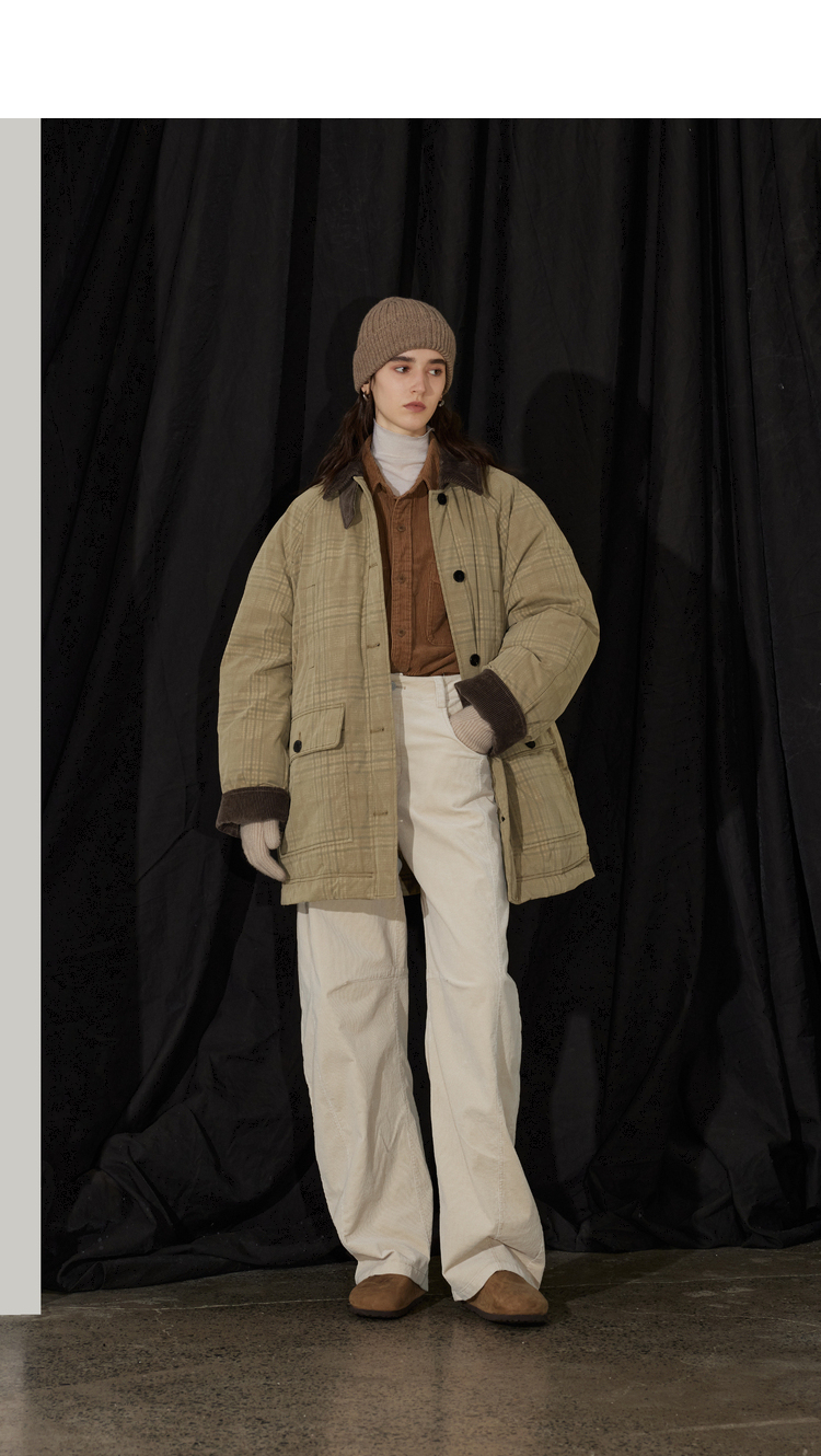 半圆/D24401510/格纹印花水洗工装羽绒服