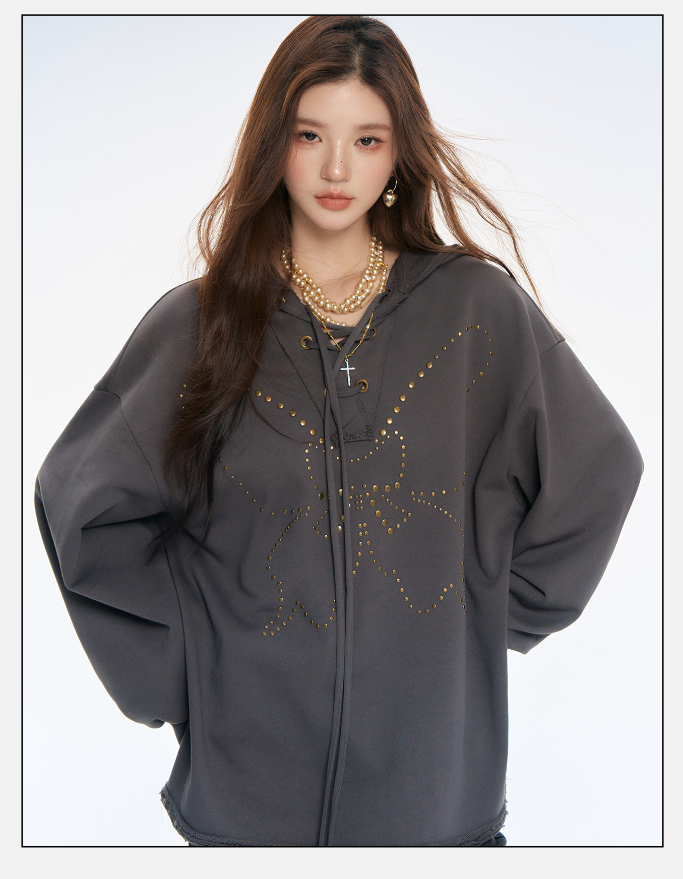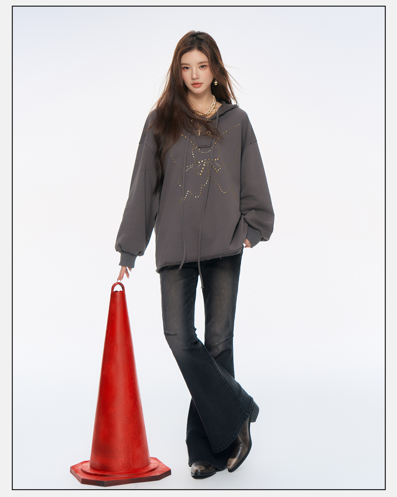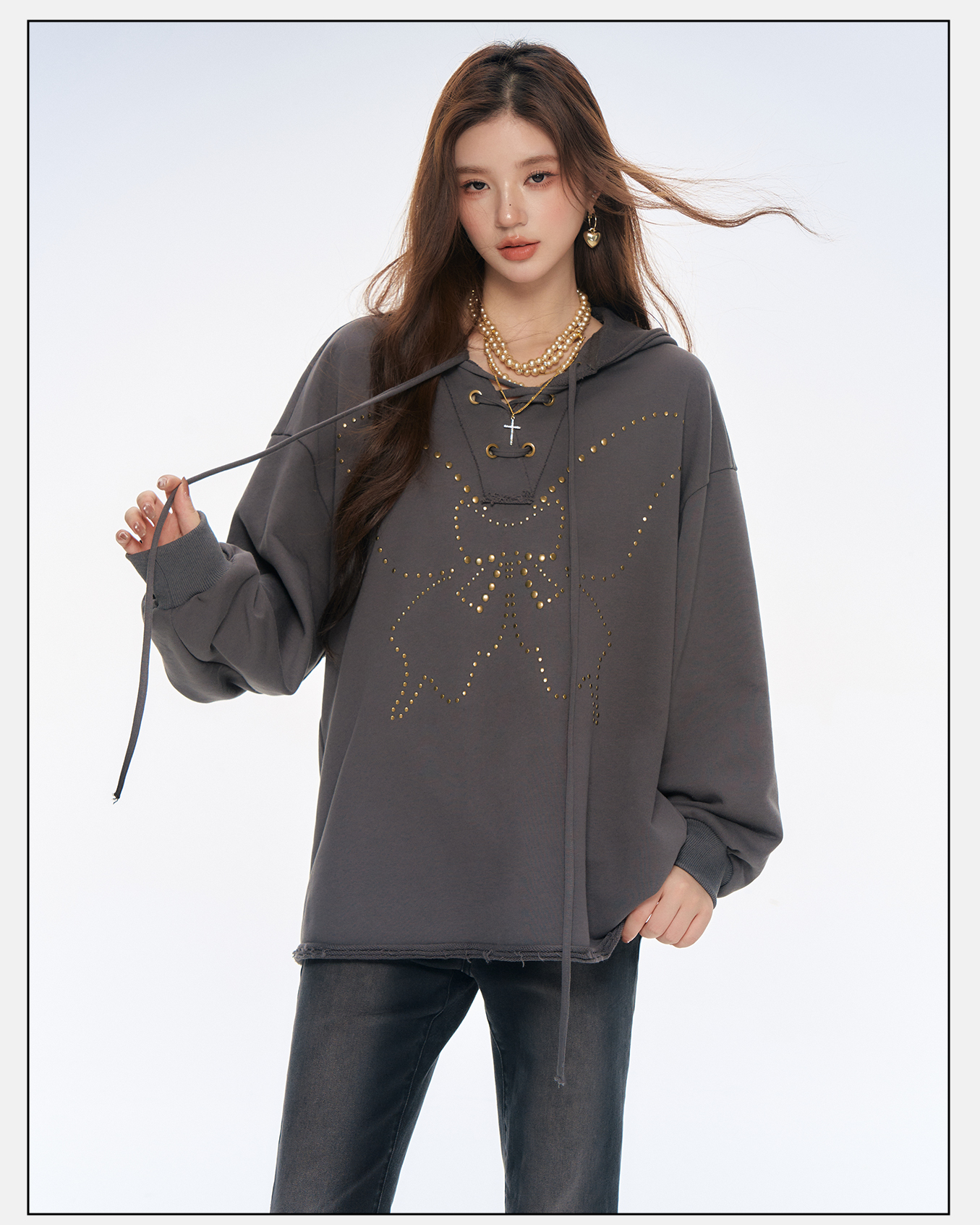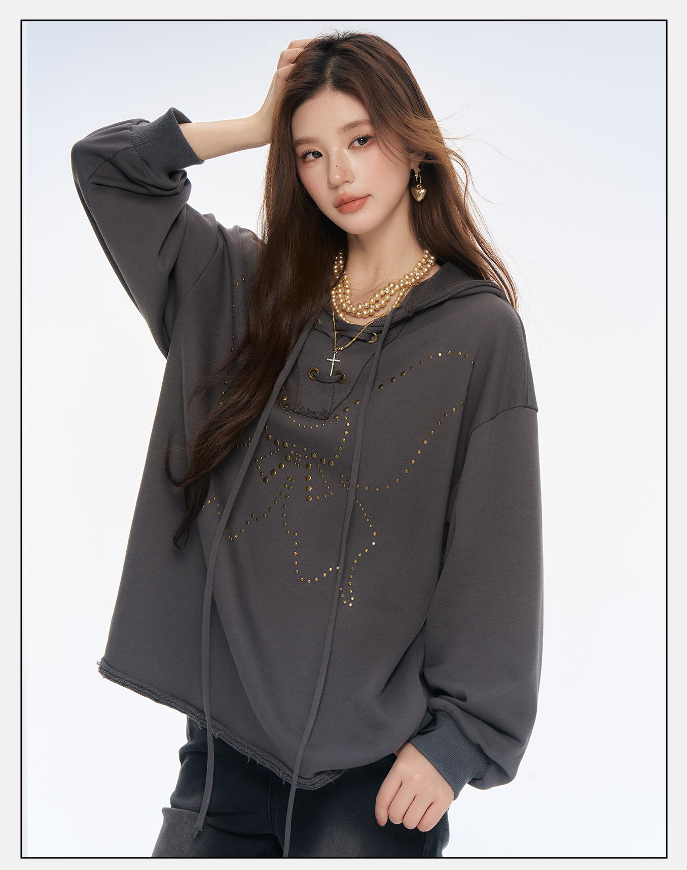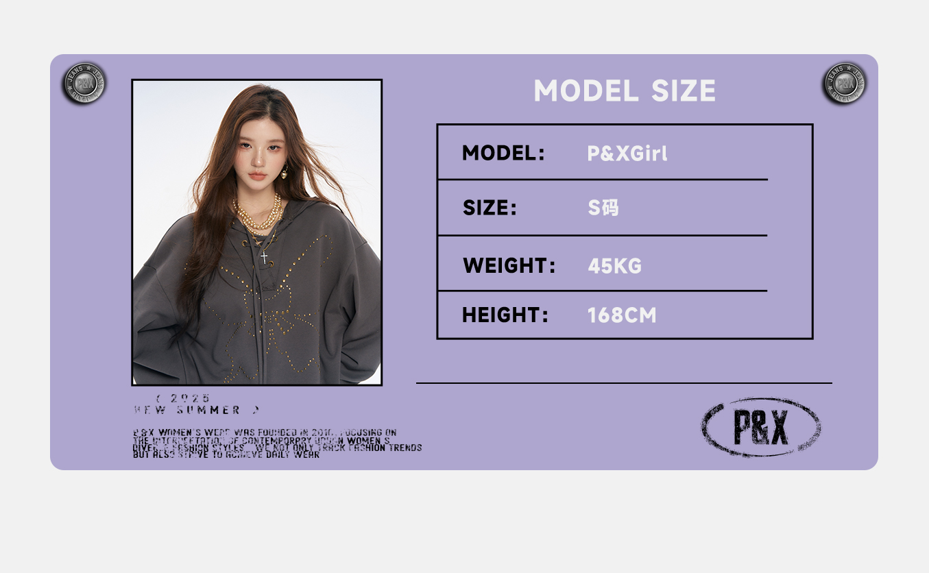P&X设计师女装2025秋新款街头休闲纯色中长款卫衣825317144 灰色