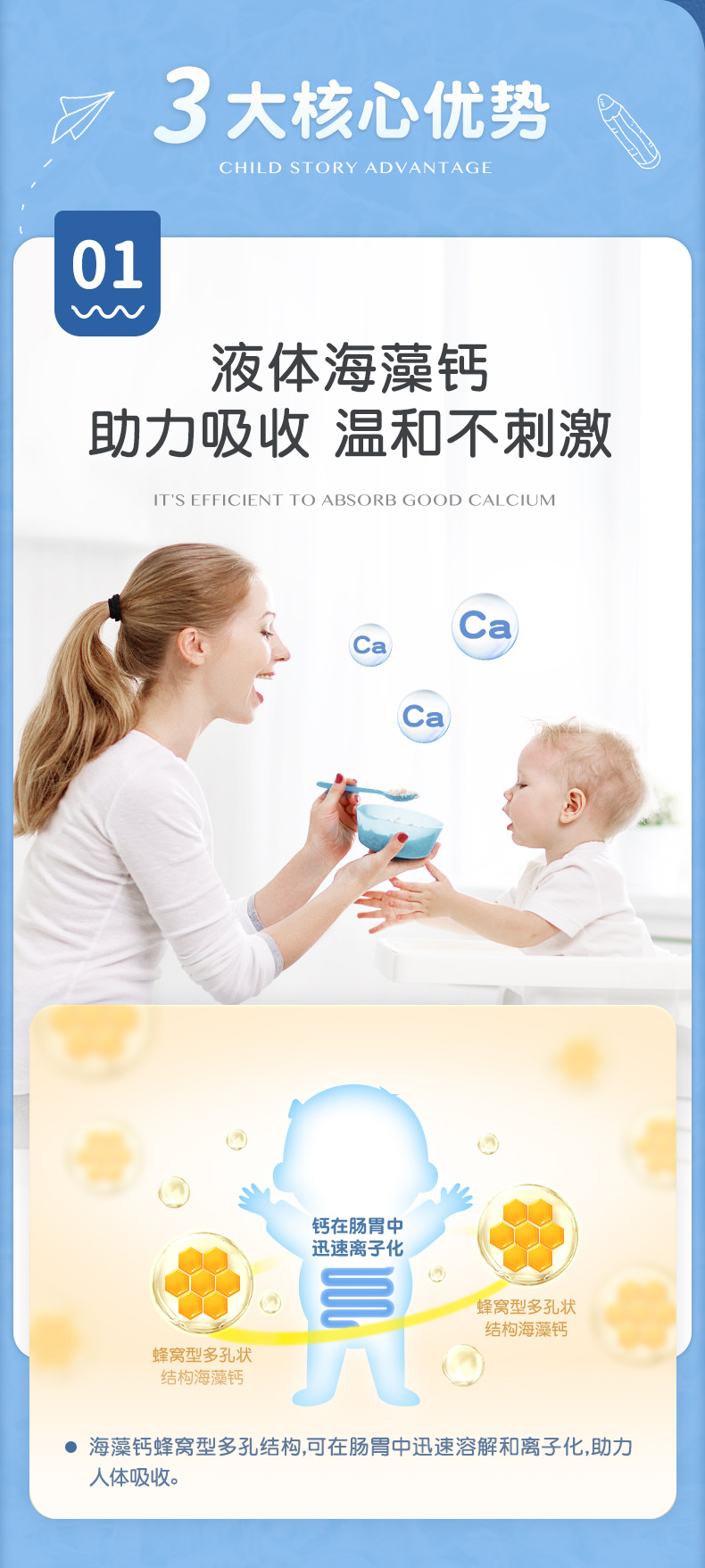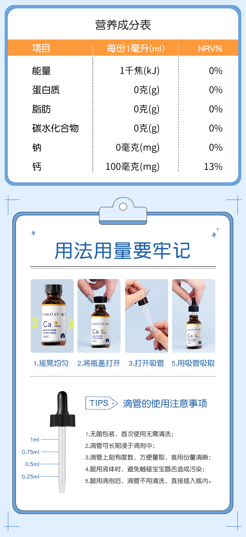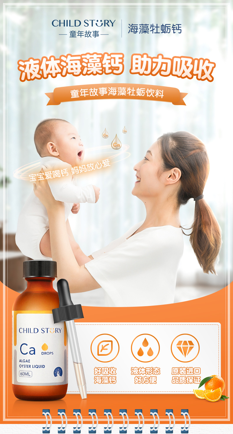 童年故事海藻牡蛎饮料钙滴剂儿童成长钙液体乳钙成人儿童补钙60ml