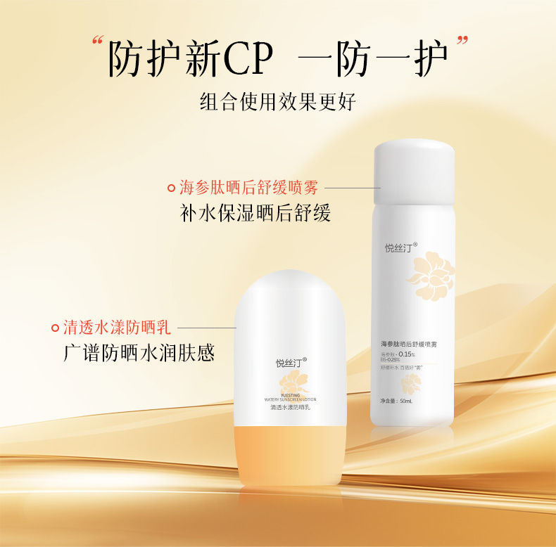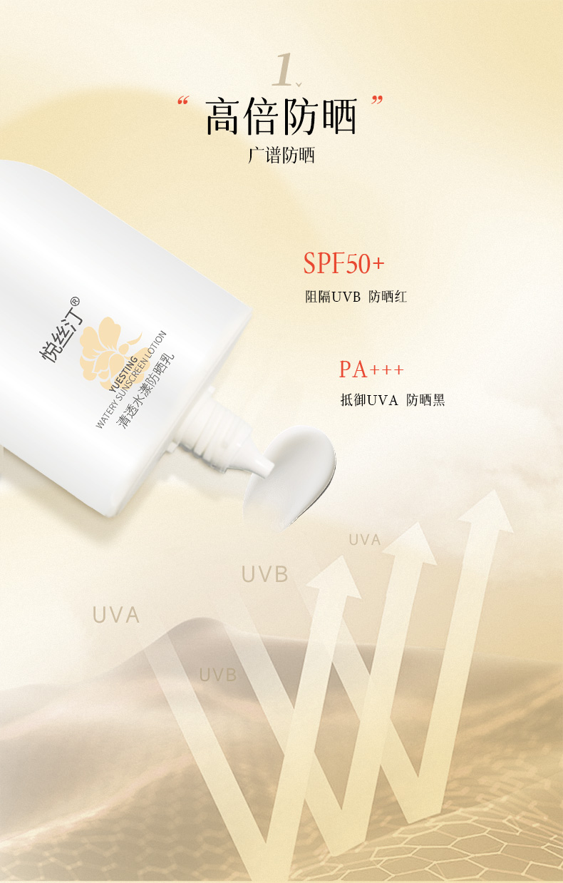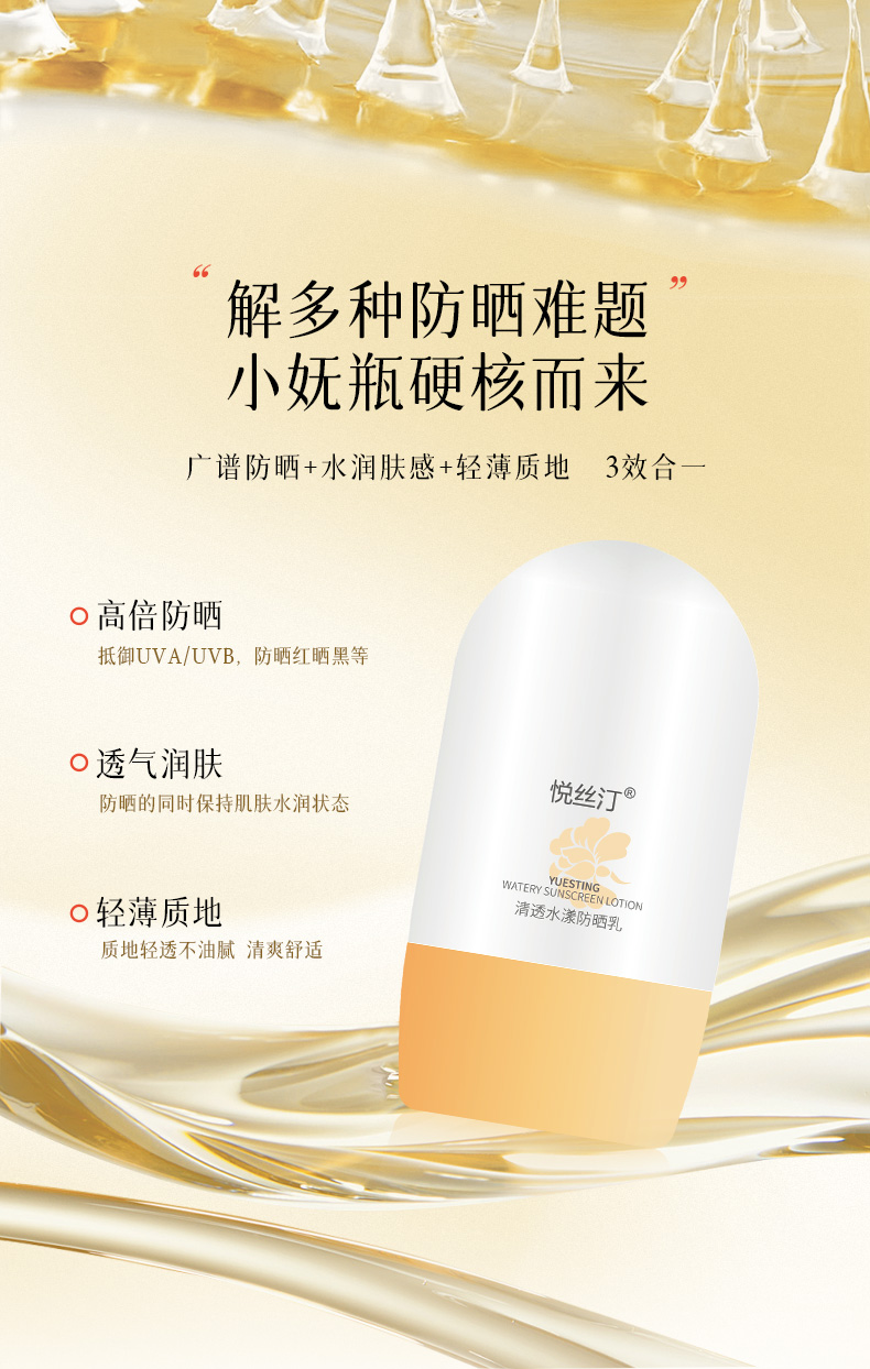 悦丝汀清透水漾防晒乳50g 水润肤感日常通勤旅行适用防晒霜SPF+++