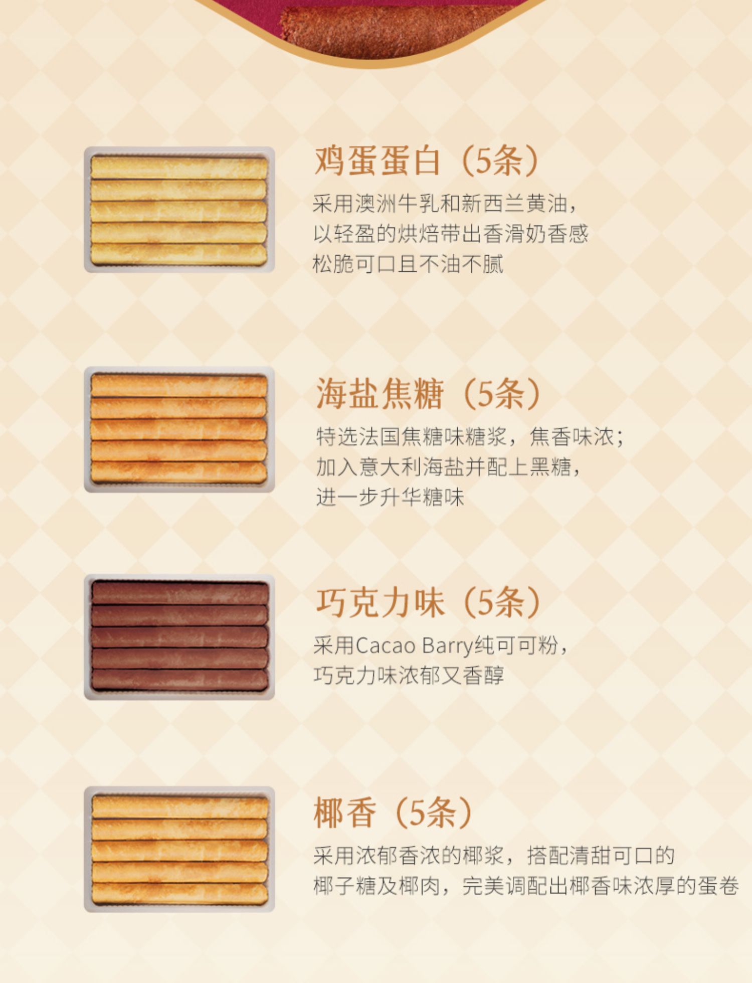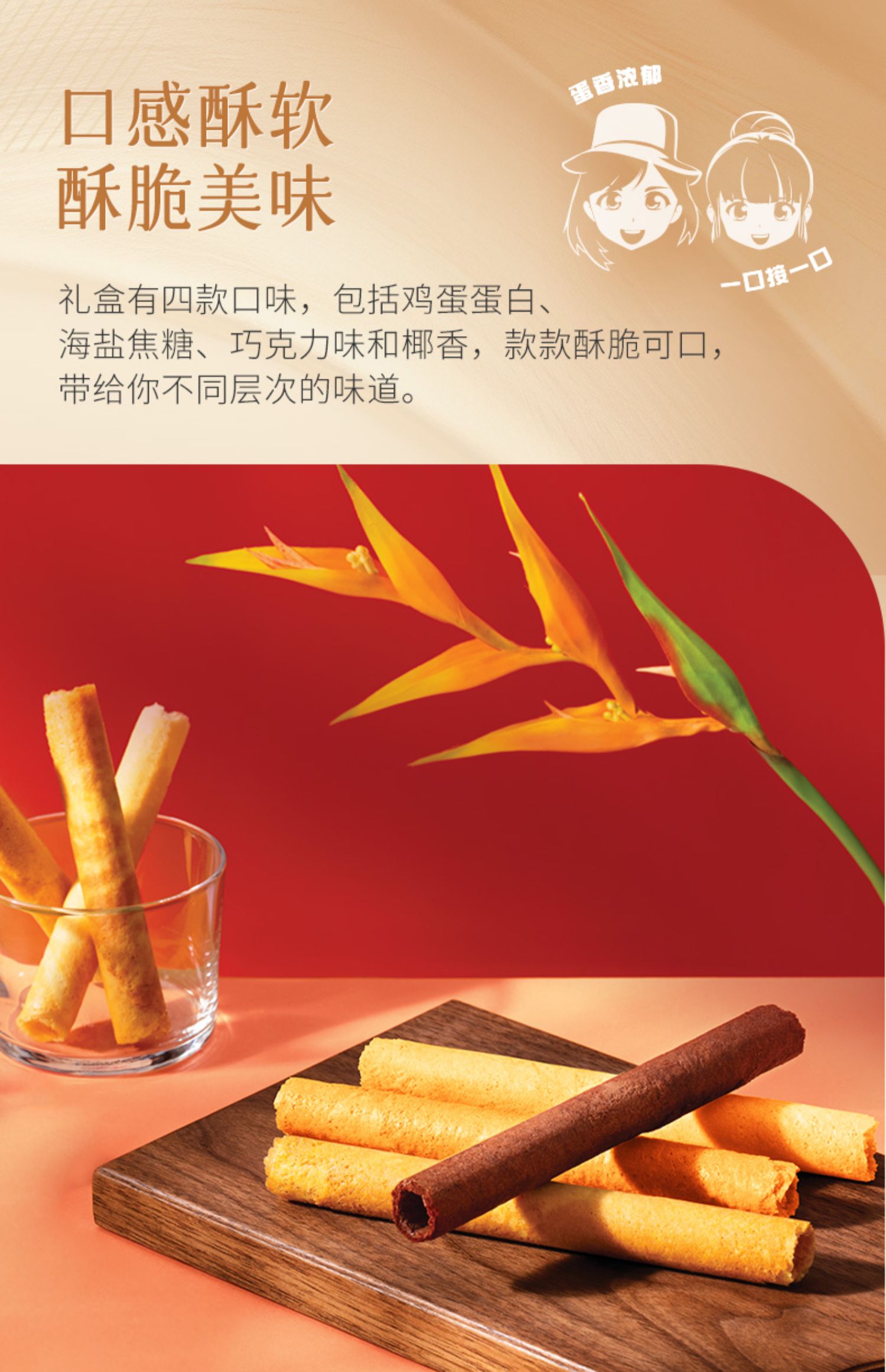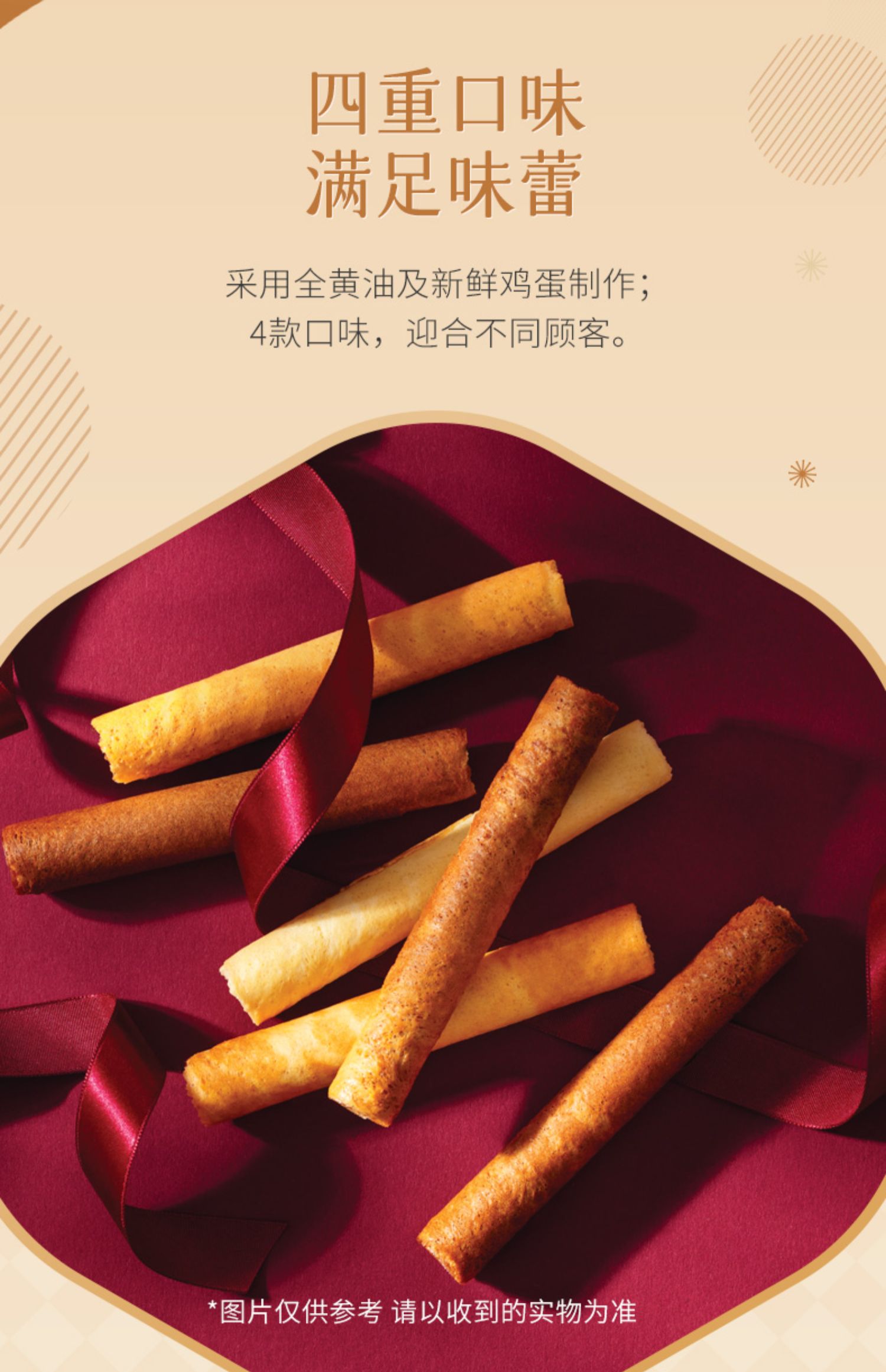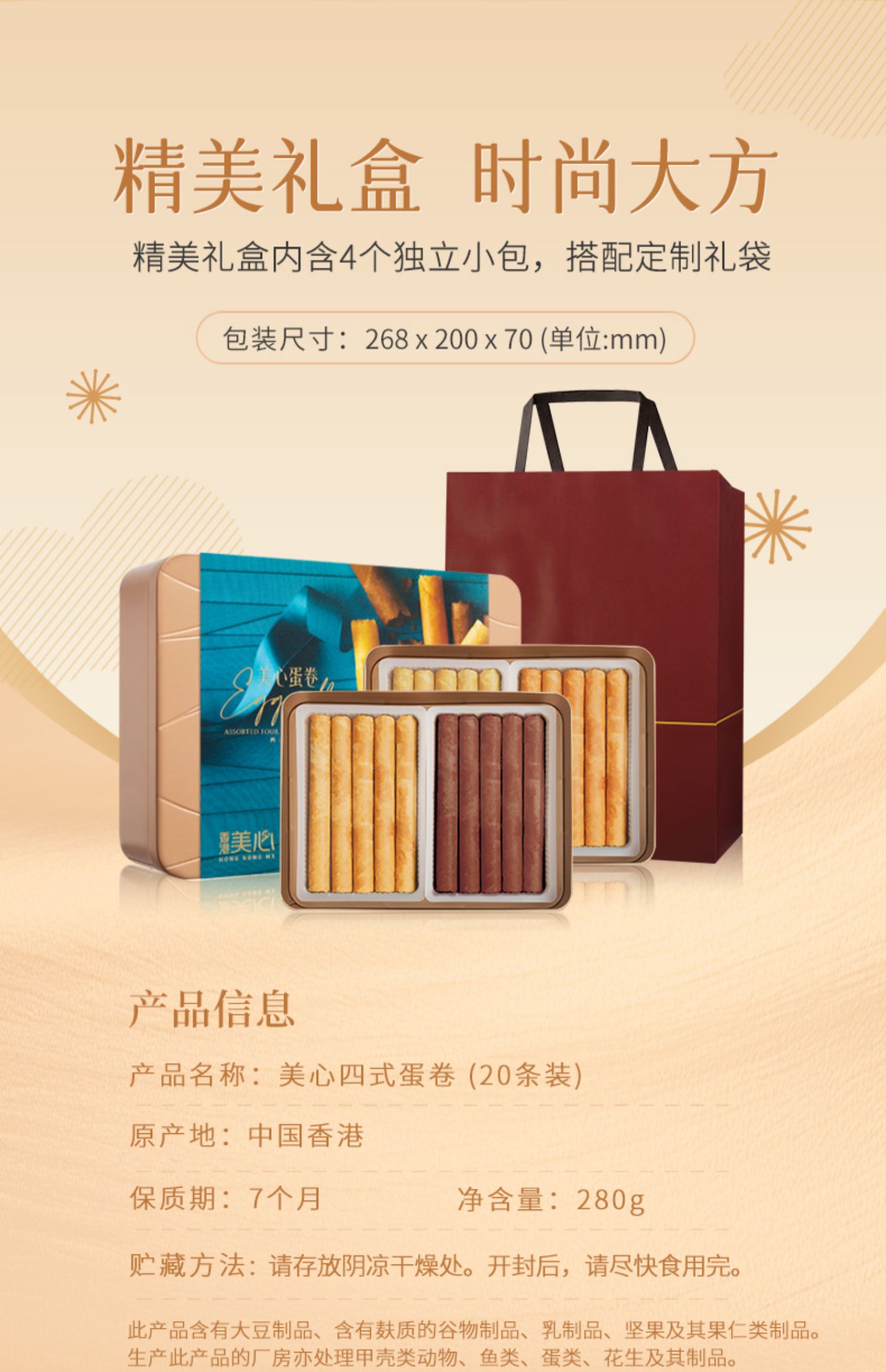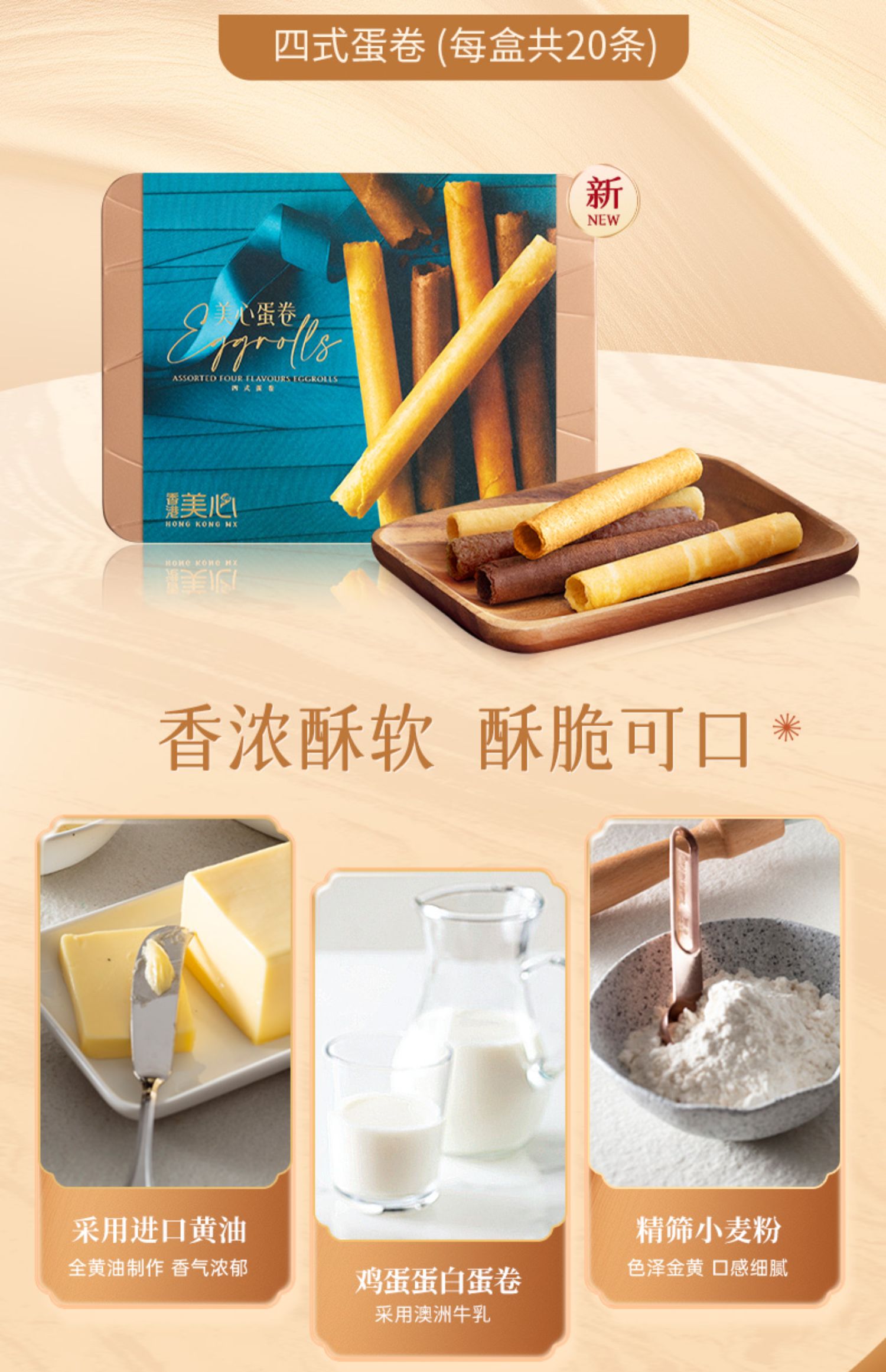 【新品限时购】美心四式鸡蛋卷20条装280g/058170 四重口味香浓酥脆