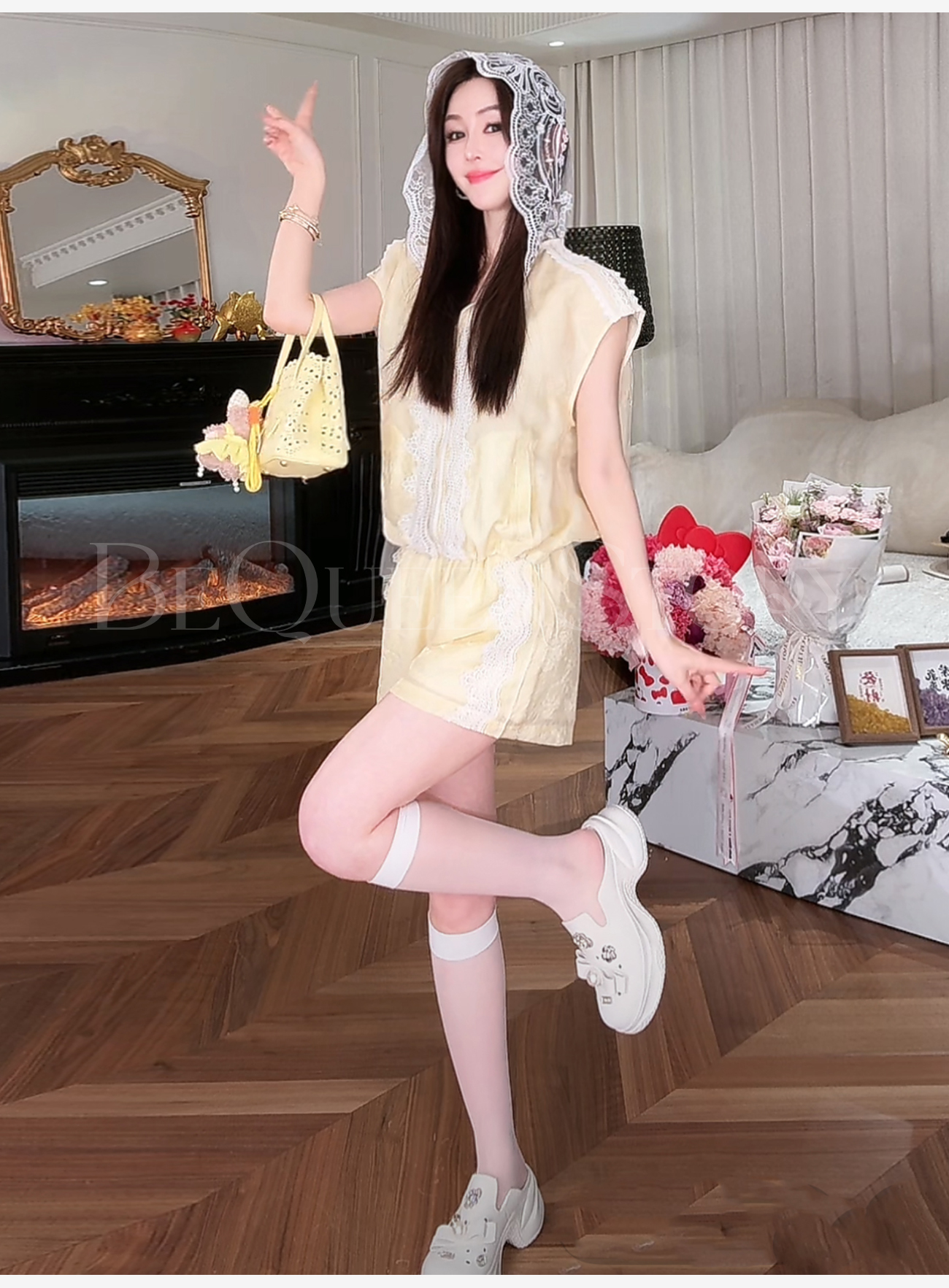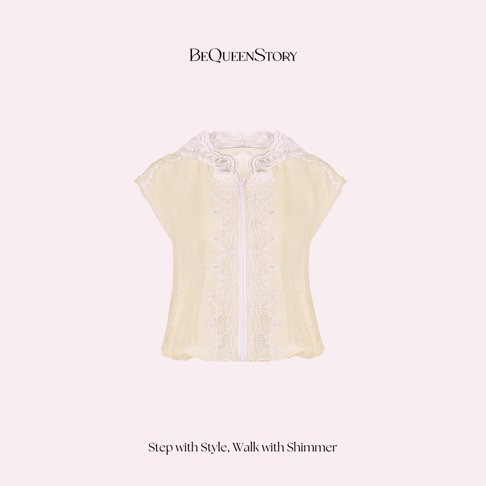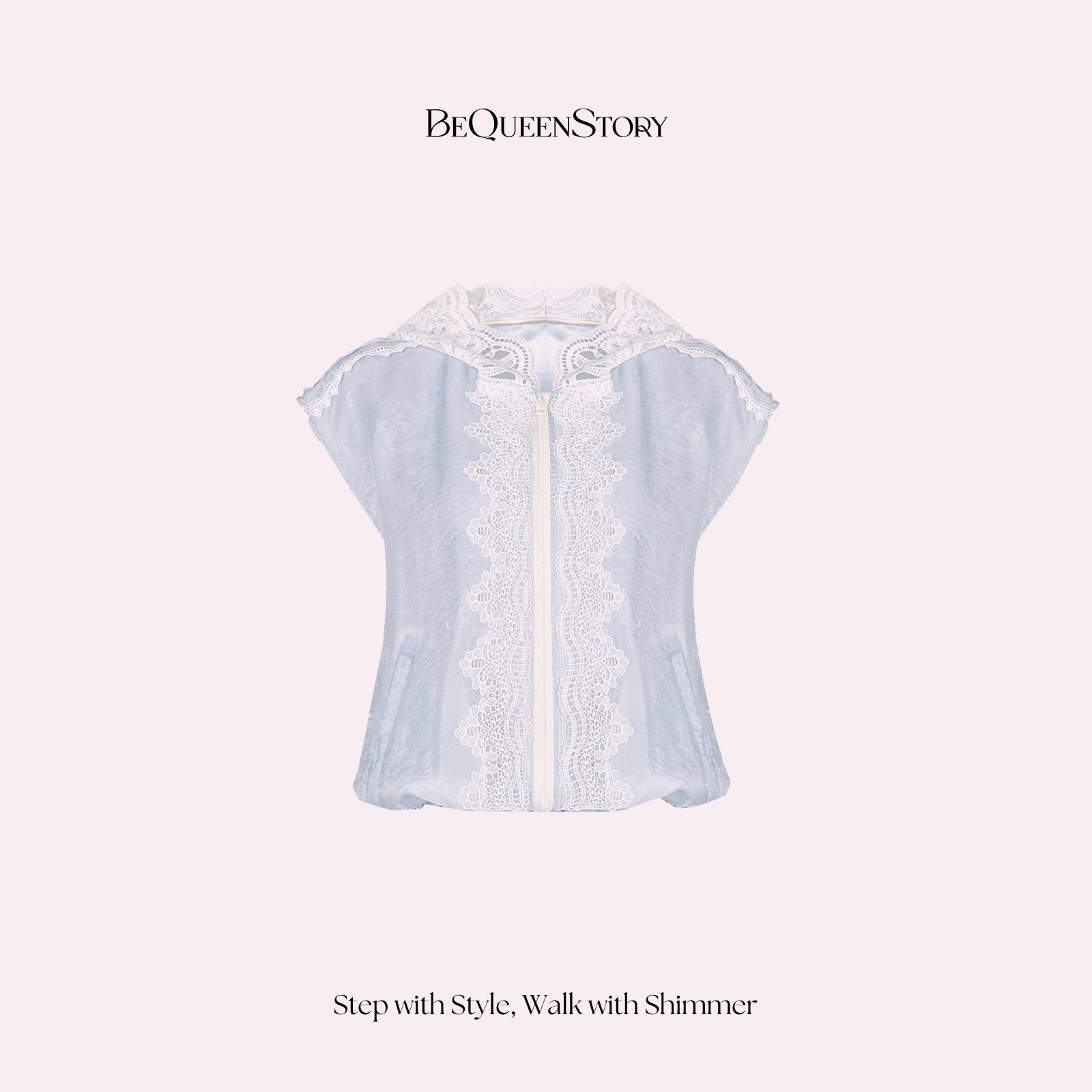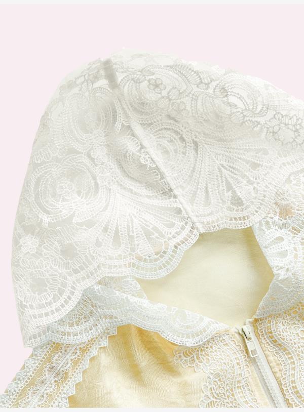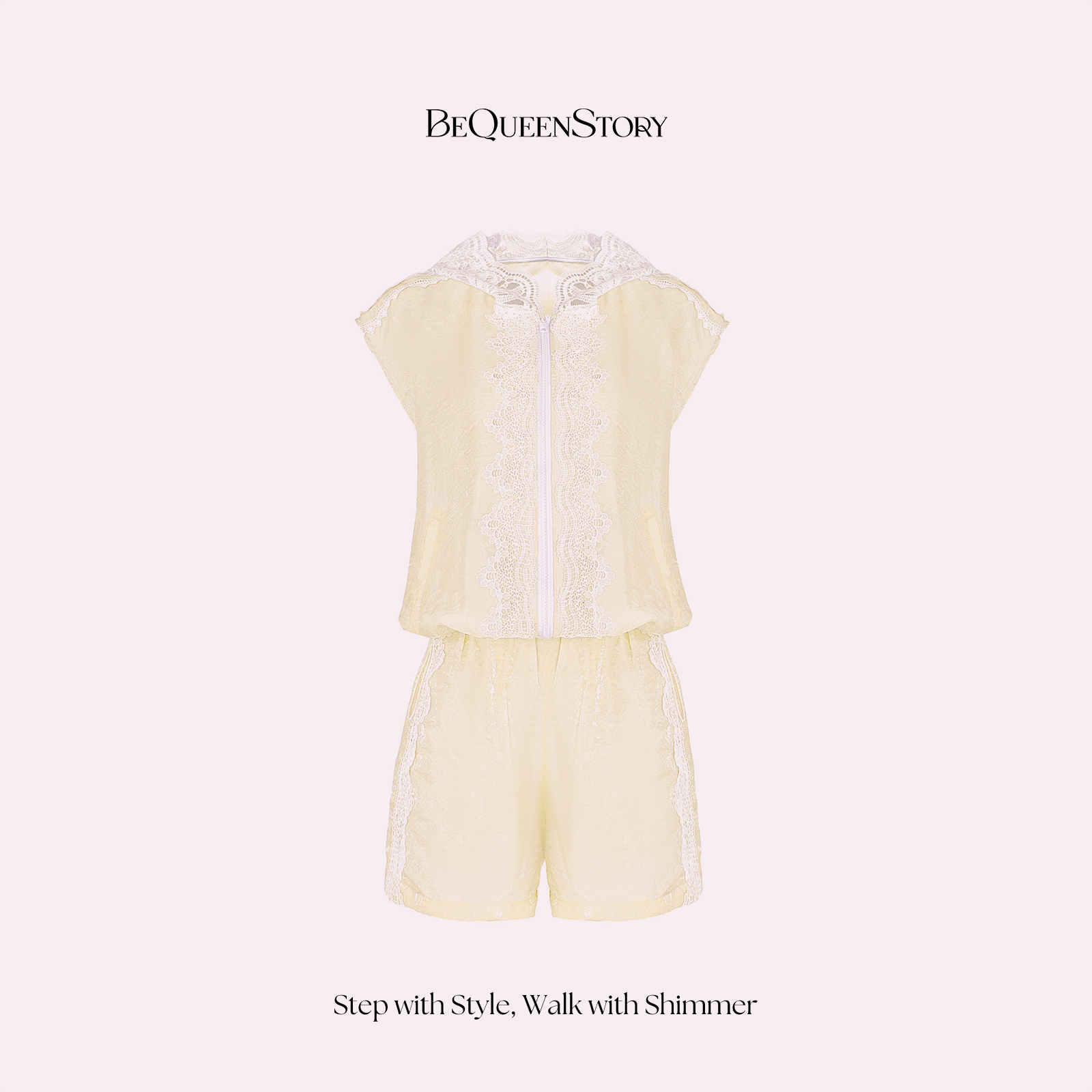 BeQueenStory【都市图鉴】透视感暗花纹蕾丝连帽外套&抽绳松紧短裤