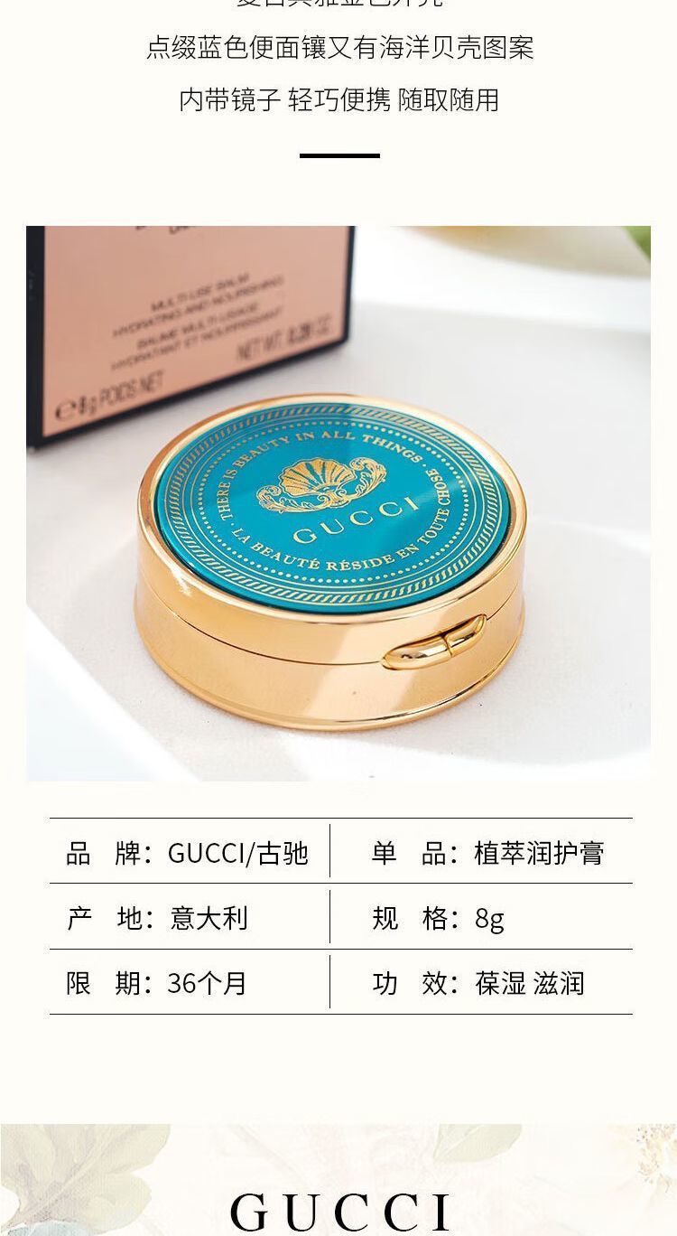 【春日特惠】GUCCI/古驰植萃润护膏润唇膏8g 滋养修护防干裂淡化唇纹