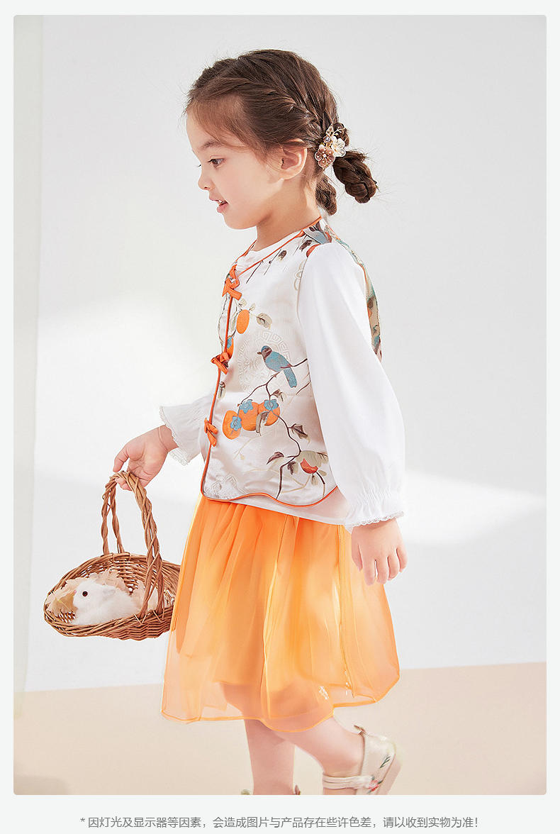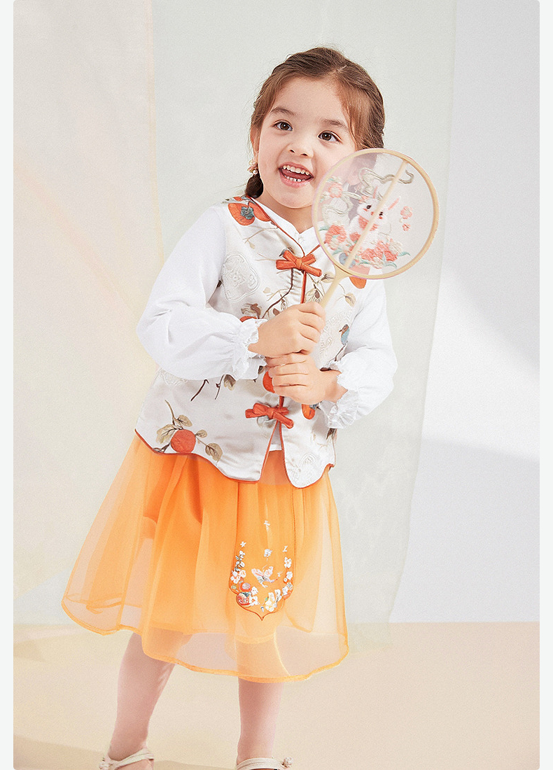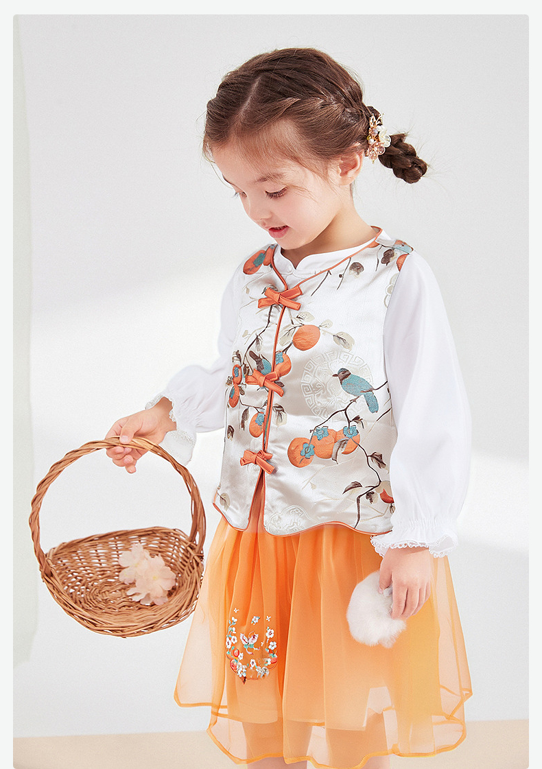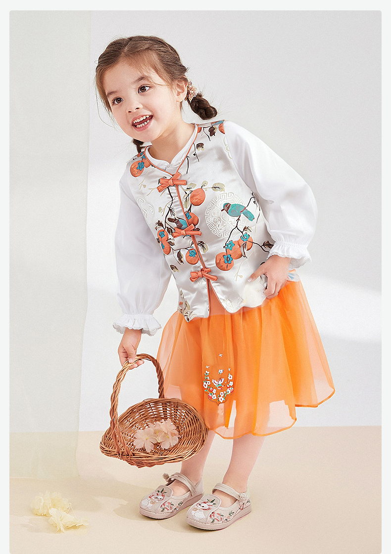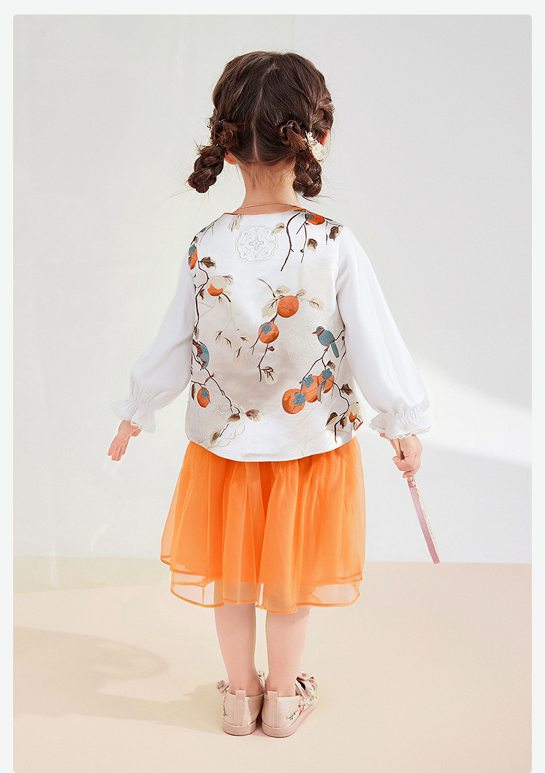 笛莎Deesha 童装女童套装2025秋新款女童“柿柿如意”织锦提花国风三件套