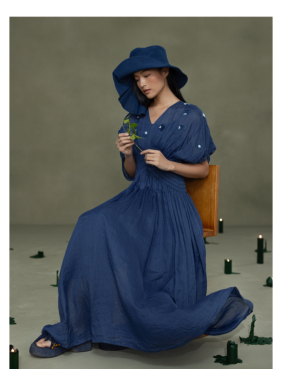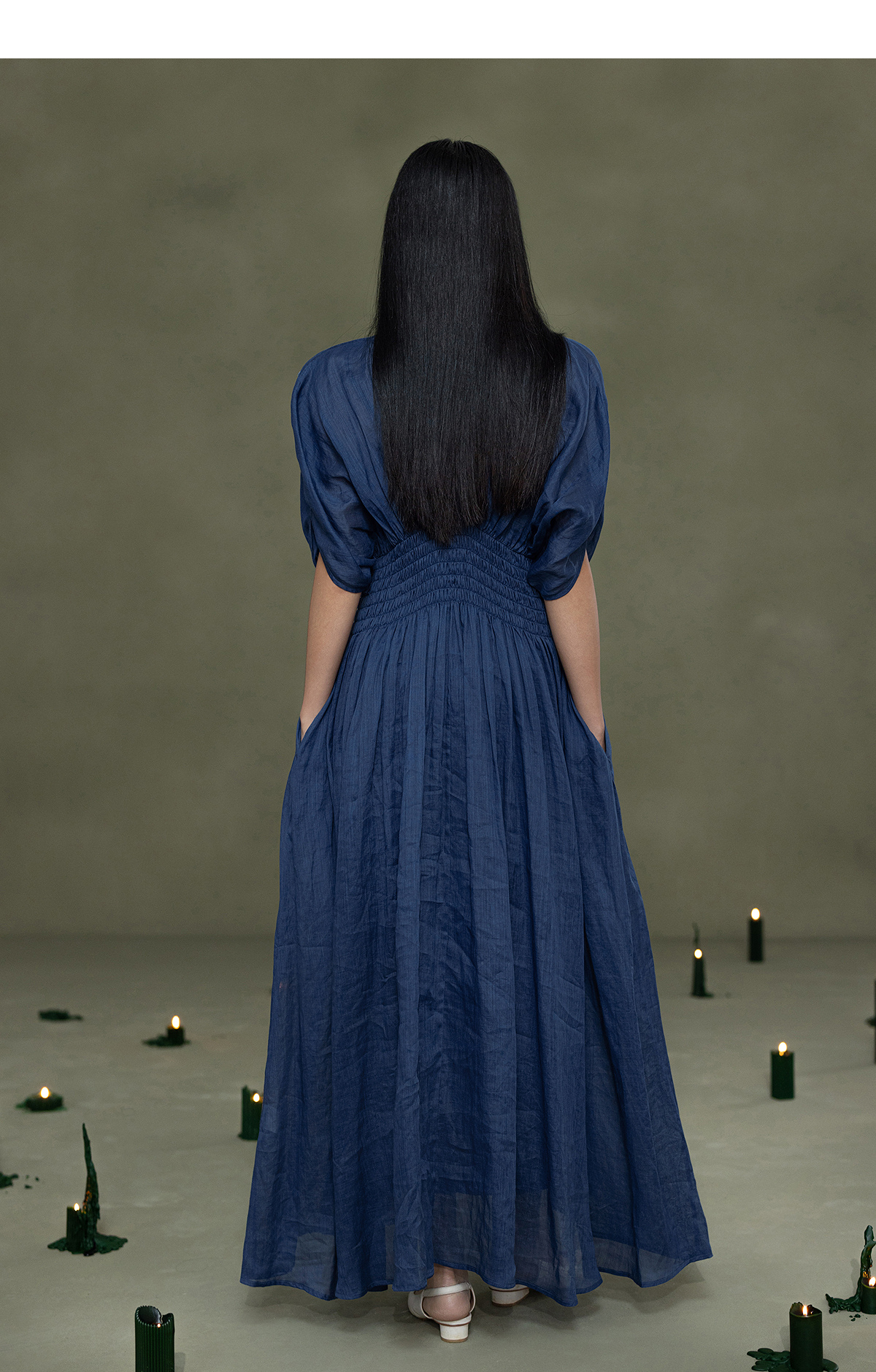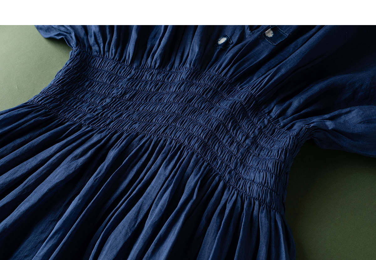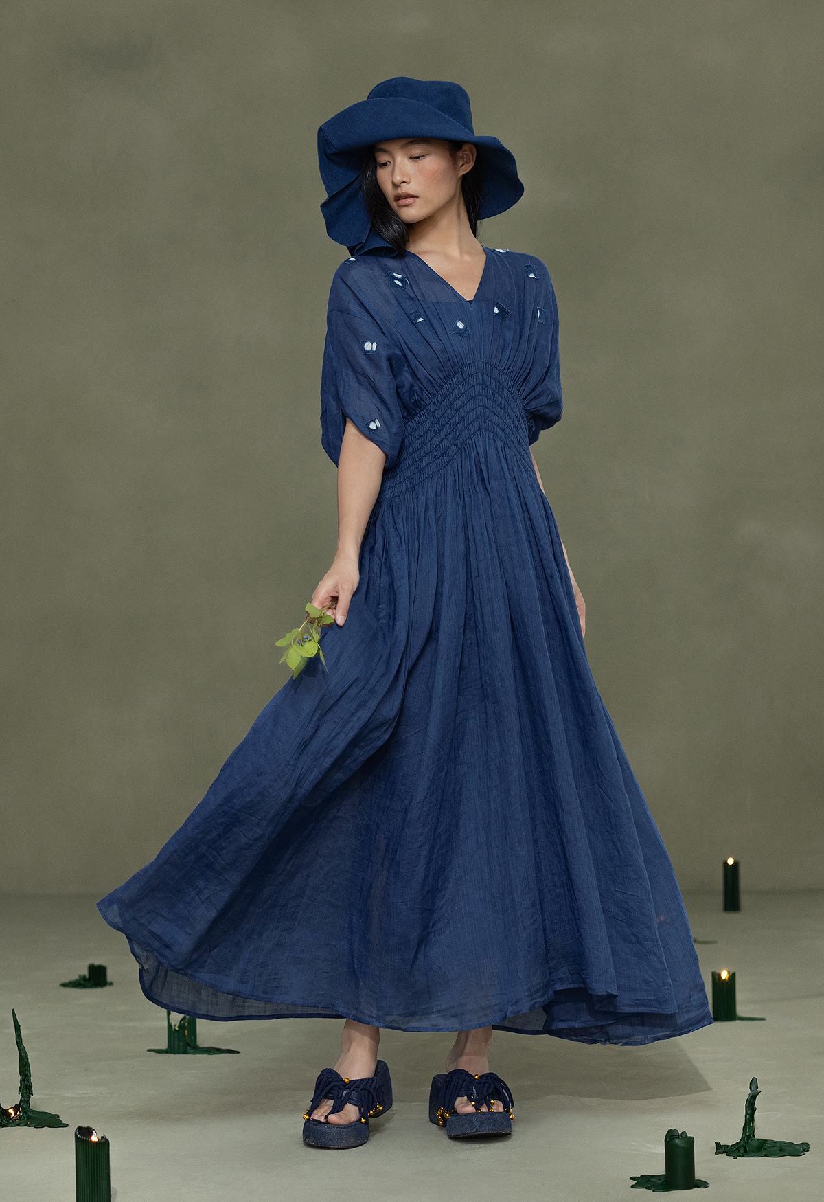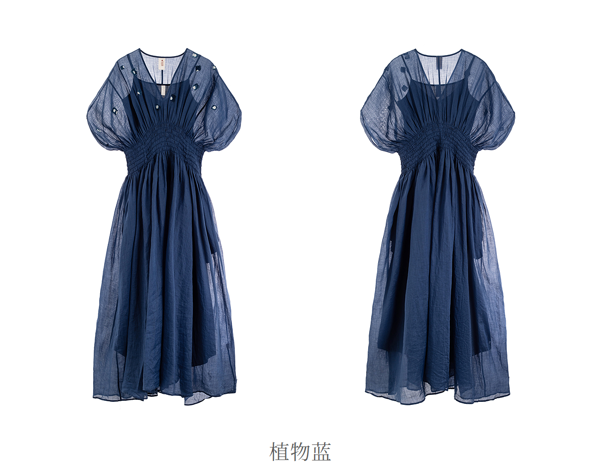 【林栖设计小店】植物染色|手工植物蓝苎麻宽松显瘦2026春新款扇形连衣裙1961021