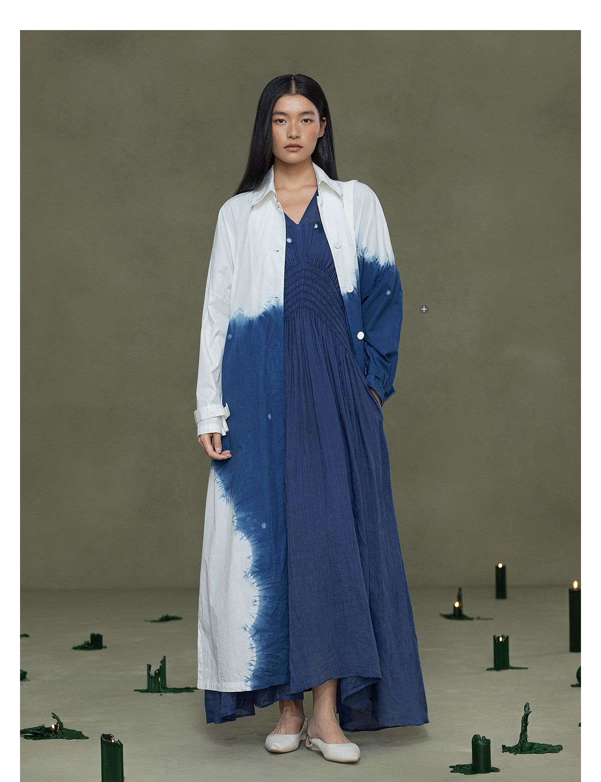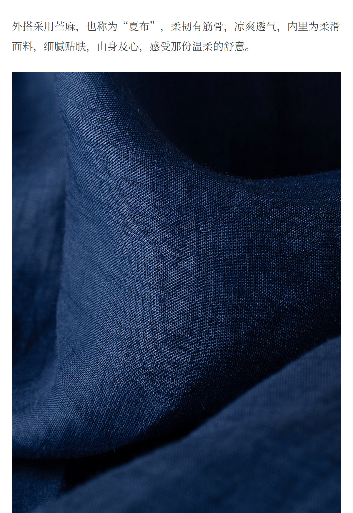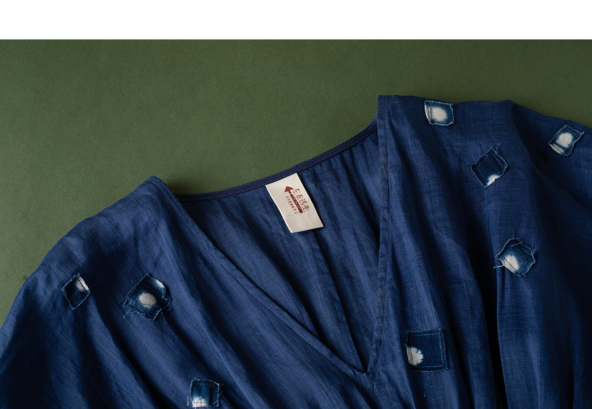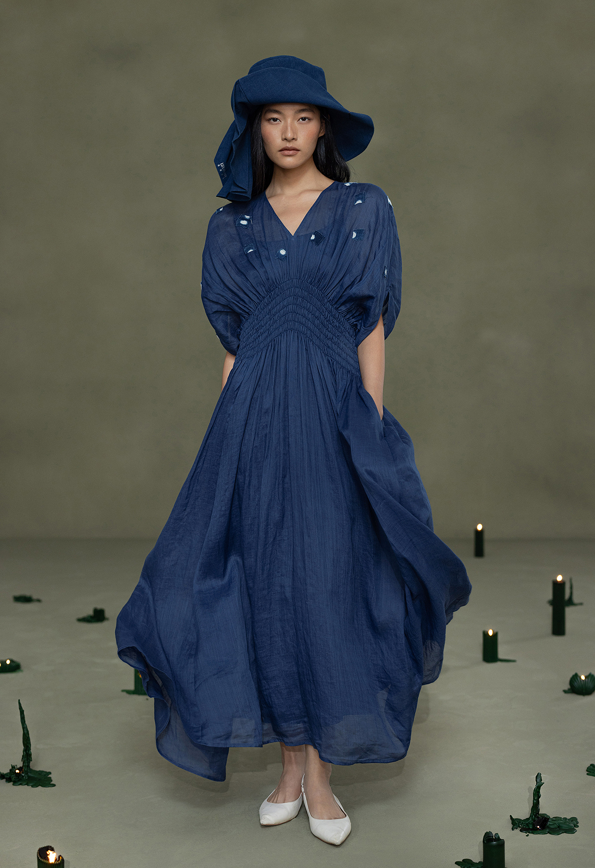 【林栖设计小店】植物染色|手工植物蓝苎麻宽松显瘦2026春新款扇形连衣裙1961021