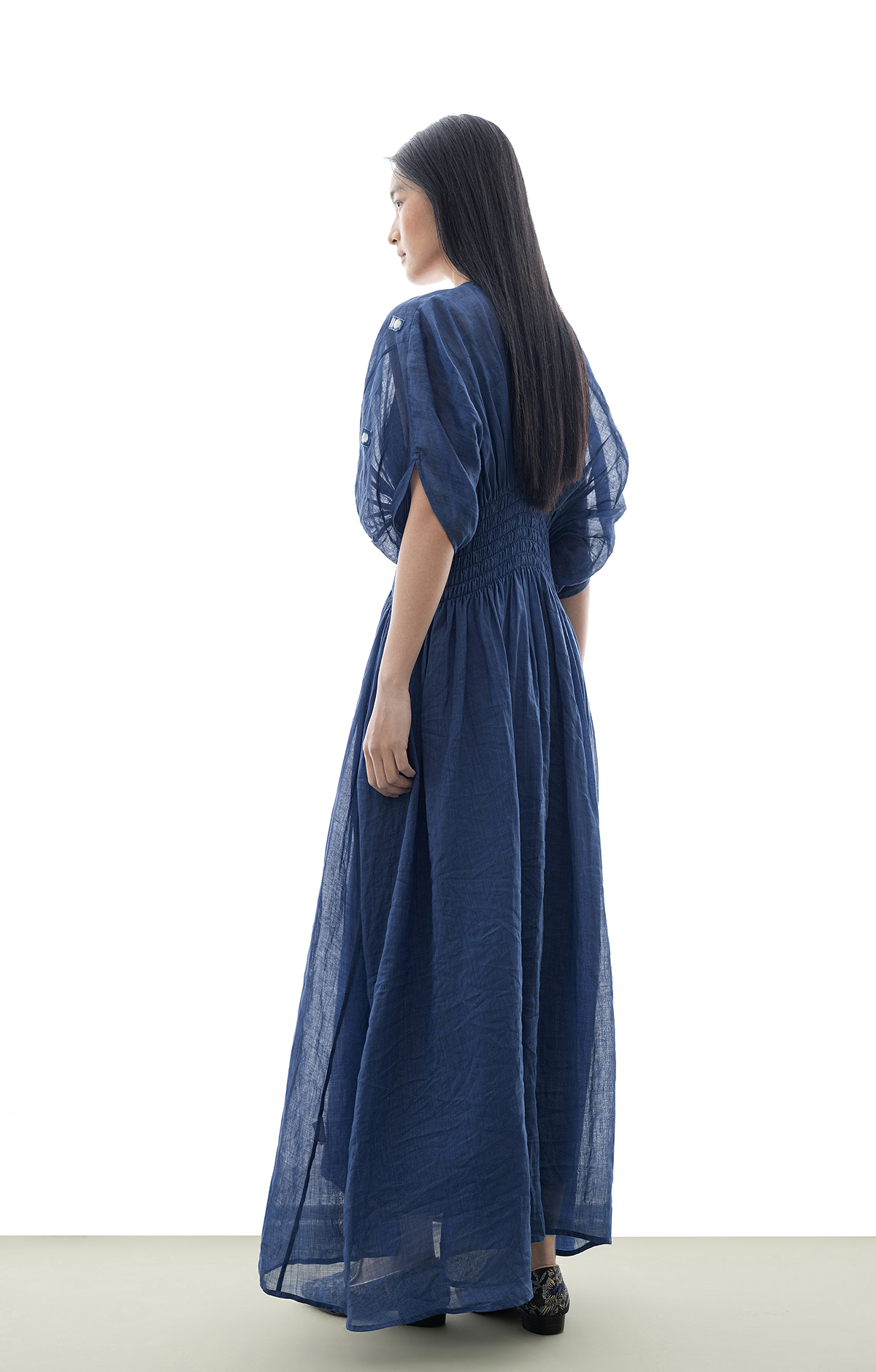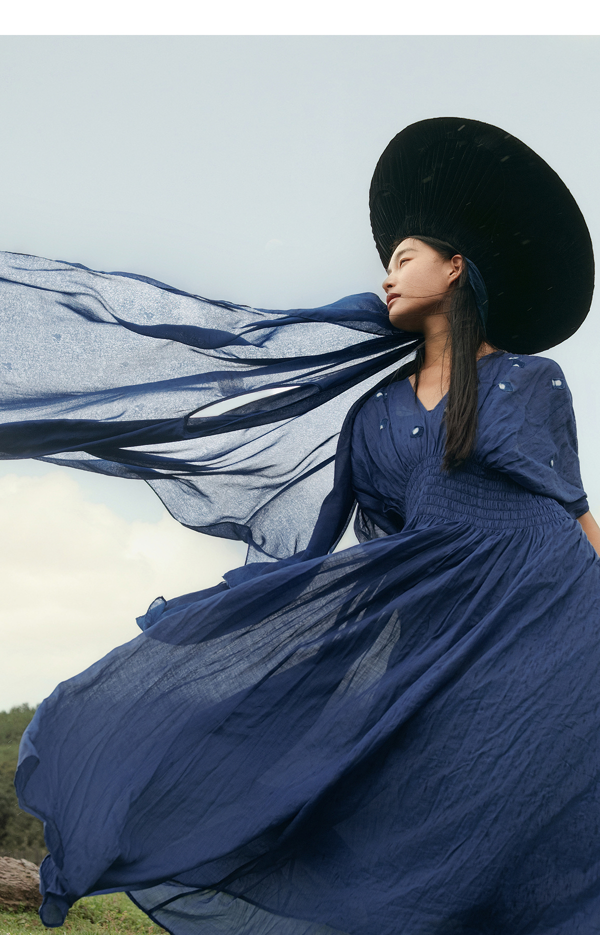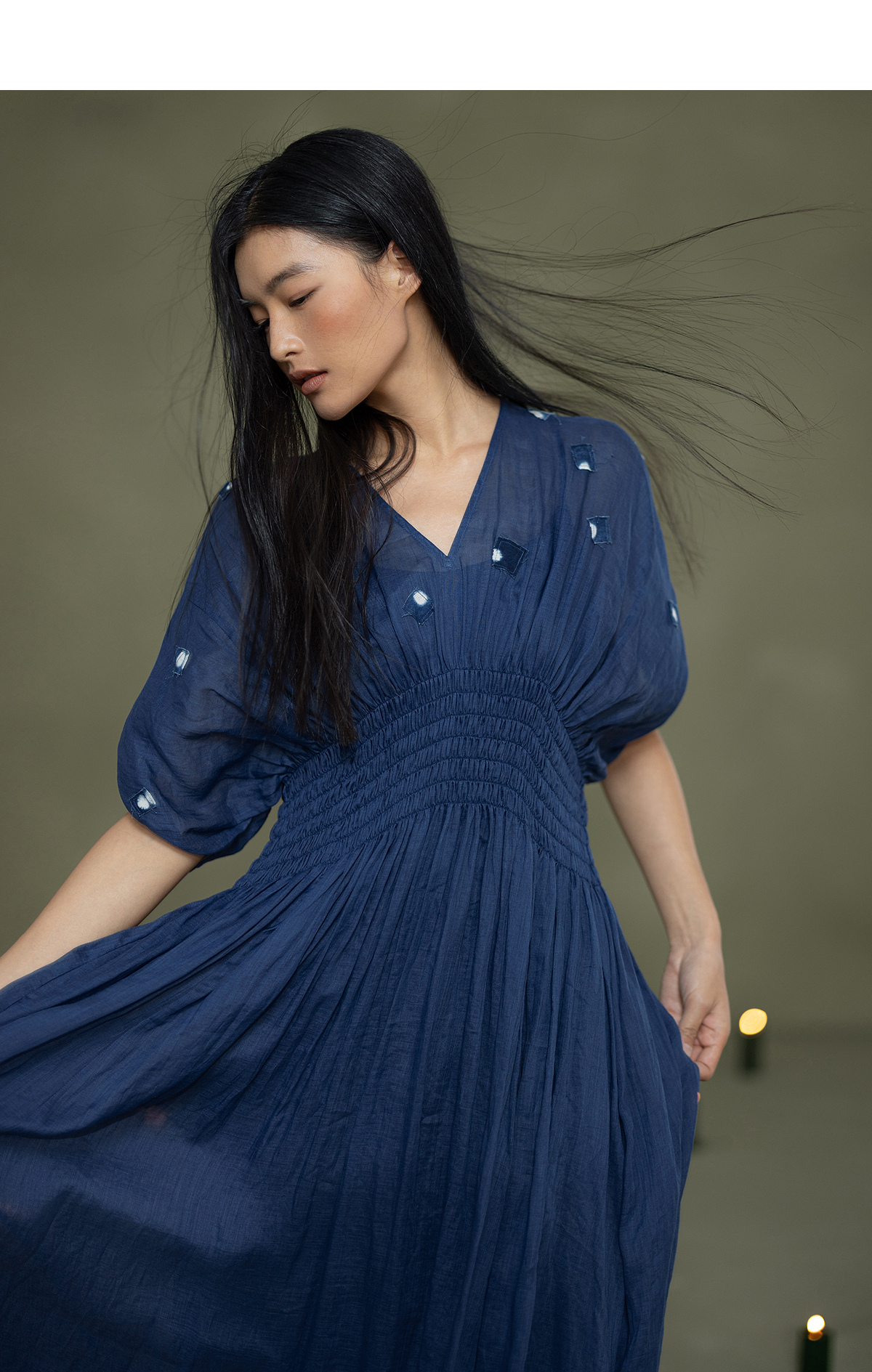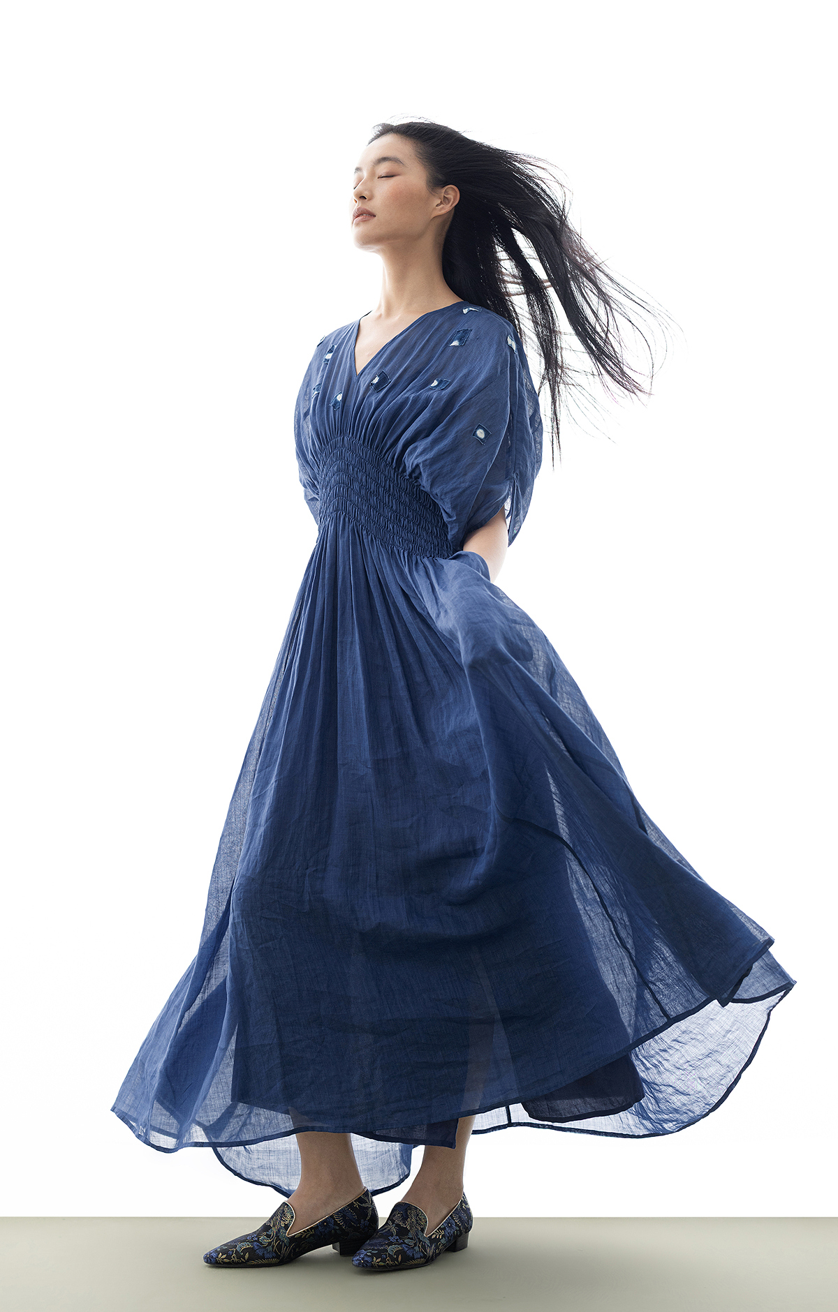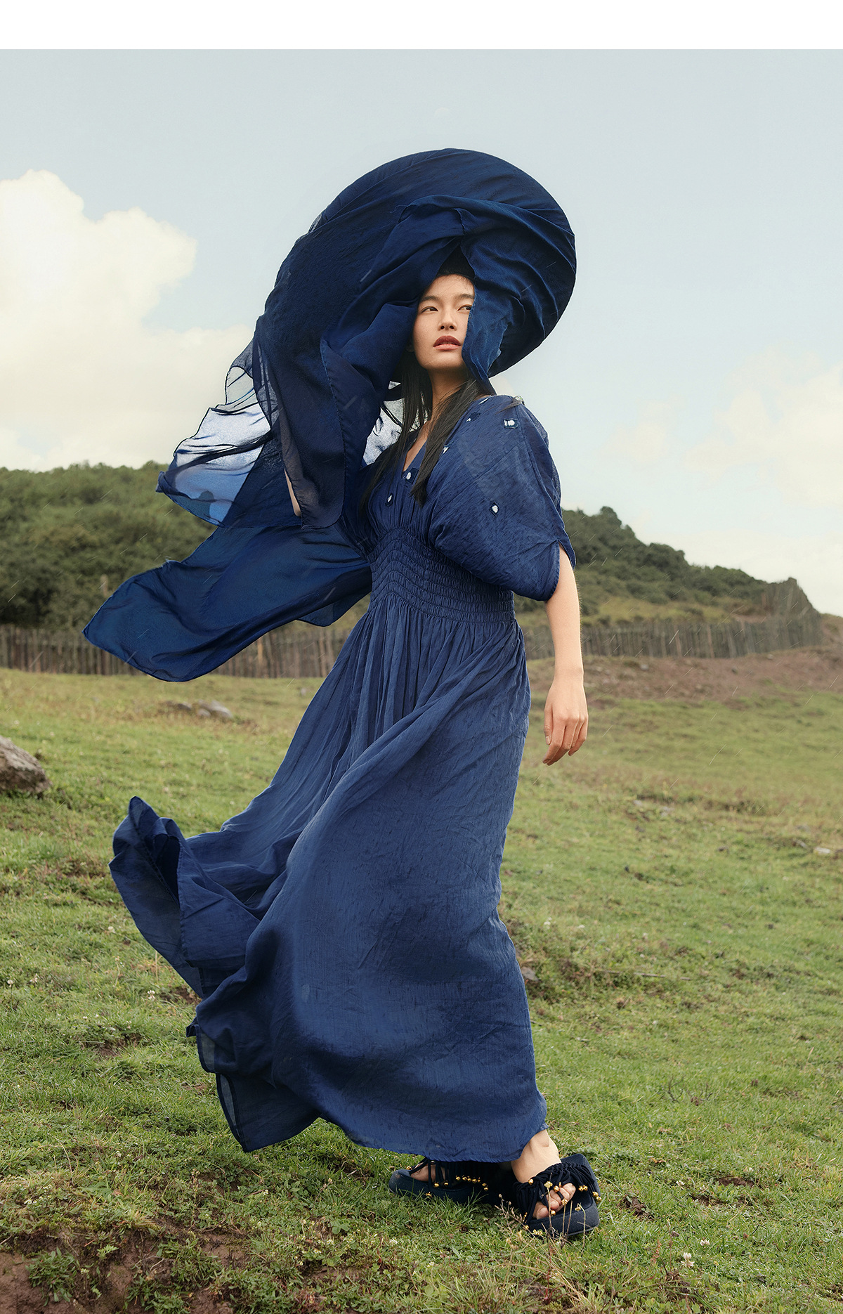 【林栖设计小店】植物染色|手工植物蓝苎麻宽松显瘦2026春新款扇形连衣裙1961021