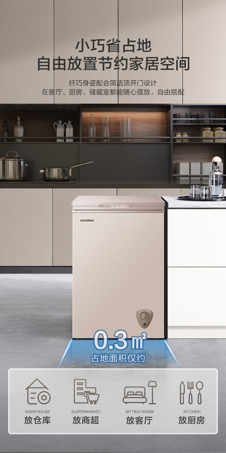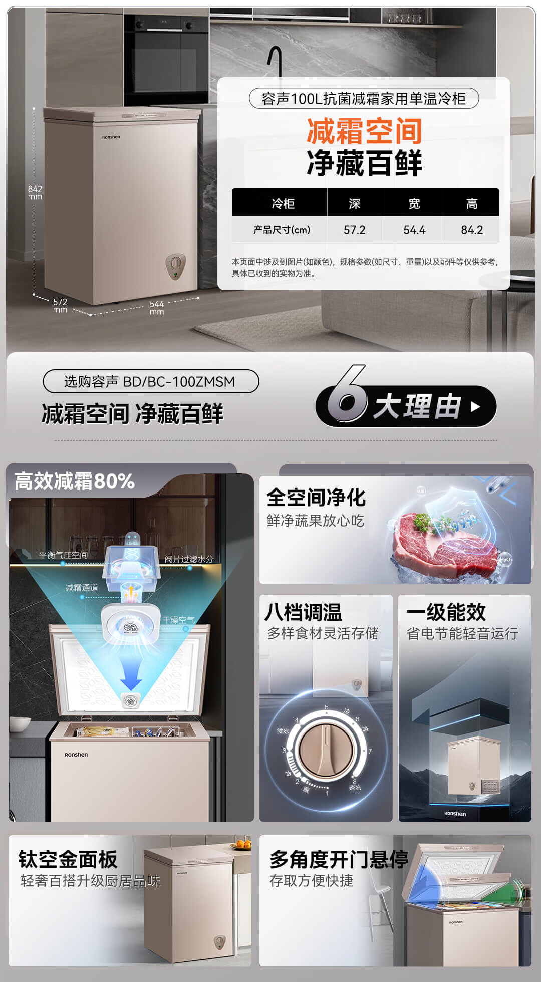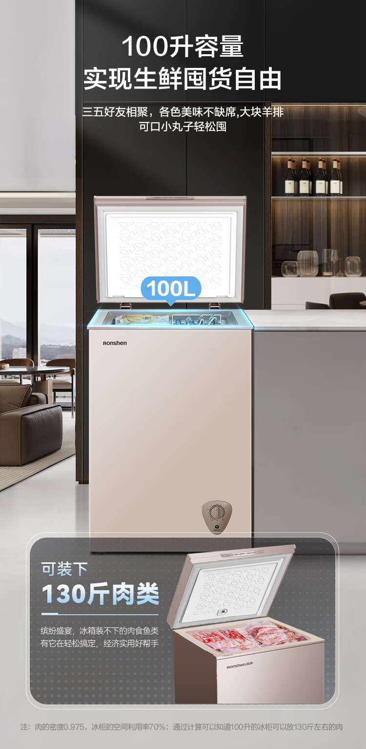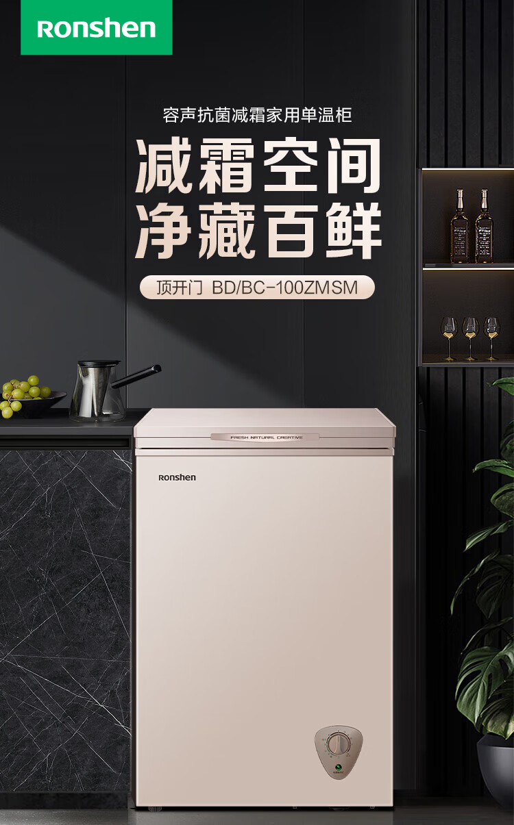 容声(Ronshen) 100升 小型冰柜 家用单温冷柜 一级能效 减霜80% 冷藏冷冻 BD/BC-100ZMSM
