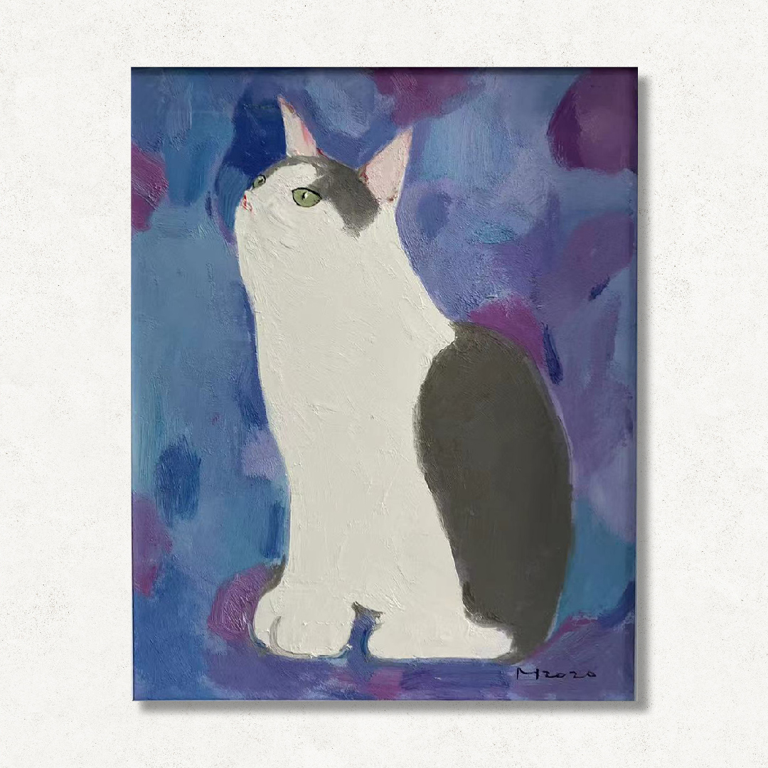 A19 孙洪敏《猫孩子》40*50CM 布面油画 手绘原作 已装框(白色木制)艺术家本人特供 仅有1张现货顺丰包邮