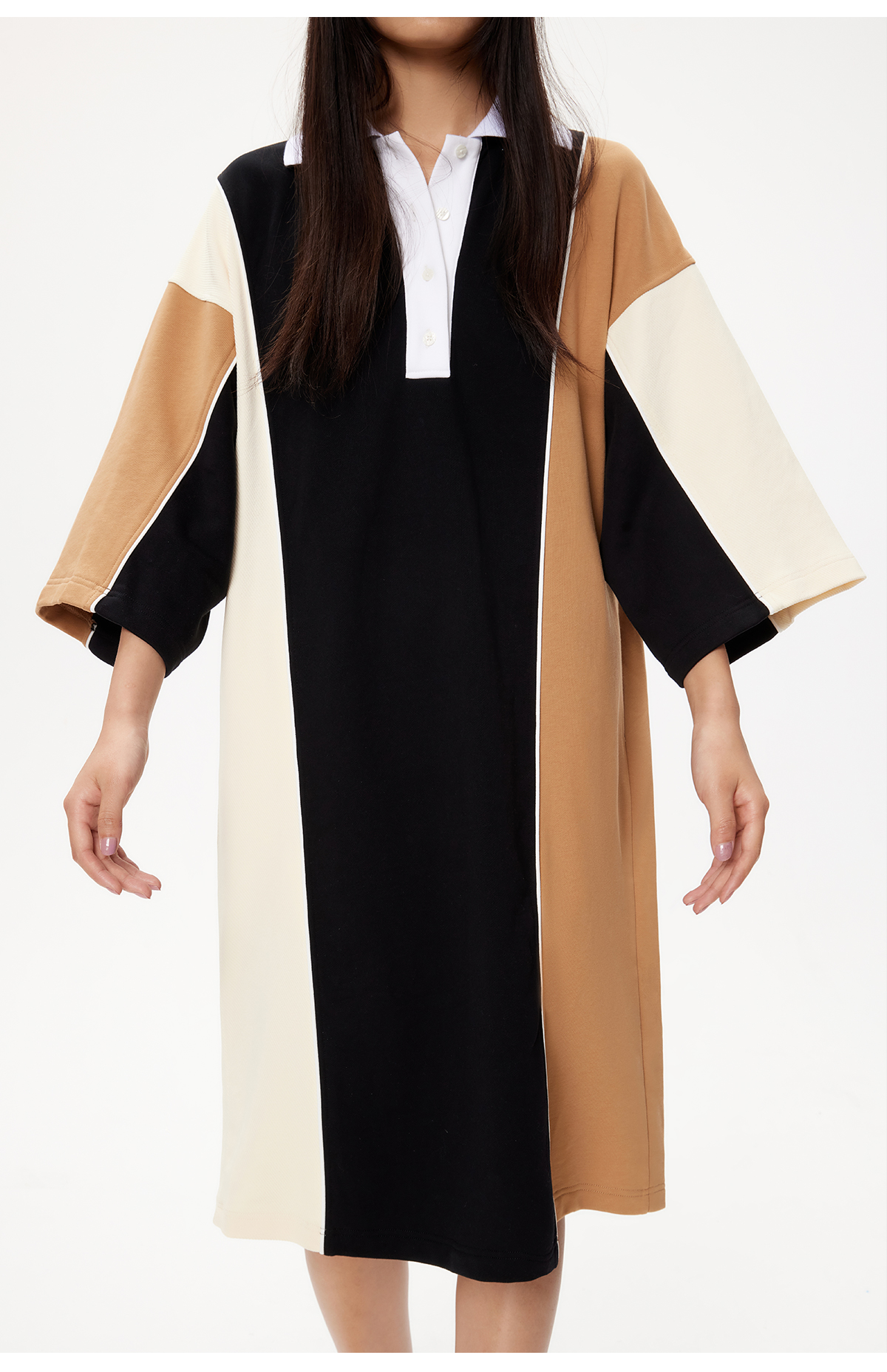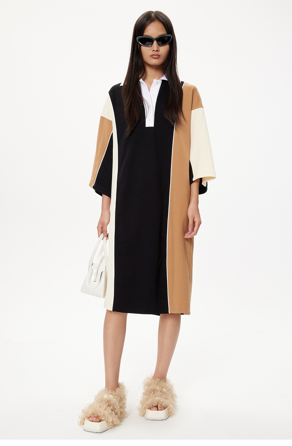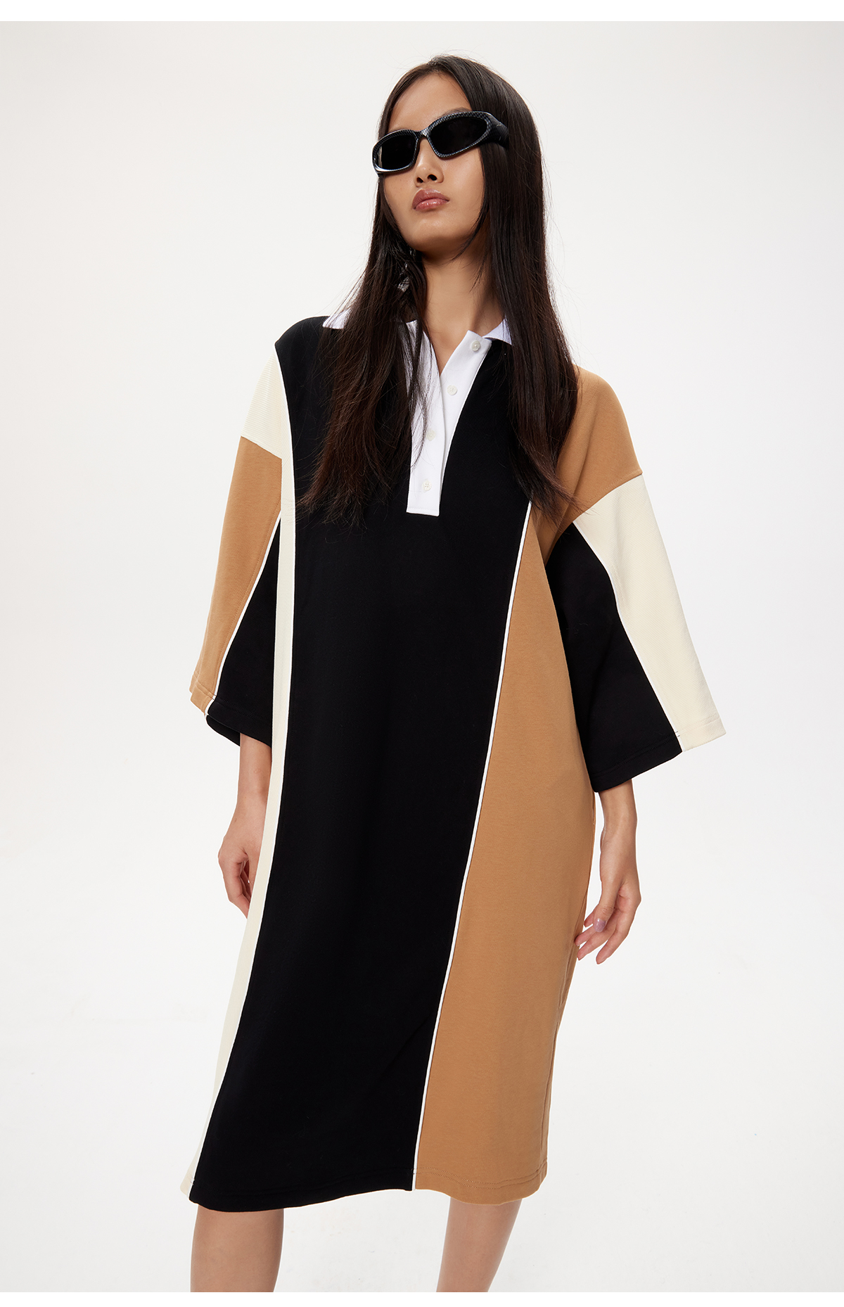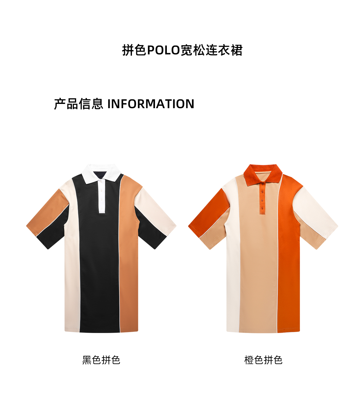 lost in echo设计师品牌高级不对称拼色POLO宽松休闲舒适连衣裙