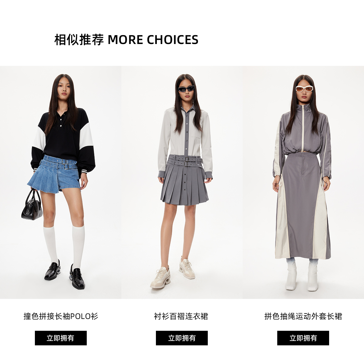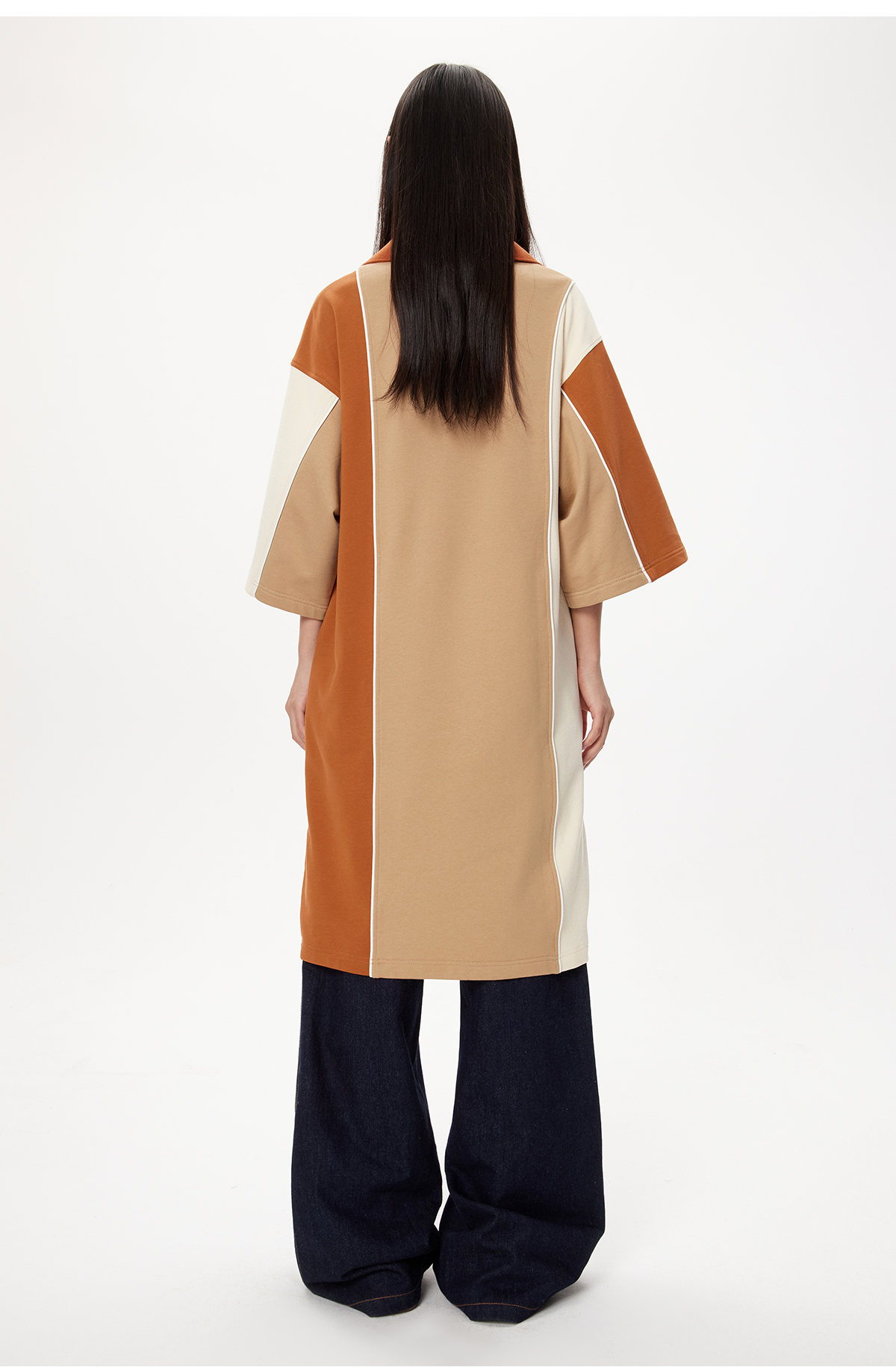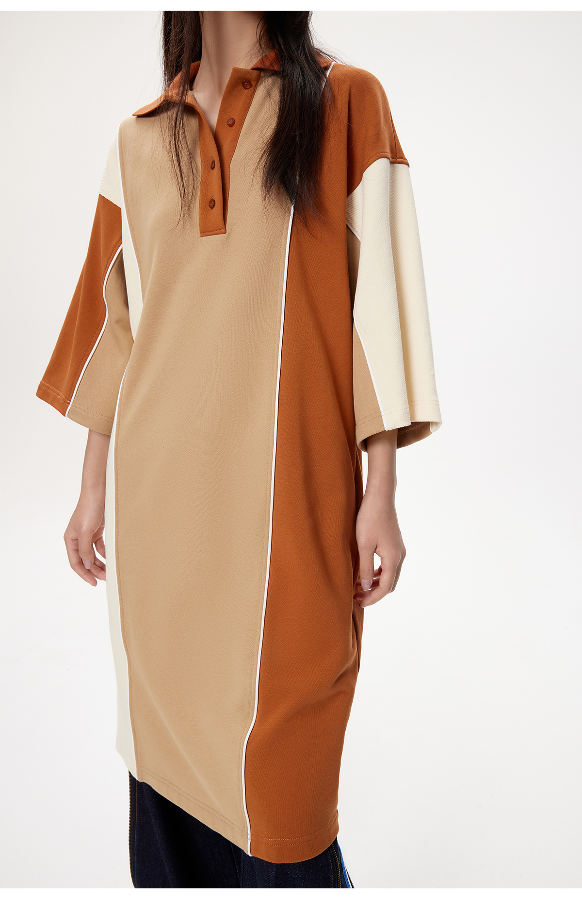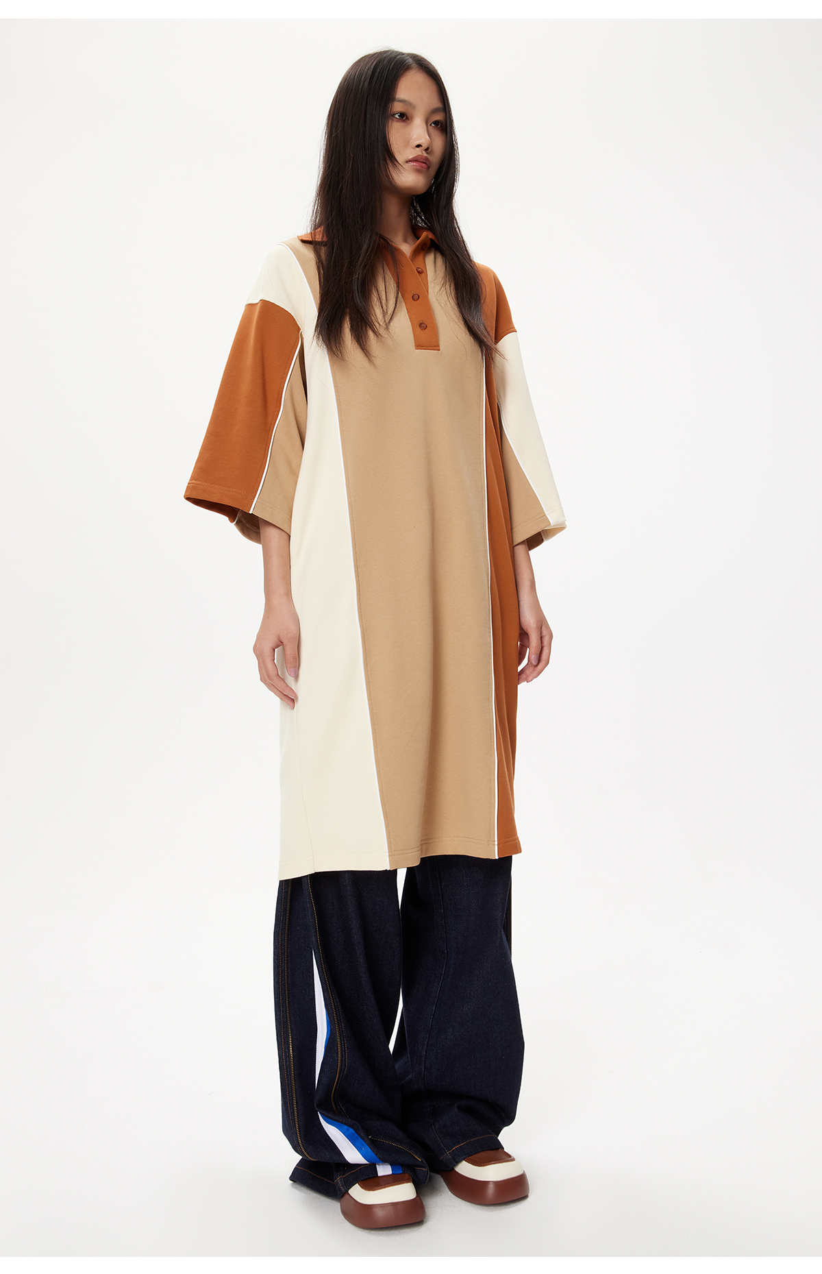 lost in echo设计师品牌高级不对称拼色POLO宽松休闲舒适连衣裙