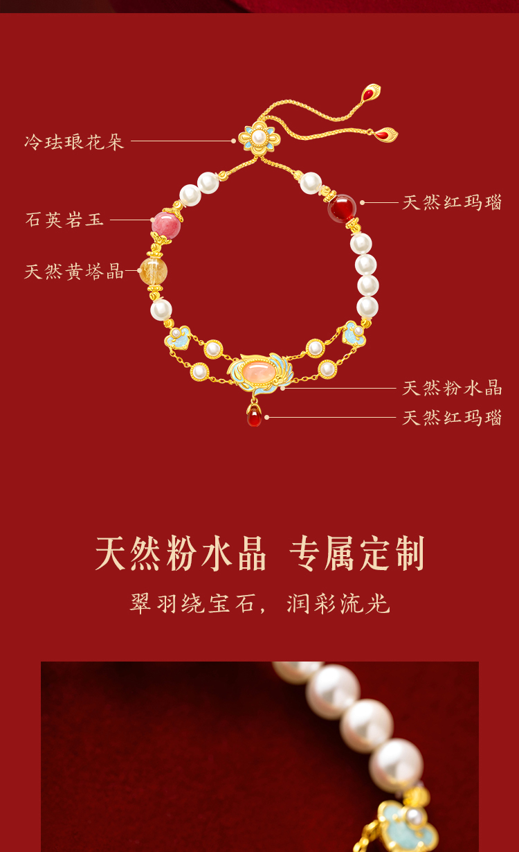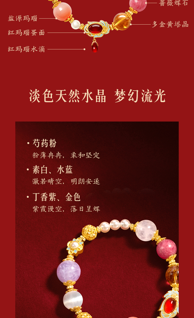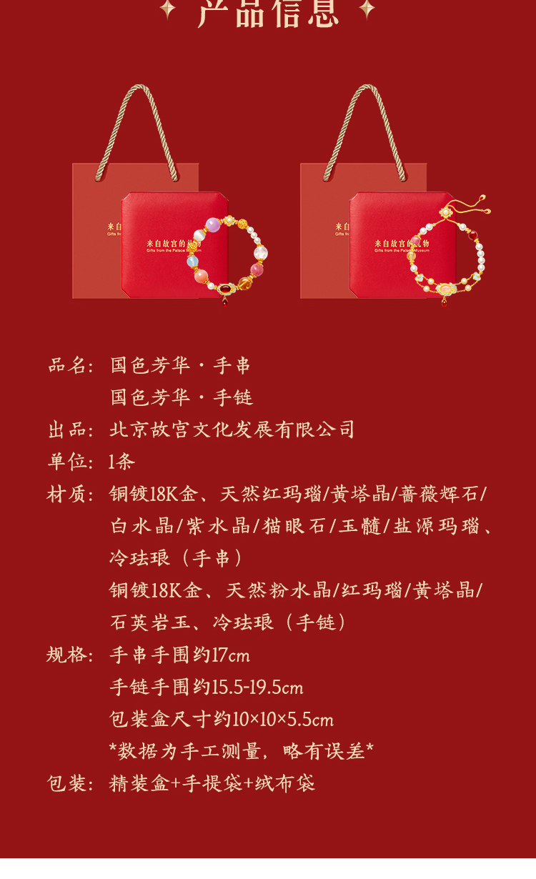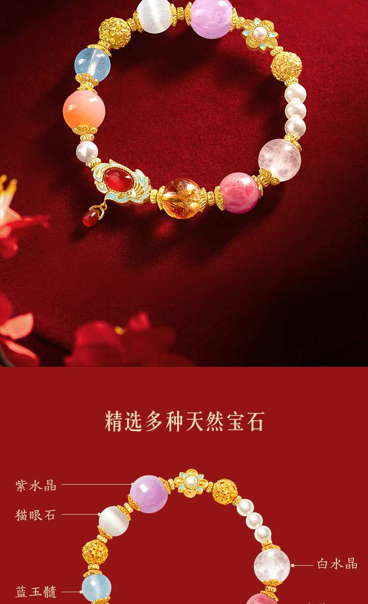 【故宫饰品】国色芳华多宝水晶手串文创手链新年本命年生日礼物女生