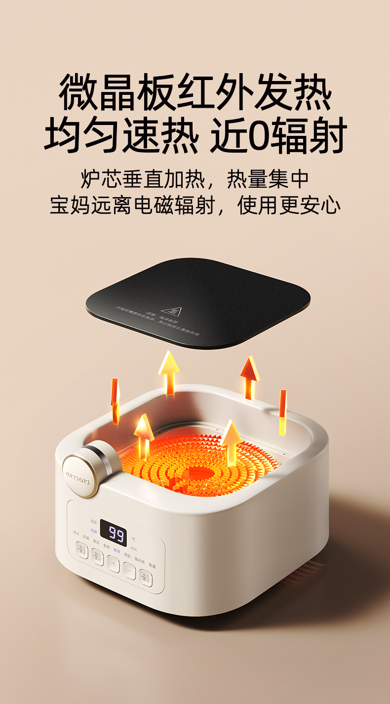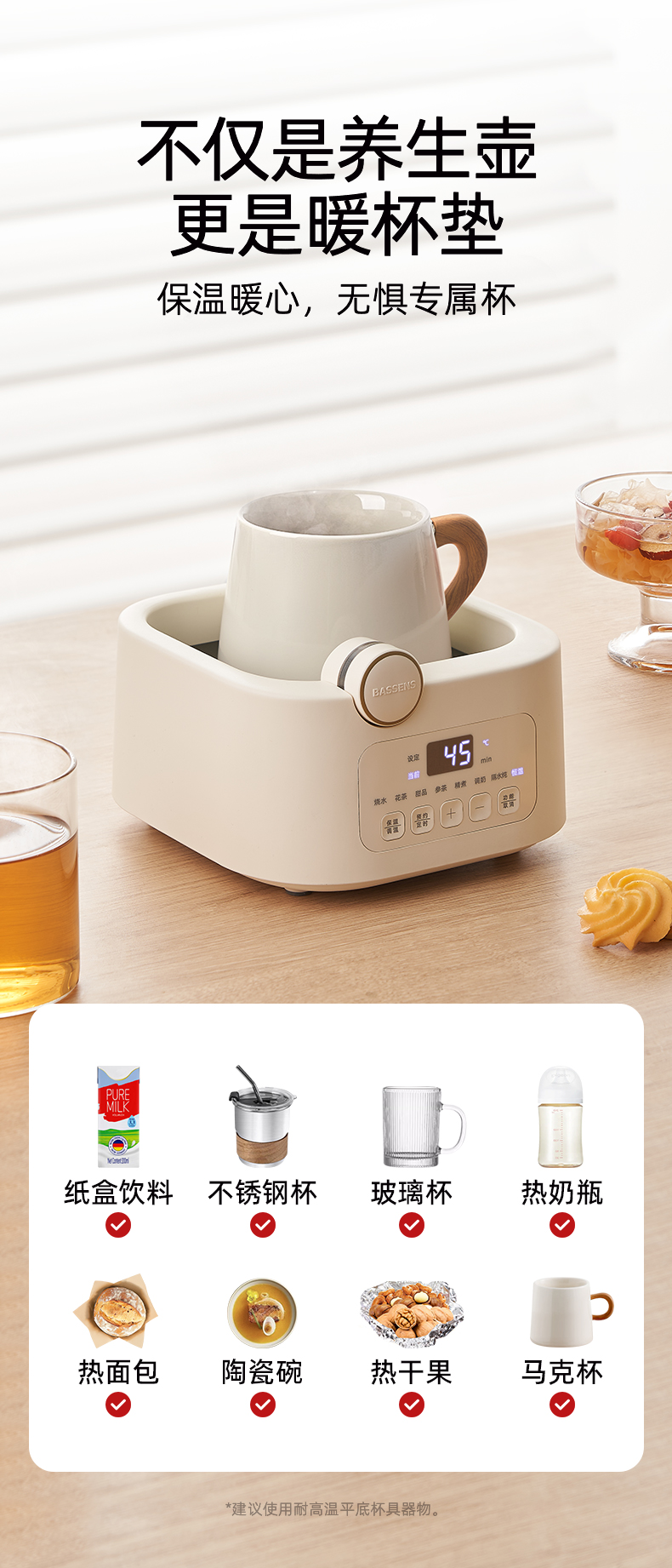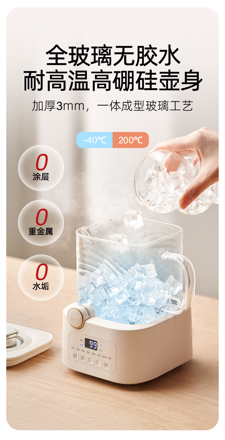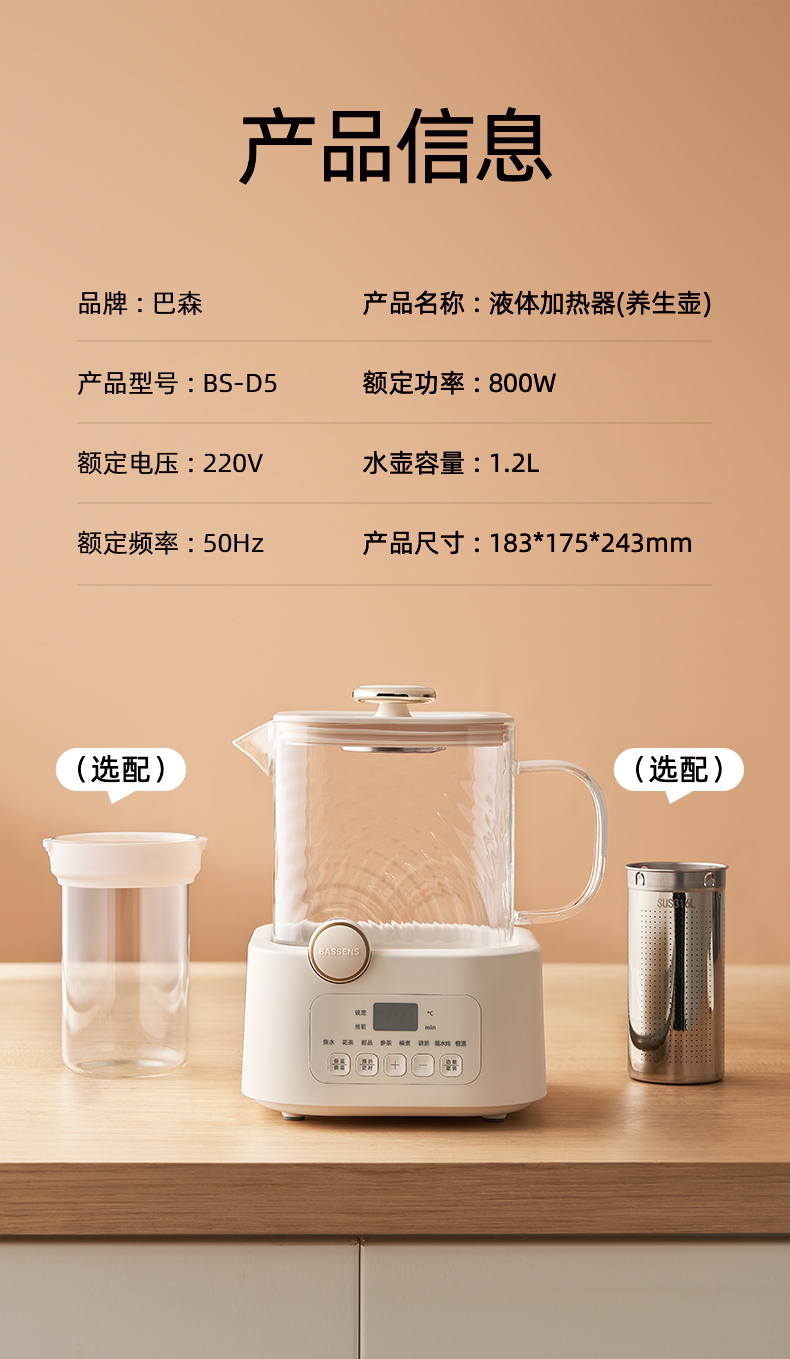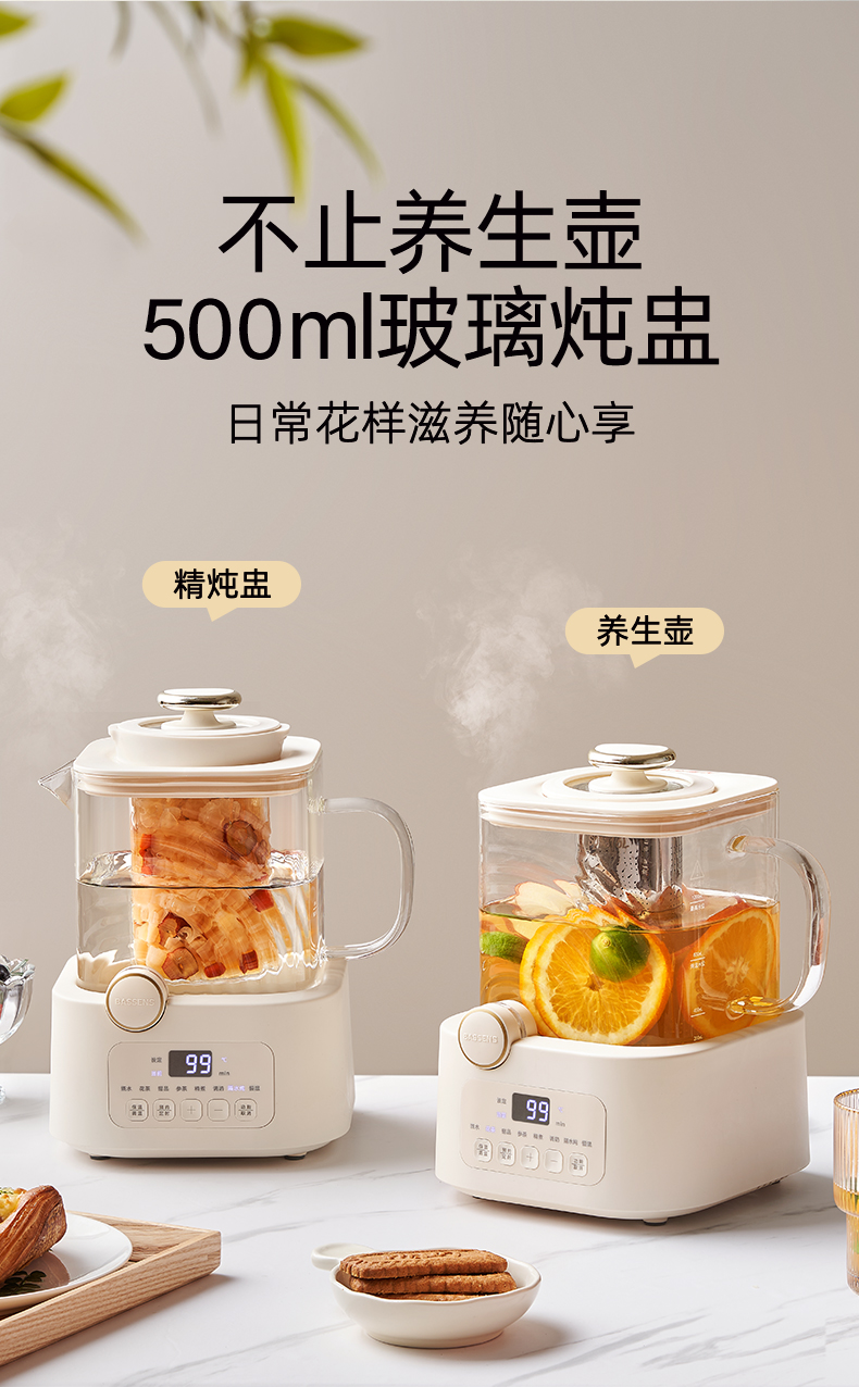 巴森小方炖养生壶1L全玻璃多功能多段炖煮24小时智能预约精准温控不干烧巴森小方炖养生壶