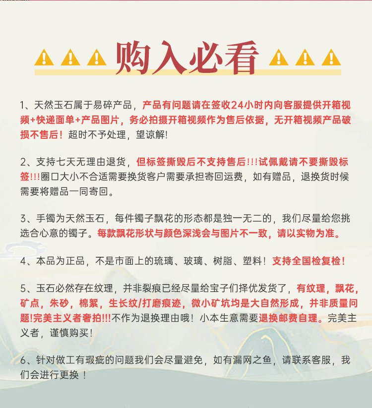【售后说明】支持7天无理由退货(不得影响二次销售),产品有质量问题请在签收24小时内,开箱视频+快递面单产品图片按售后处理,超时不予处理望谅解!