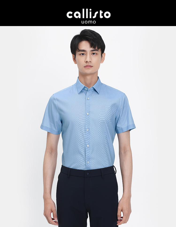 callisto蓝色丝绵混纺意式领衬衫 SRSTS048C