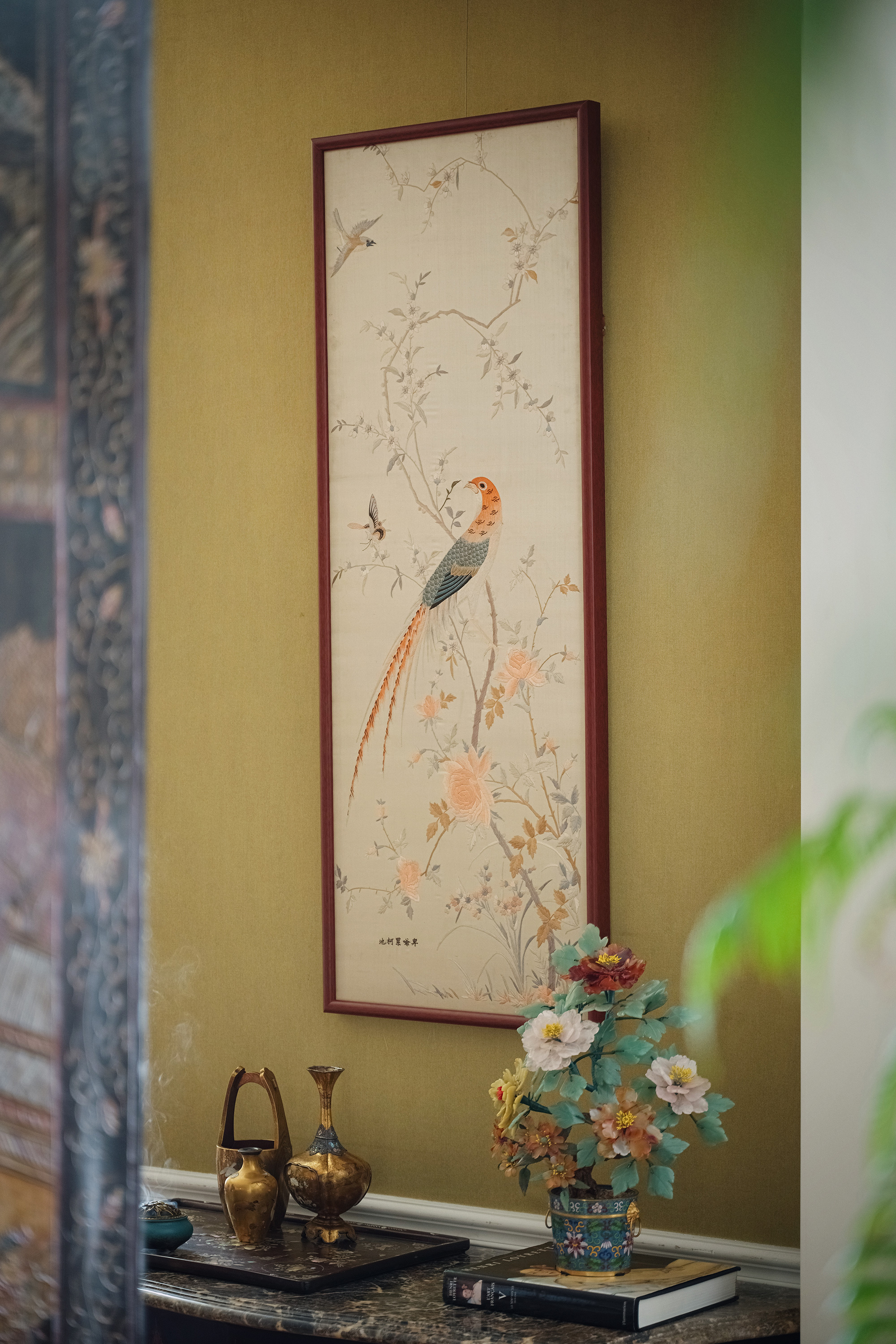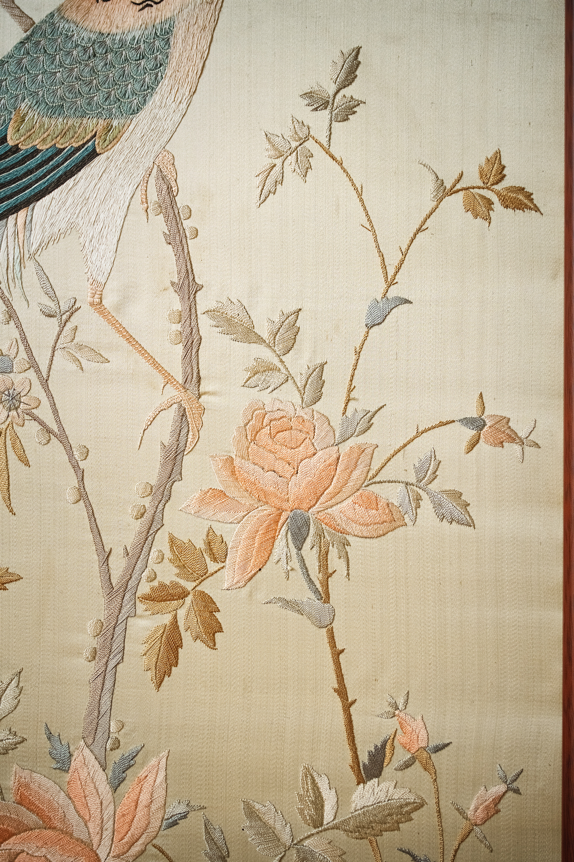 20世纪初中国出品「锦上添花」传统东方花鸟主题粤绣挂屏