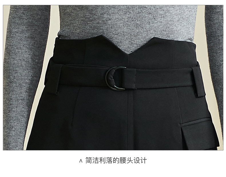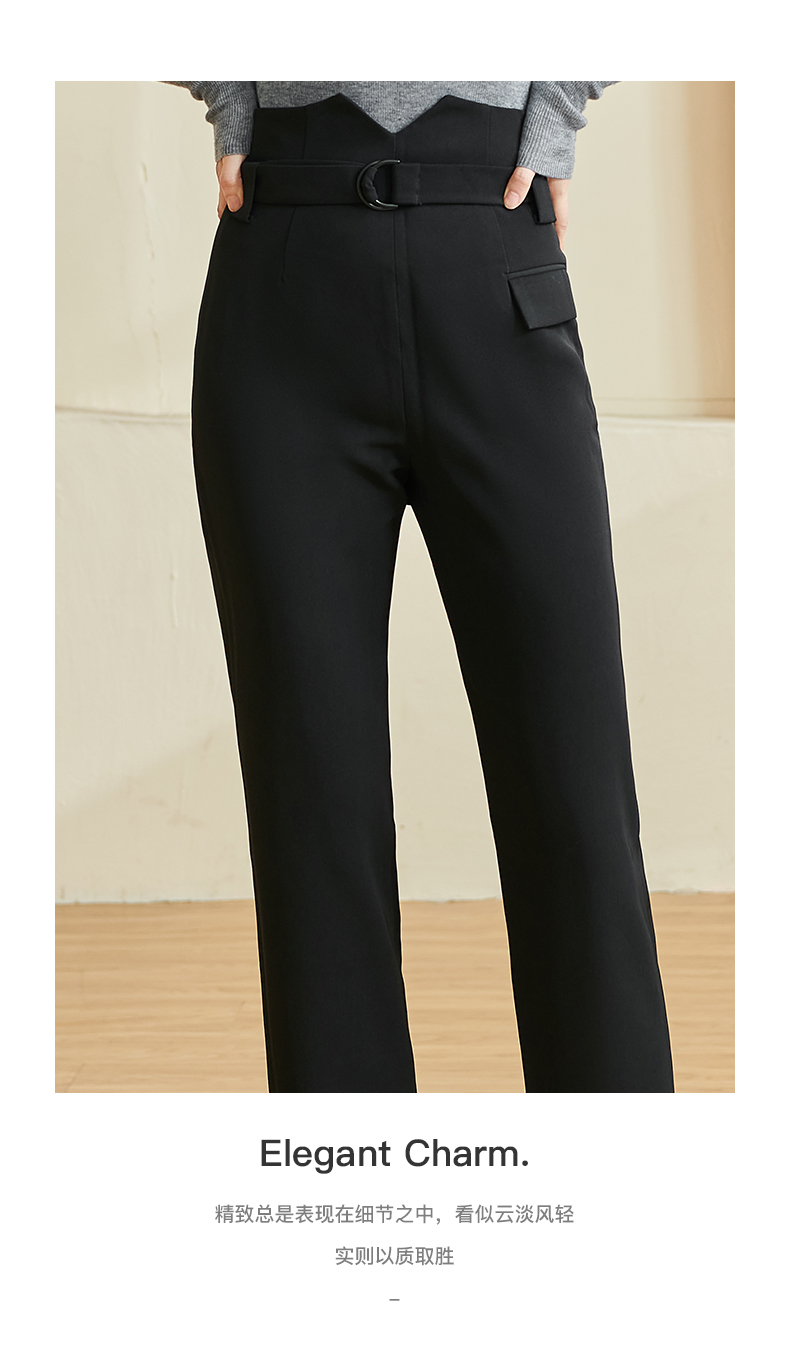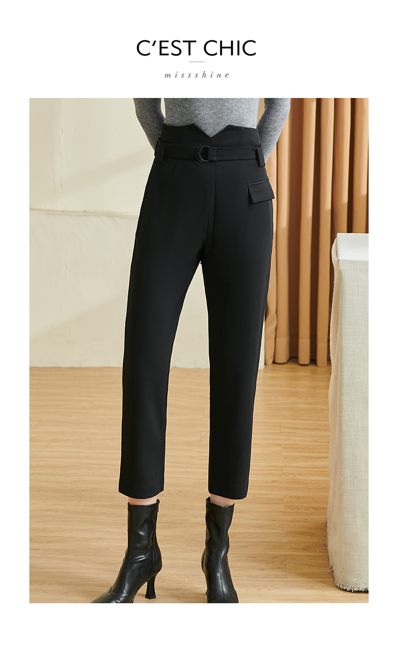 剩S/XL 米思阳2024秋季新款百搭简约黑色休闲裤腰带修身小个子裤子女2552