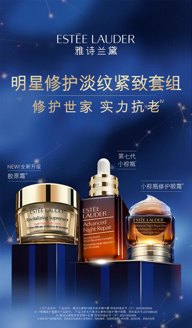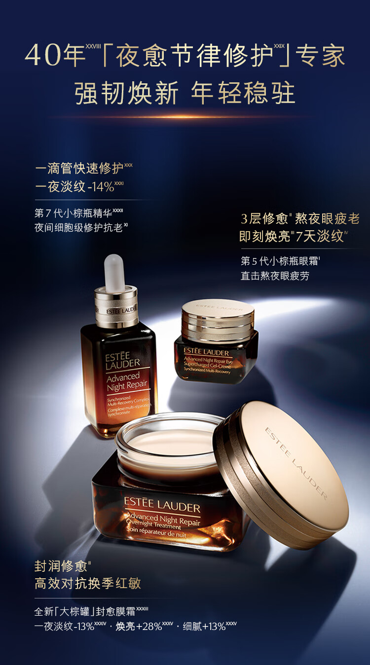 【限时加赠精粹水30ml*2】Estee Lauder 雅诗兰黛 挚爱三件套(小棕瓶100ml+面霜清爽型75ml+抗蓝光眼霜15ml)