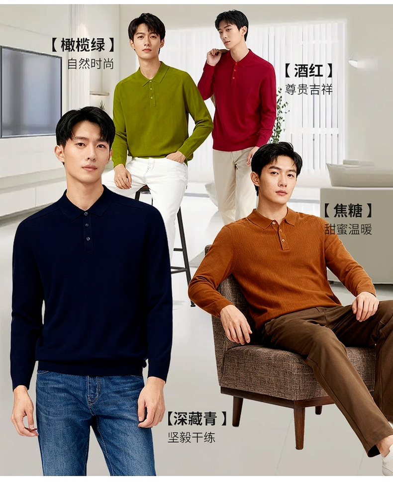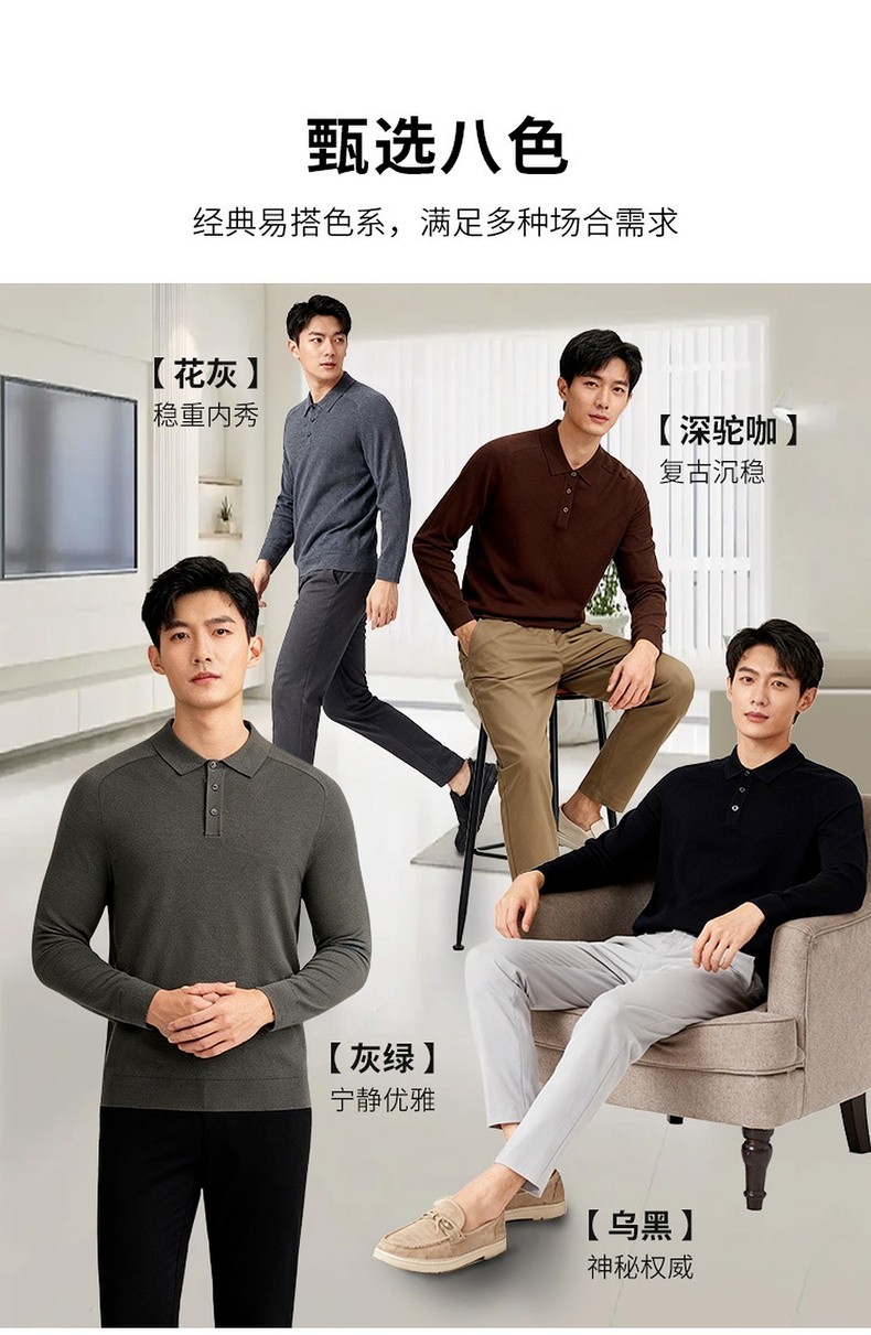 【含绵羊毛】圣得西男士亲肤柔软羊毛混纺高密针织衫2025秋季新款百搭舒适毛衣
