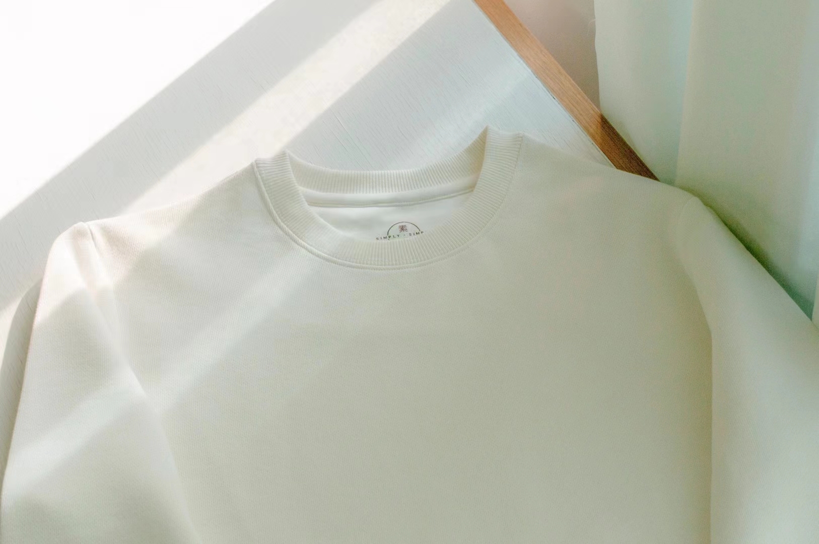 双罗纹领口/袖口,松紧适中。