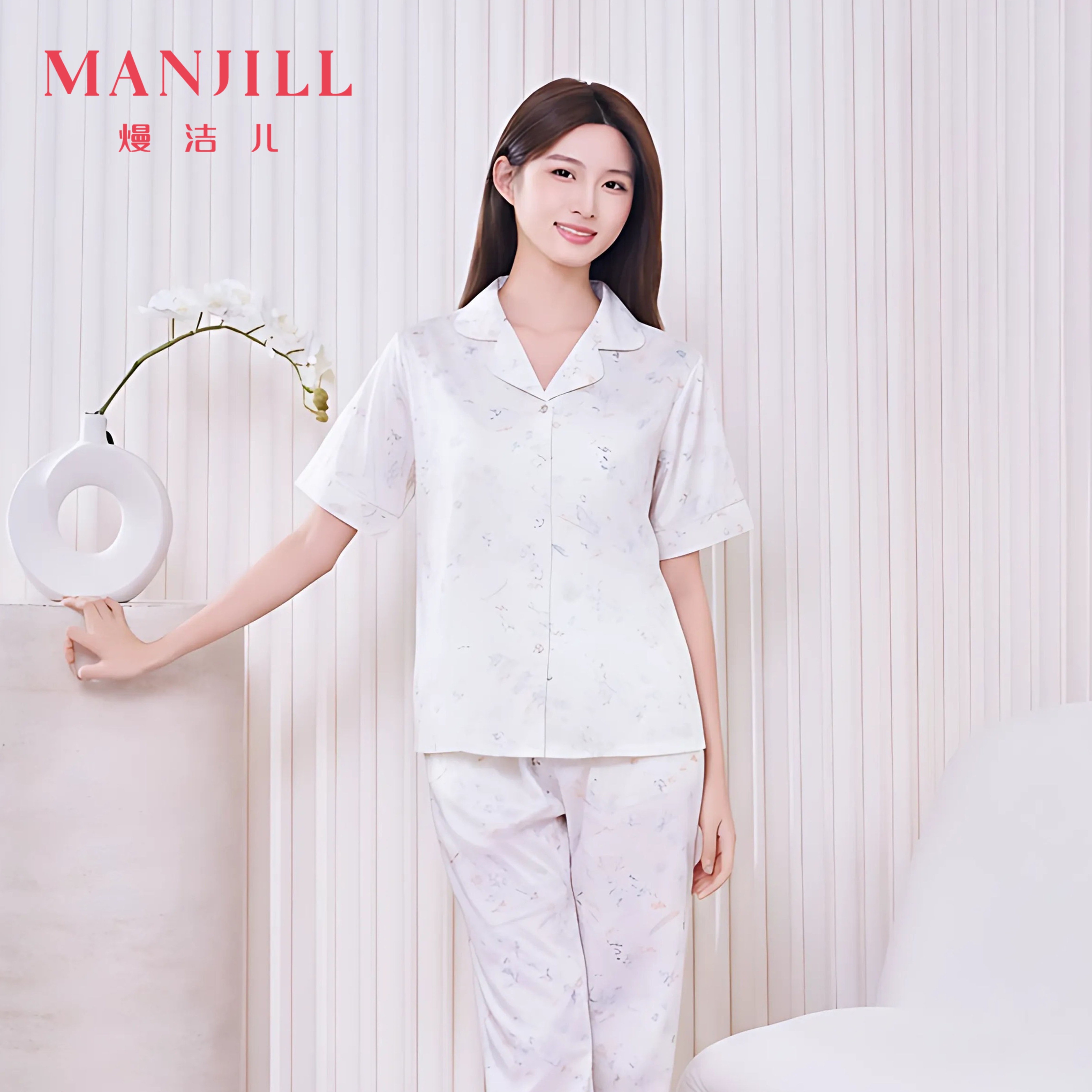 【商场同款】熳洁儿 冰雪丝家居服开衫短袖九分裤套装素雅印花26203105