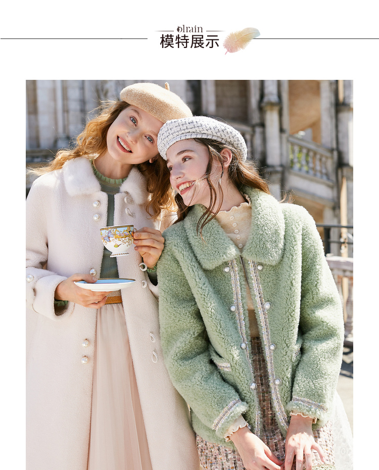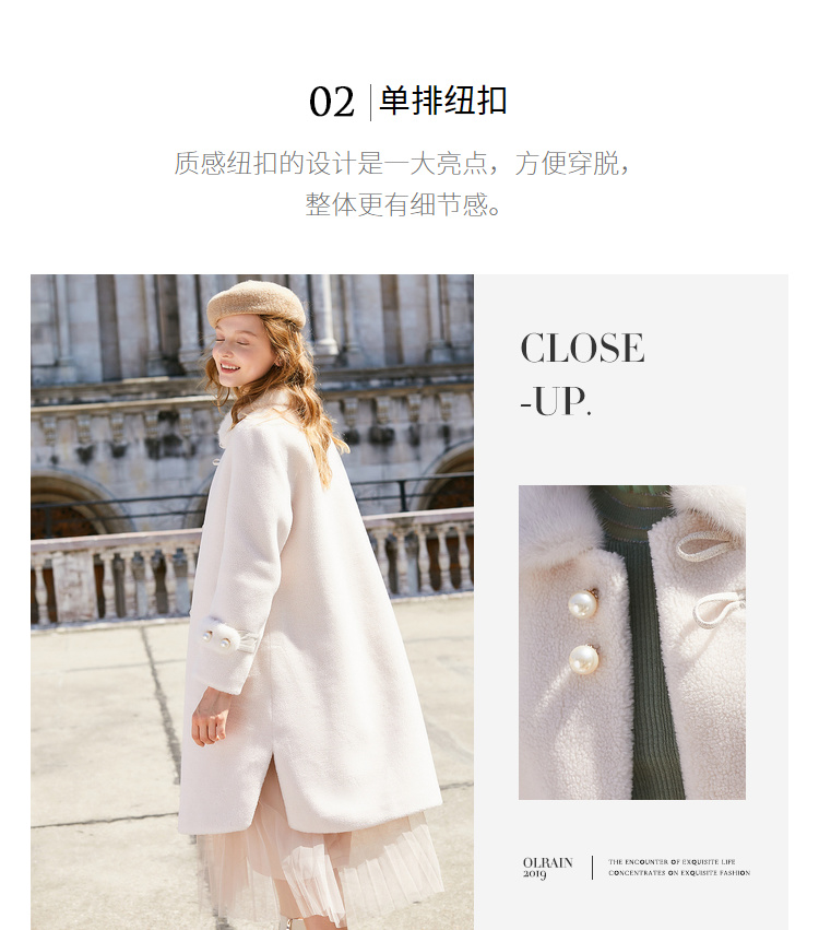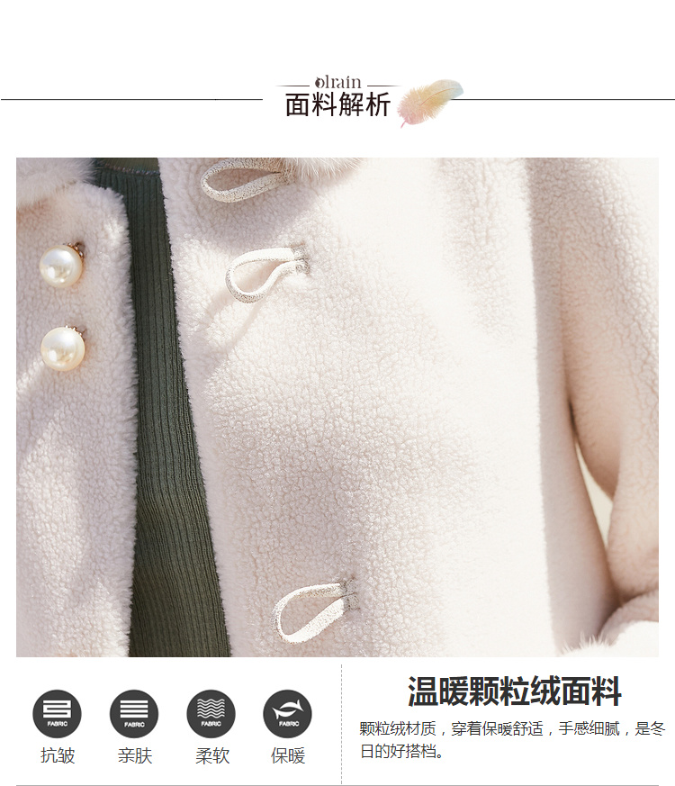 欧芮儿2019秋冬新款宽松百搭皮草一体颗摇粒绒羊羔毛外套女中长款