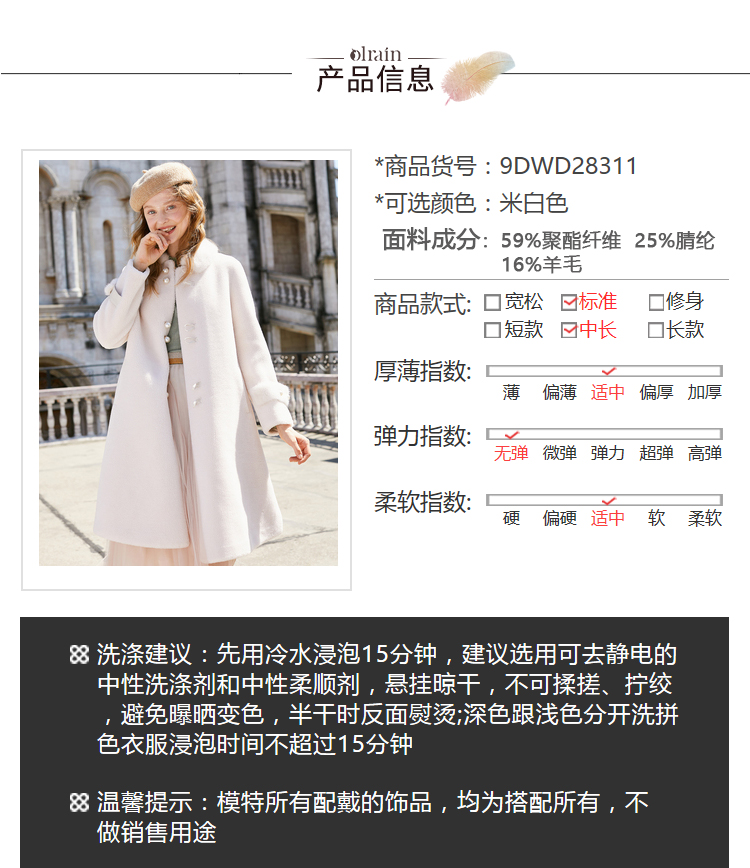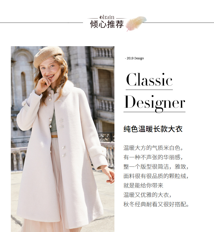 “精致”是欧芮儿olrain品牌文化的核心,欧芮儿认为,精致的女人,不但要外在动人,更要内在迷人,内外兼修,有魅力、有气质、有内涵,自信而不自傲,优雅而不矫揉,自有万种风情而不轻浮,更不故作矜持。
