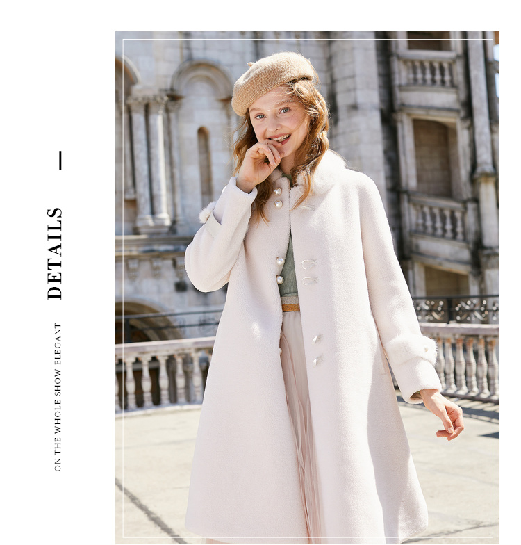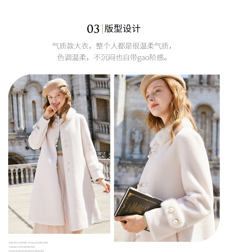 欧芮儿貉子毛领毛呢外套女中长款呢子大衣