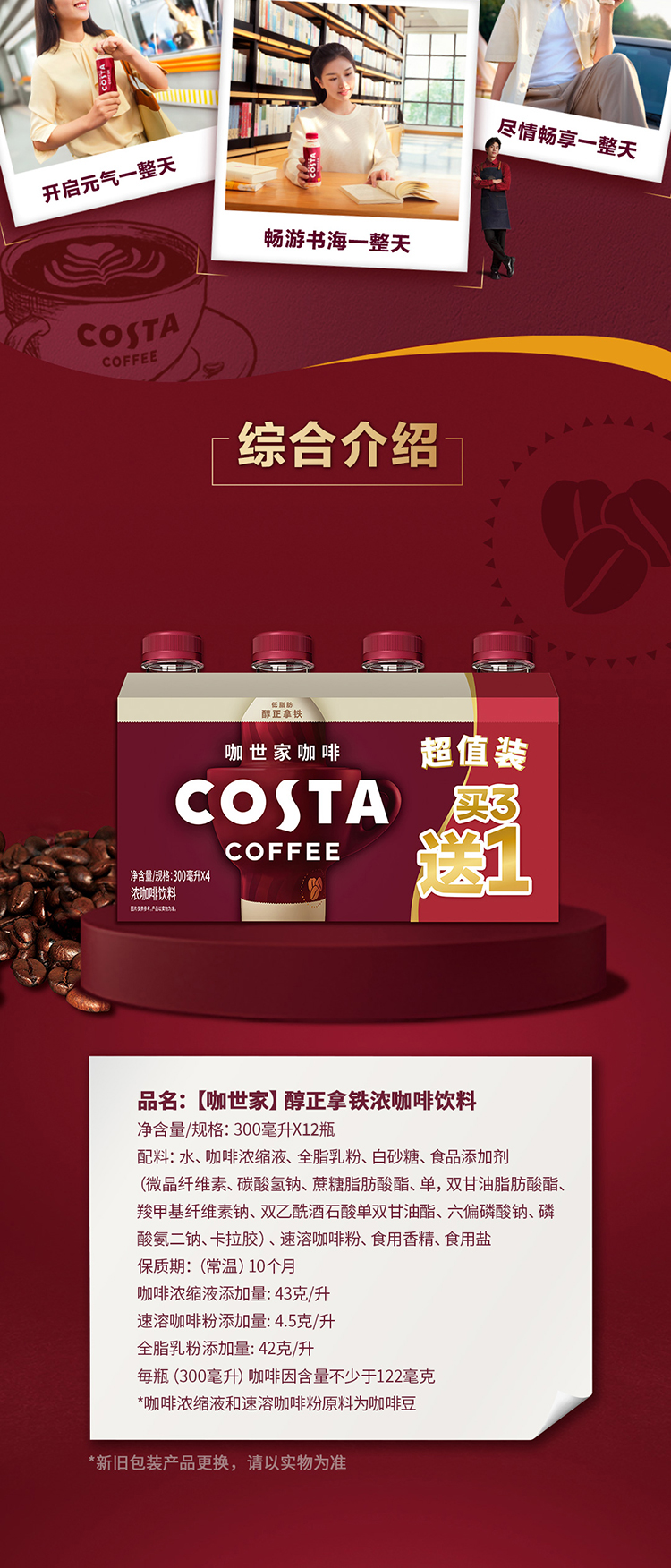 可口可乐 COSTA/咖世家 拿铁 咖啡 300ml*15瓶 即饮 咖啡 醇正 包邮