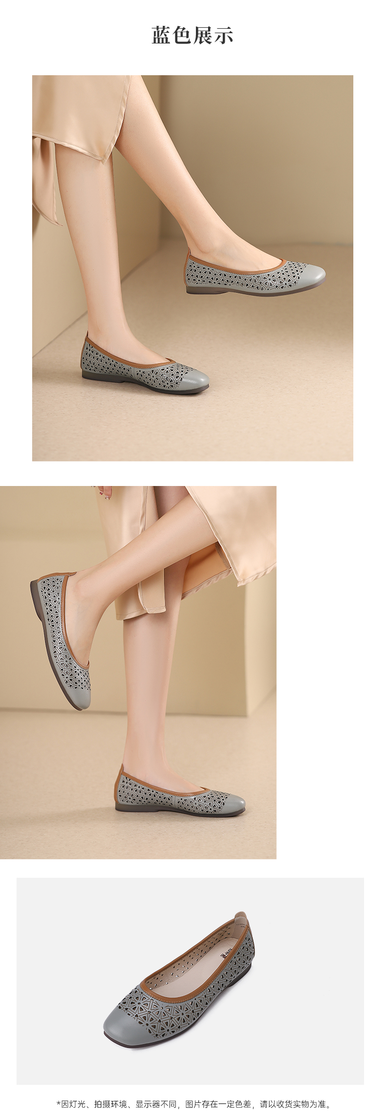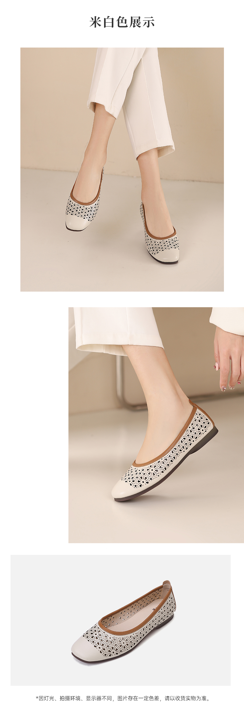 西村名物2023夏季新款简约羊皮软底洞洞鞋休闲通勤镂空单鞋13371