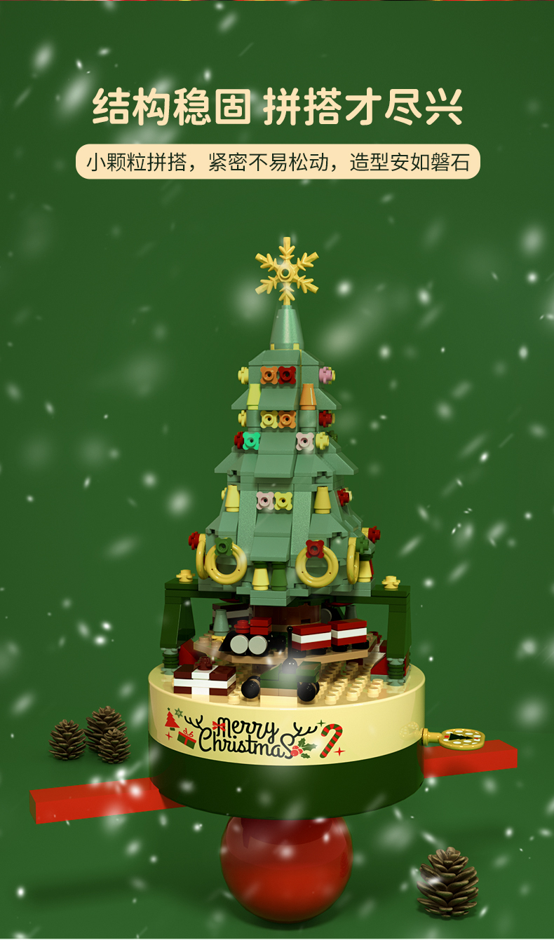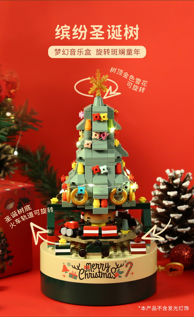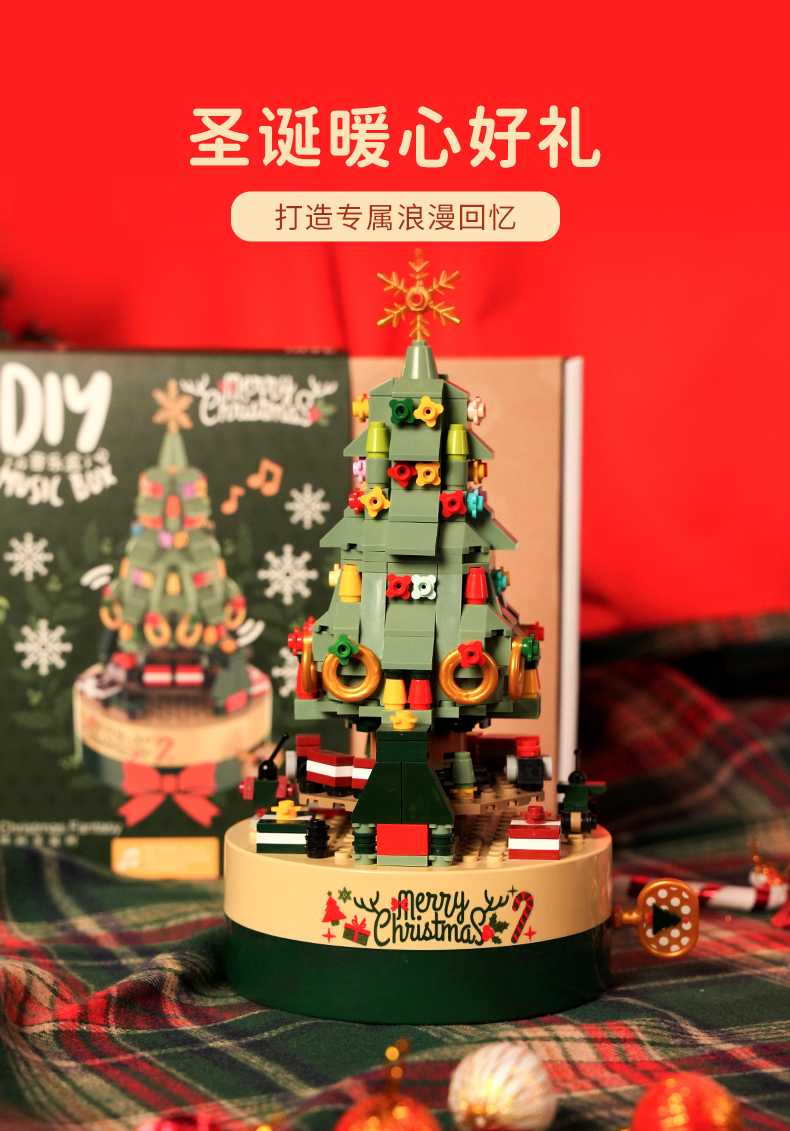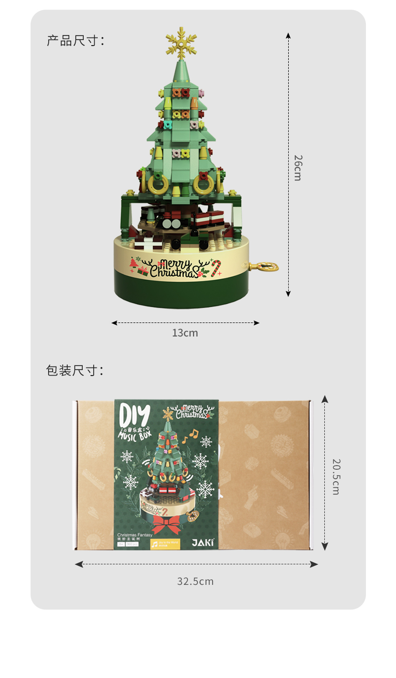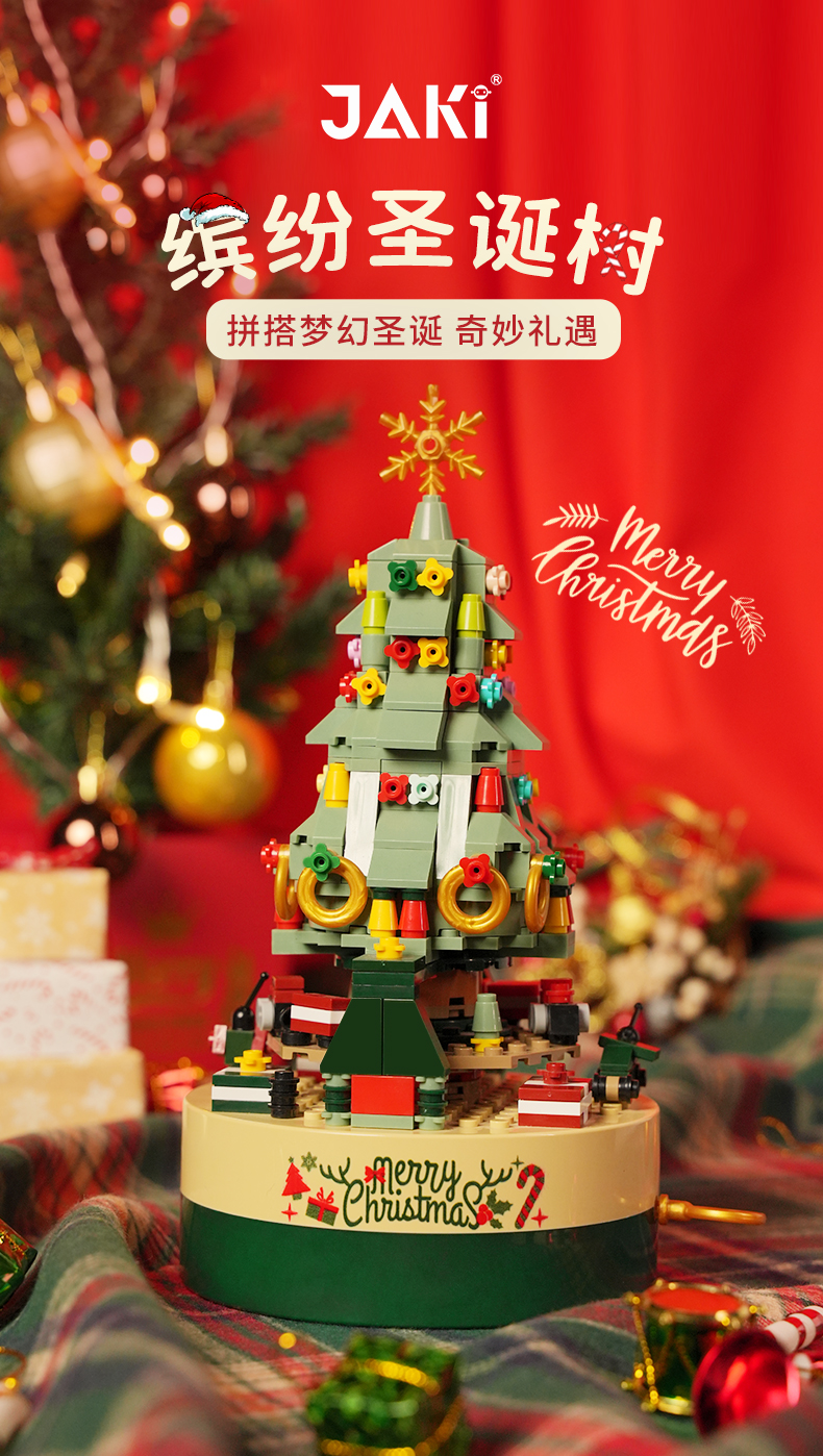 佳奇jaki 缤纷圣诞树梦幻音乐盒积木 圣诞暖心好礼