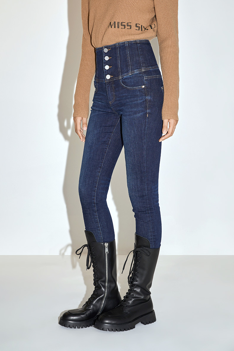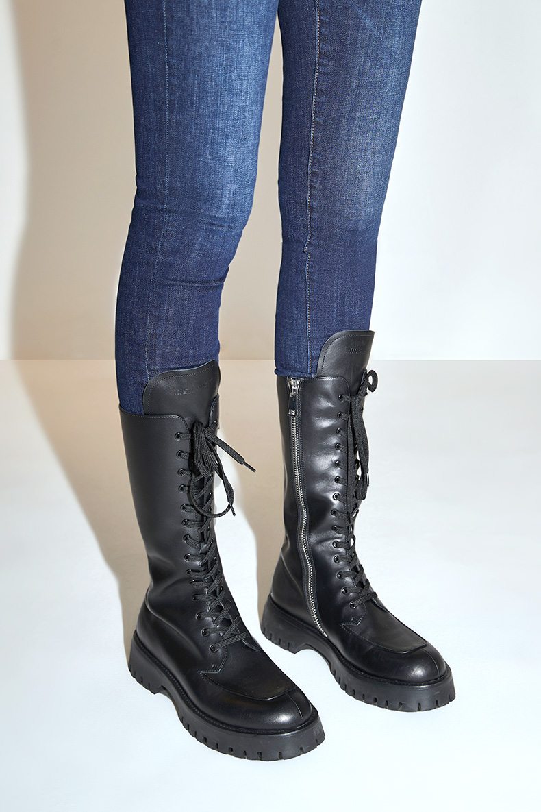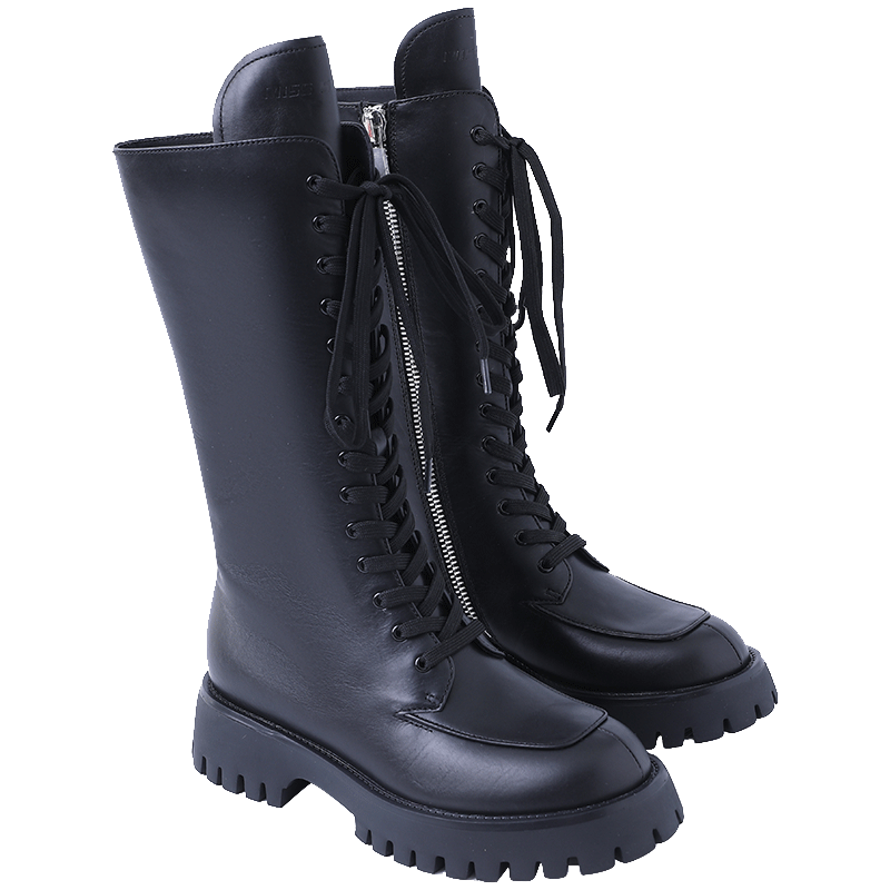 [江疏影同款]Miss Sixty2020冬季新款中筒厚底绑带真皮马丁靴子604QJ85800R0