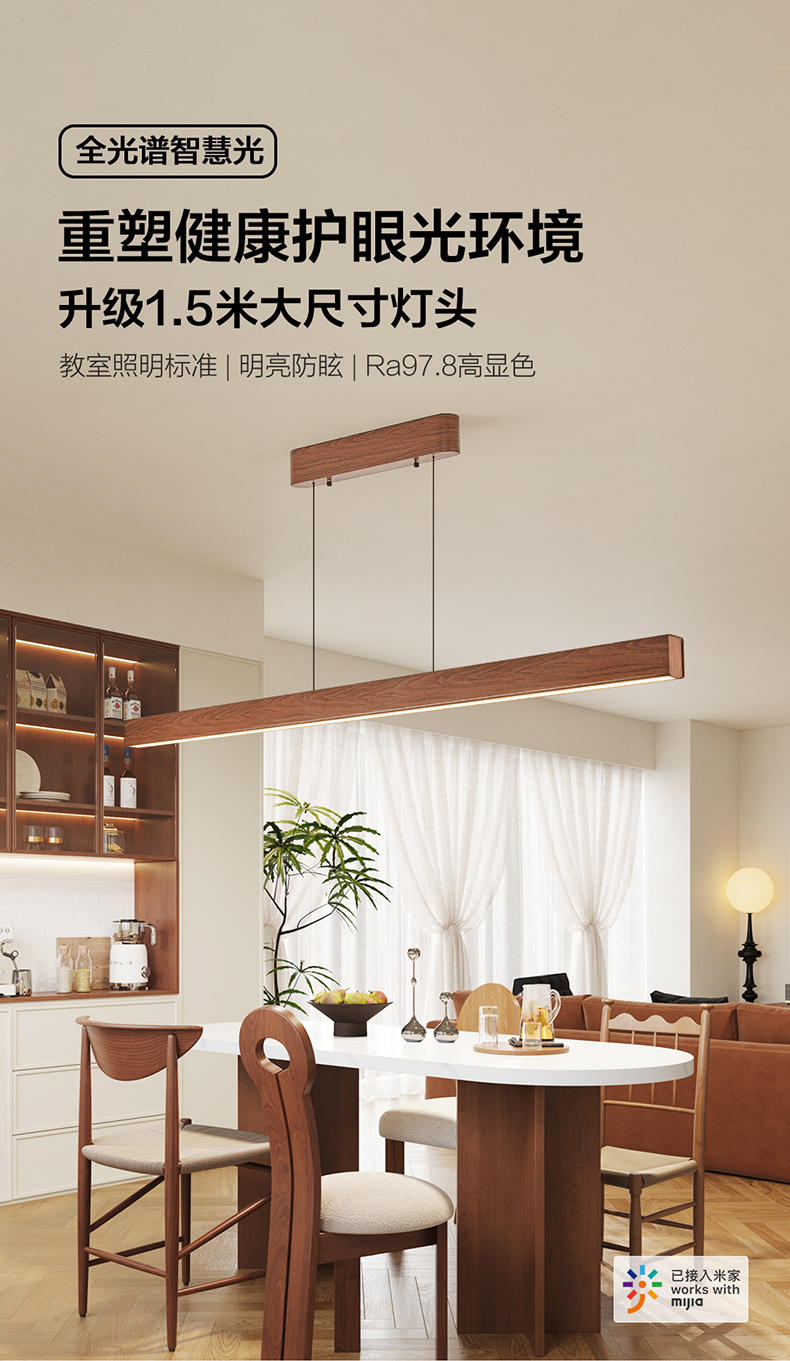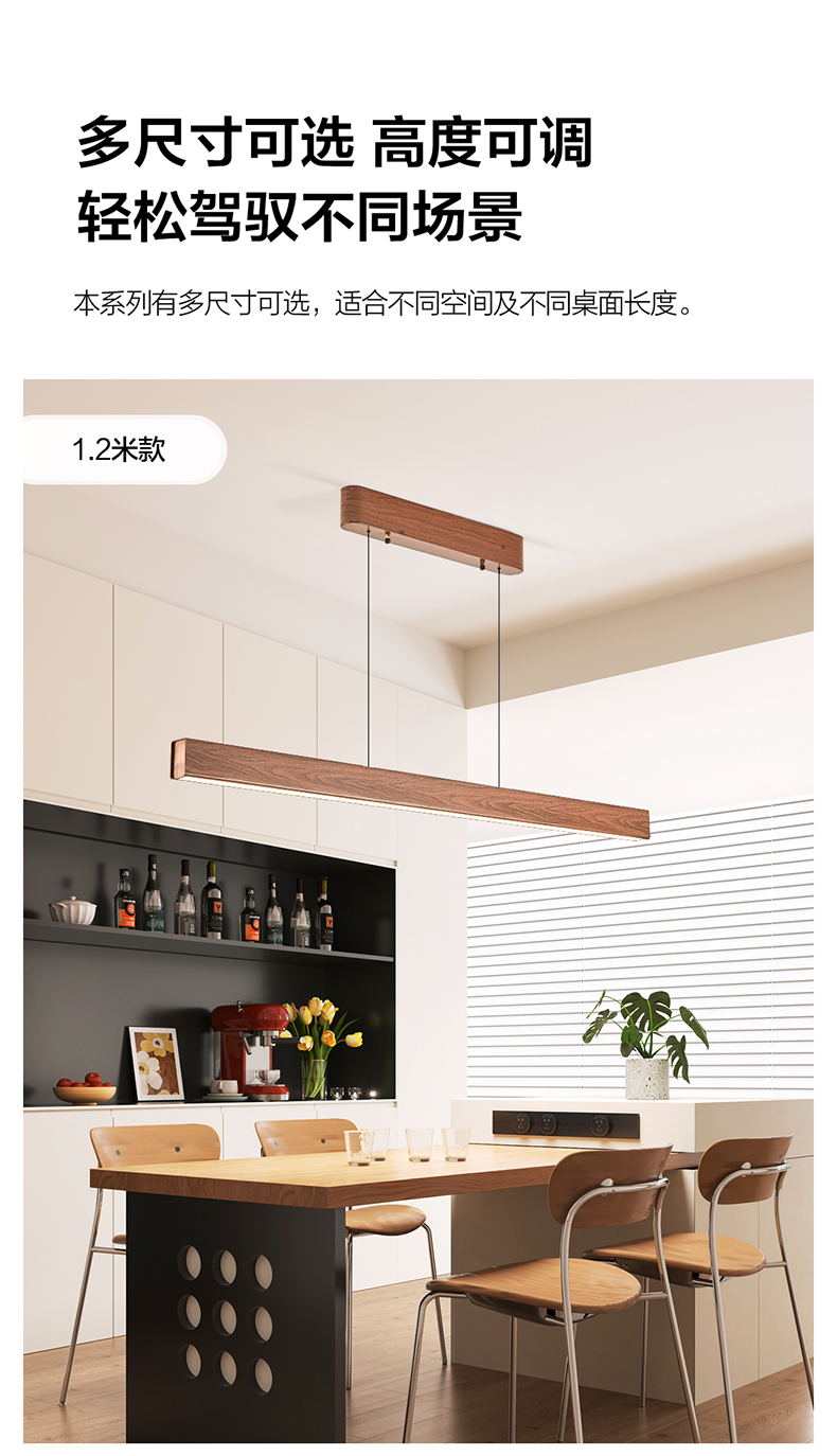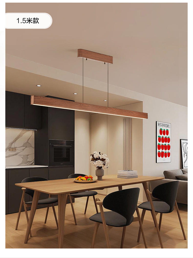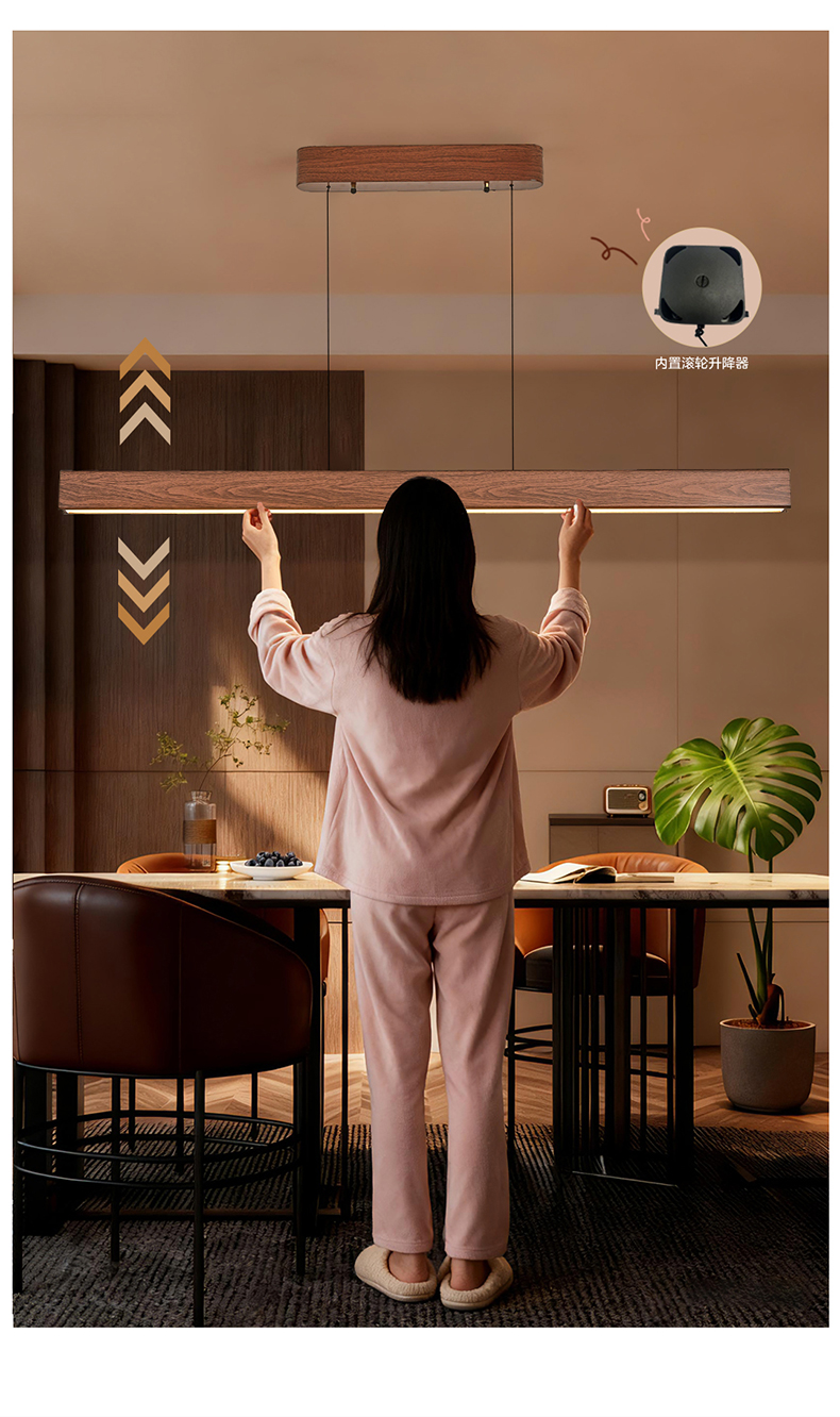新品双倍积分🔥OPPLE欧普照明26款餐吊灯First1胡桃木色一字长条原木风升降餐厅吊灯