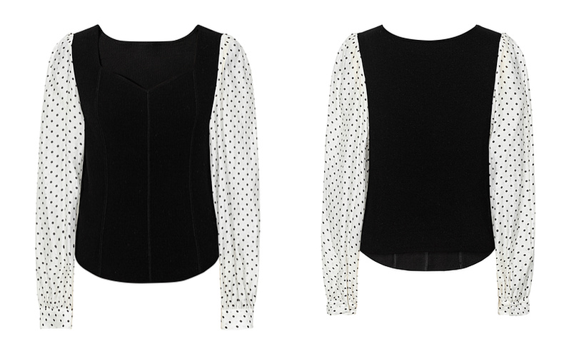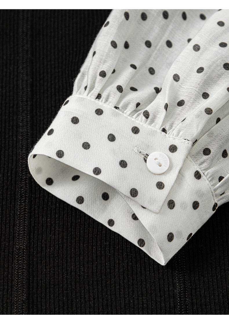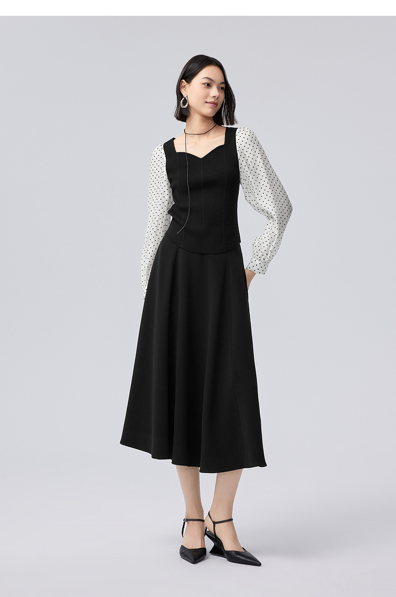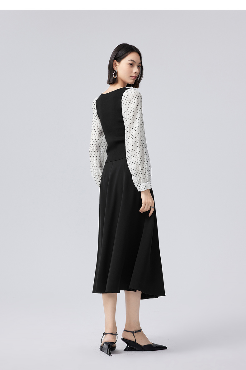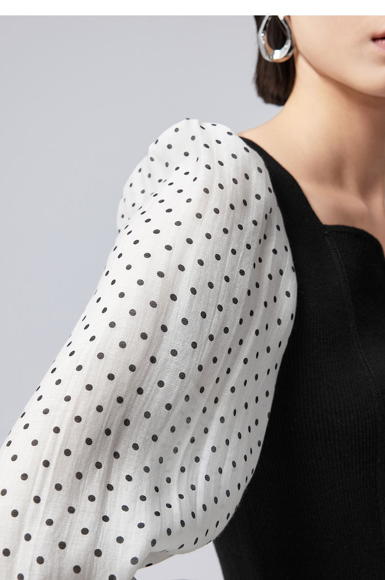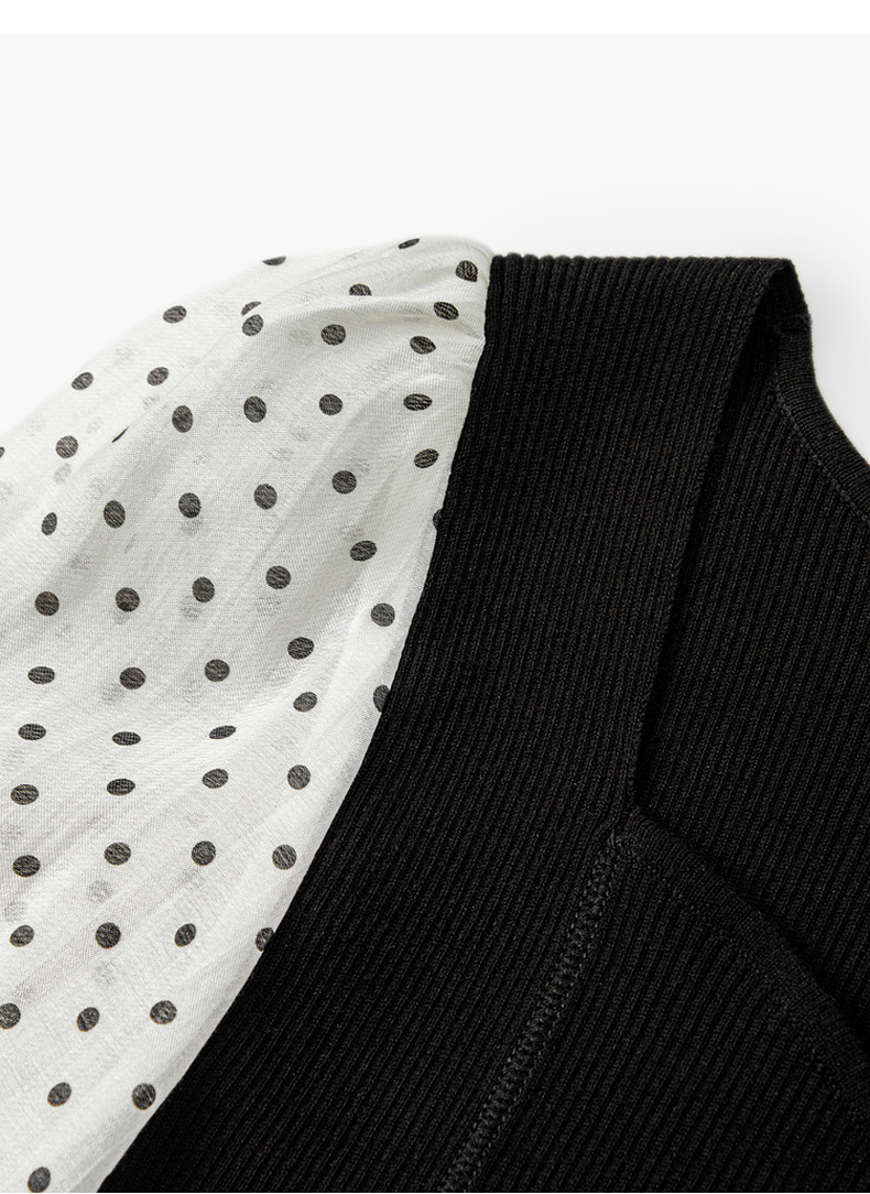 【严选】伊芙丽针梭拼波点法式复古坎线假两件针织衫2024秋装新款舒适上衣1F7933511