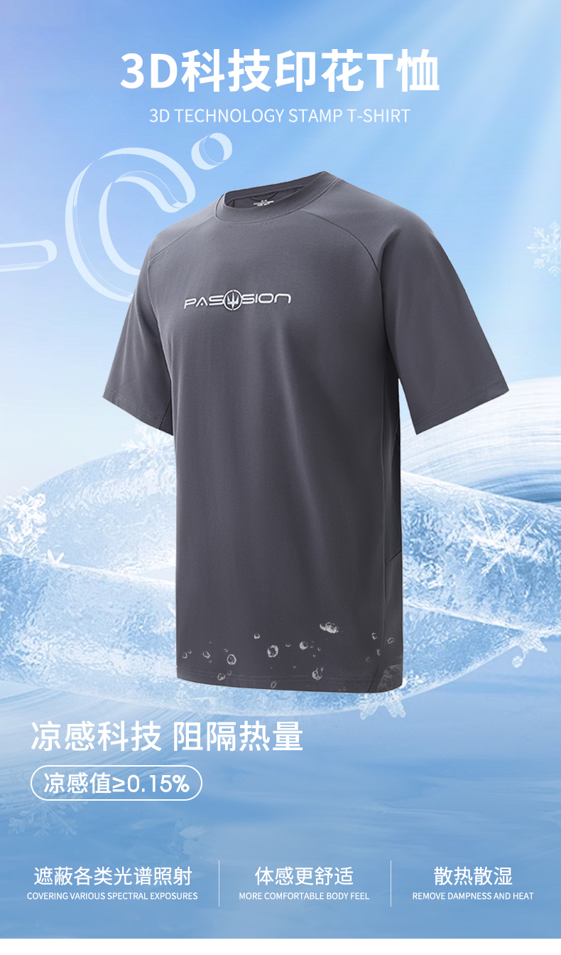 3D科技印花T恤圆领T恤短袖T恤男 吸湿速干凉感防虫抗菌 户外运动跑步登山徒步 CHF152101