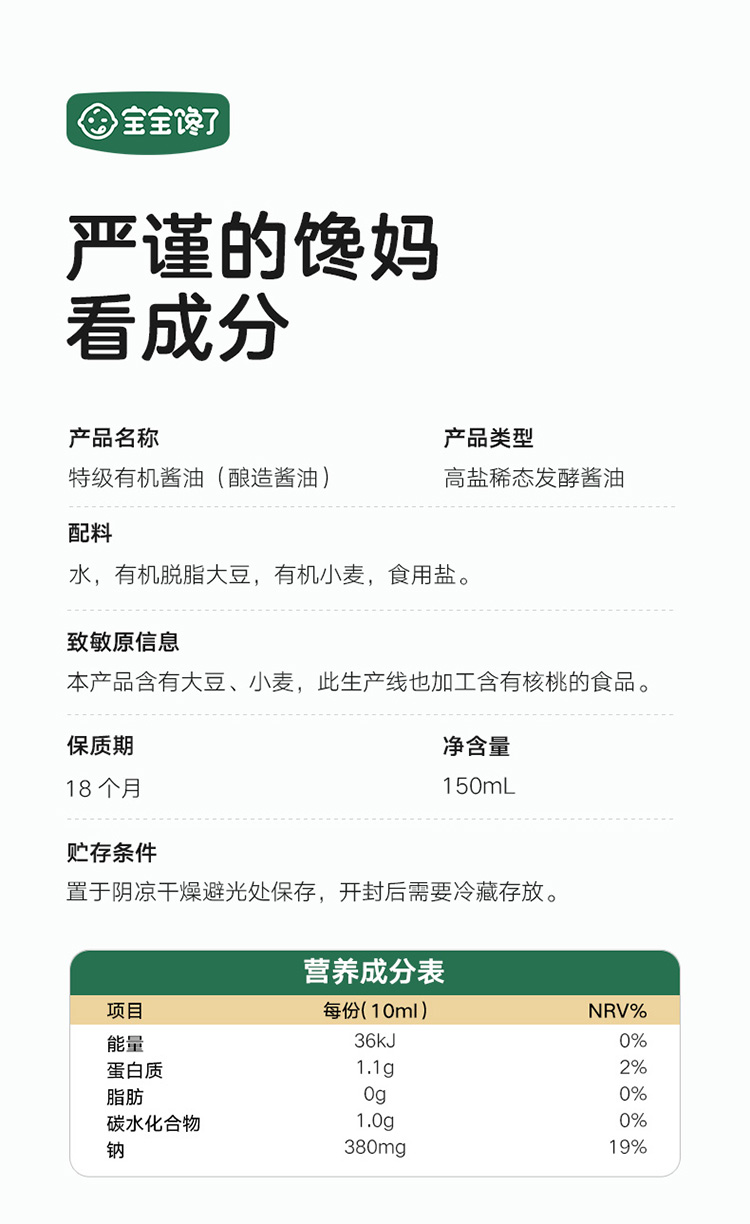 【宝宝馋了】特级有机酱油 国标特级酿造酱油 送12月+婴幼儿食谱