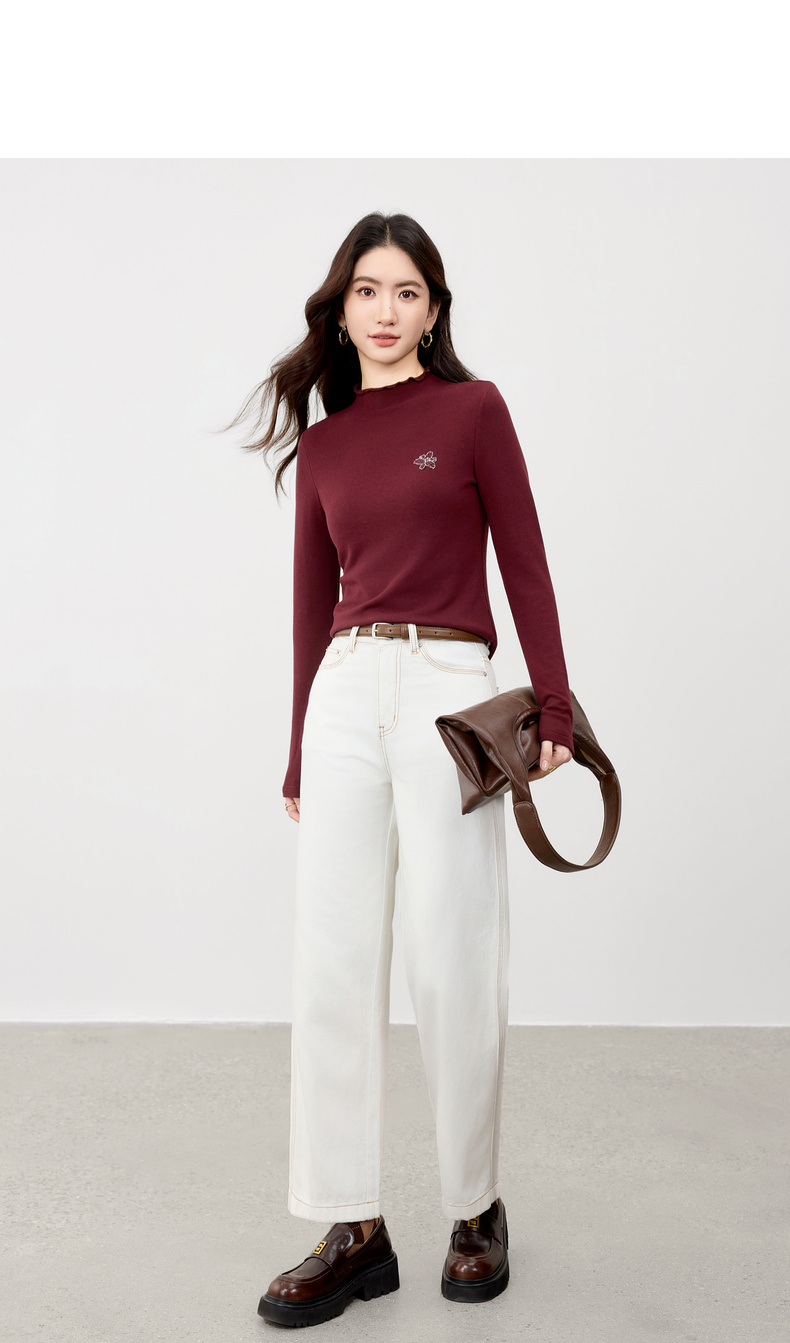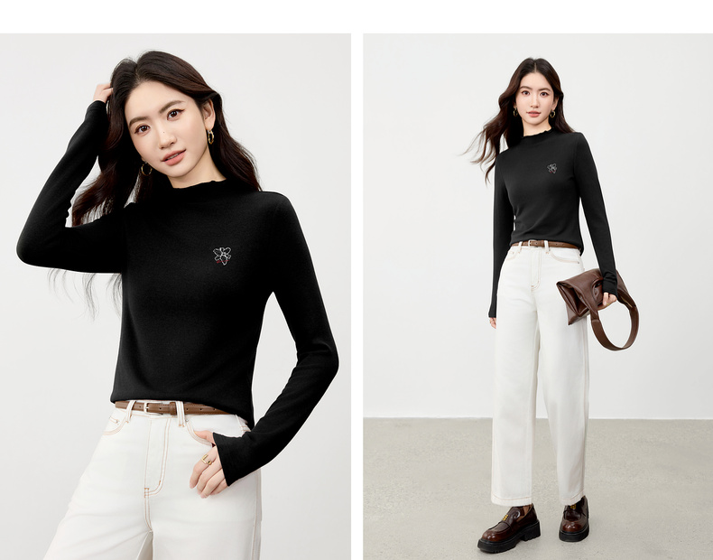 【内购】【多色可选】简约通勤半高领修身绒感针织保暖外穿/内搭打底衫-153SF2724
