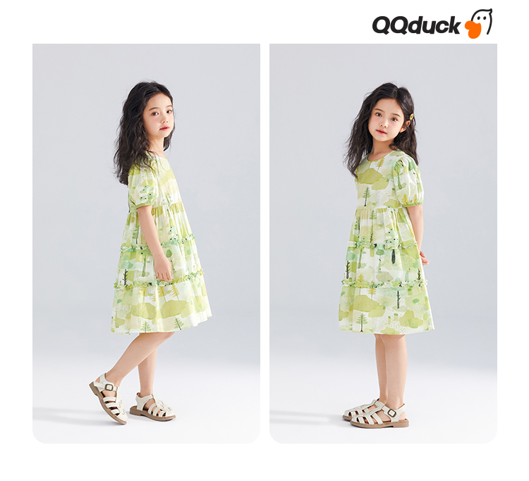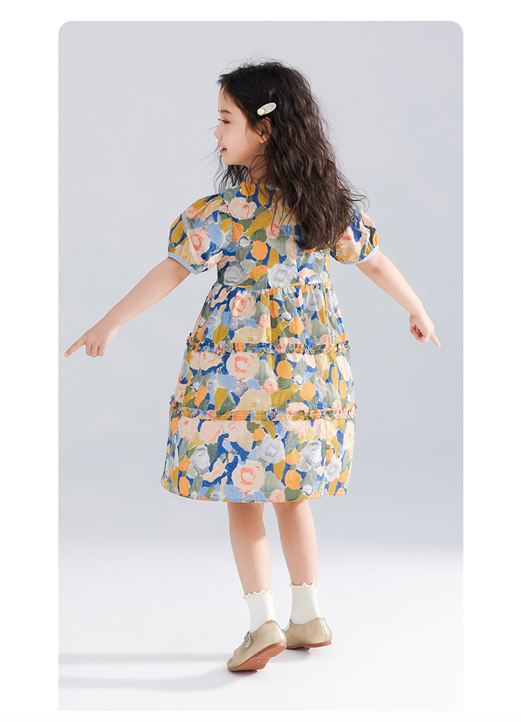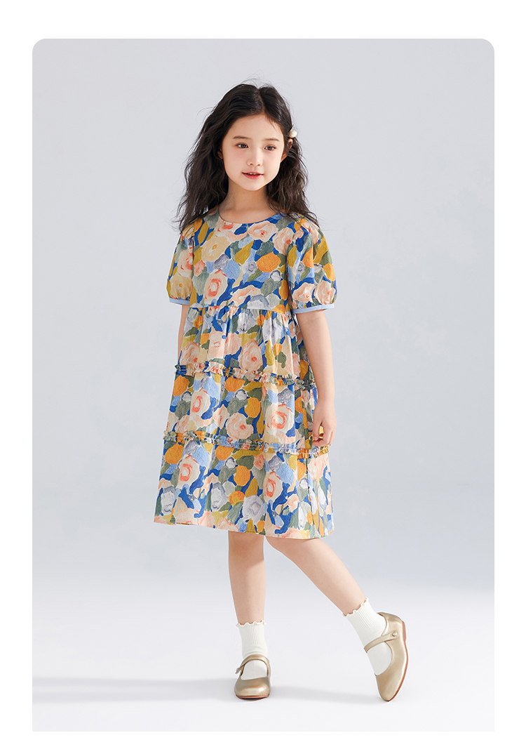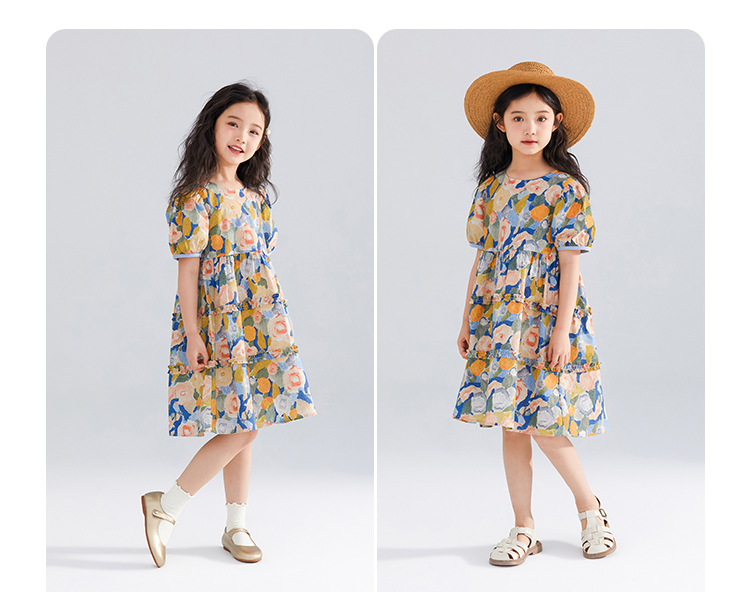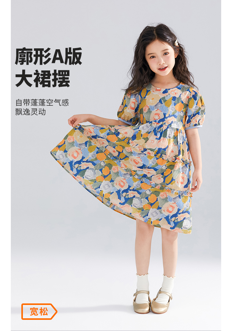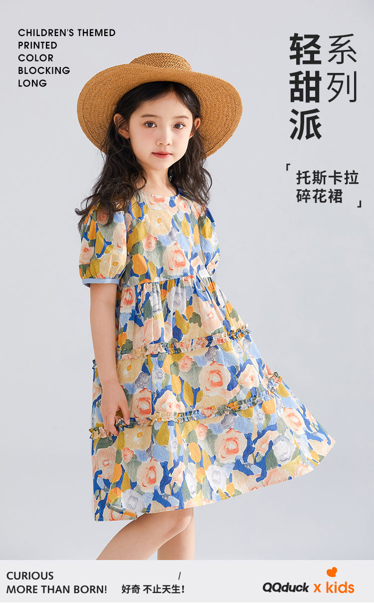 【120-165】【可可鸭】女童短袖连衣裙夏季碎花田园裙子